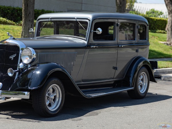 West Coast Classics are proud to present this very striking example of this stylishly customized hot rod 1933 Dodge Series DP Custom LWB sedan with a Chevy 350 V8 small block engine rebored .030 over matched to a Turbo 350 automatic transmission and 9" rear end. This is an all steel, original frame, long wheelbase (71"W x 184"L) 4 door sedan which is has been very tastefully customized with no expense spared with only some 3,000 miles on the build. It sits low with the air dumped and has a super gangster look with suicide doors.