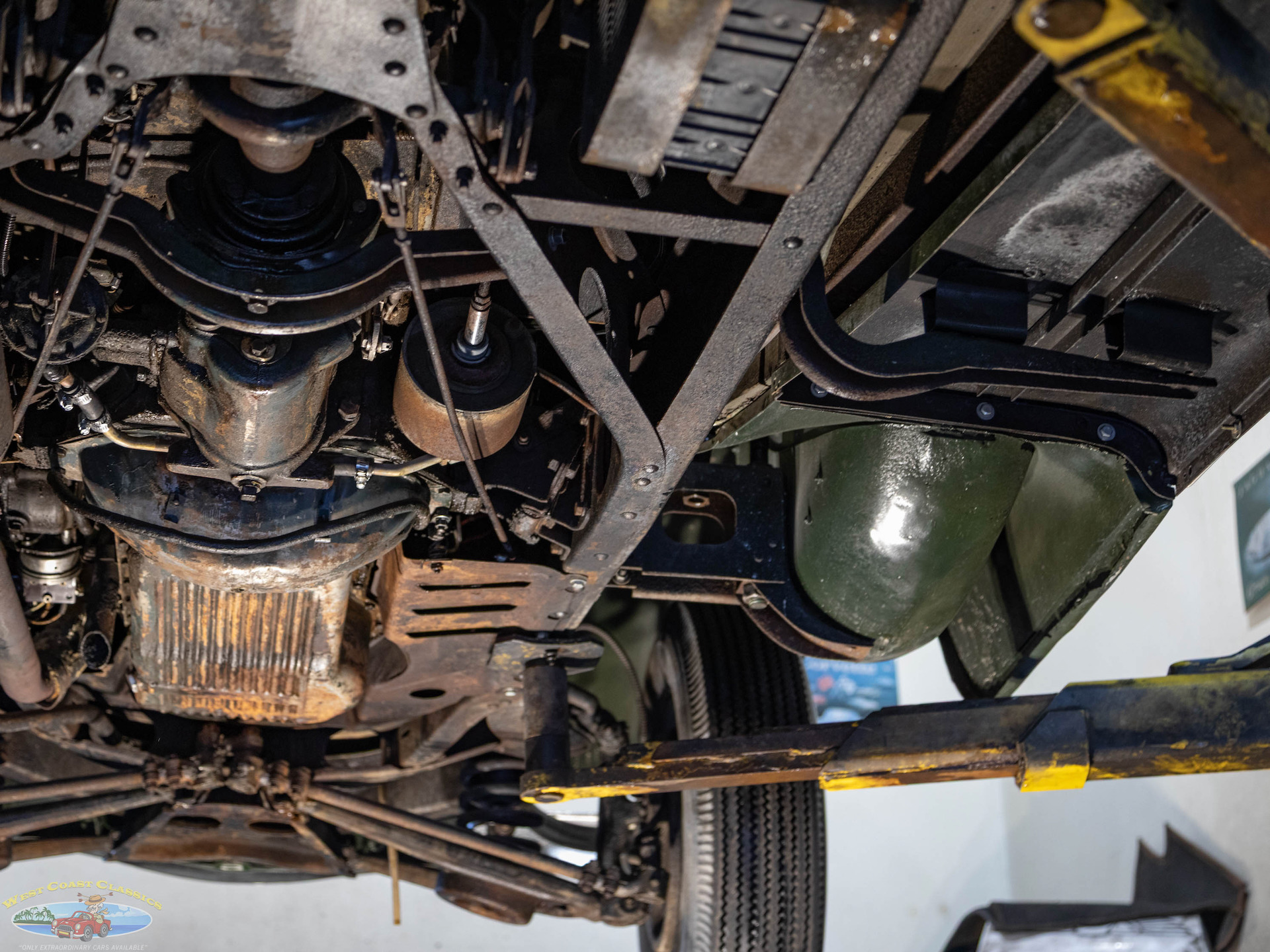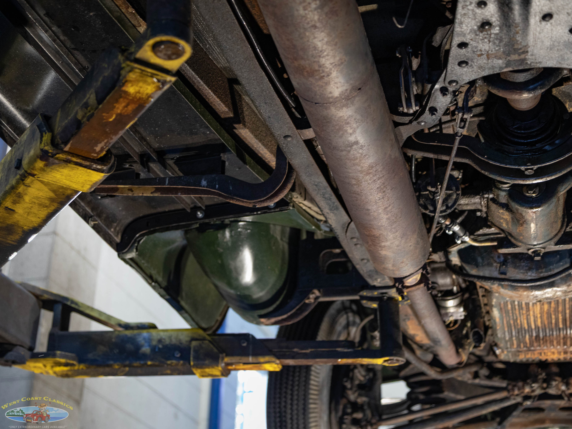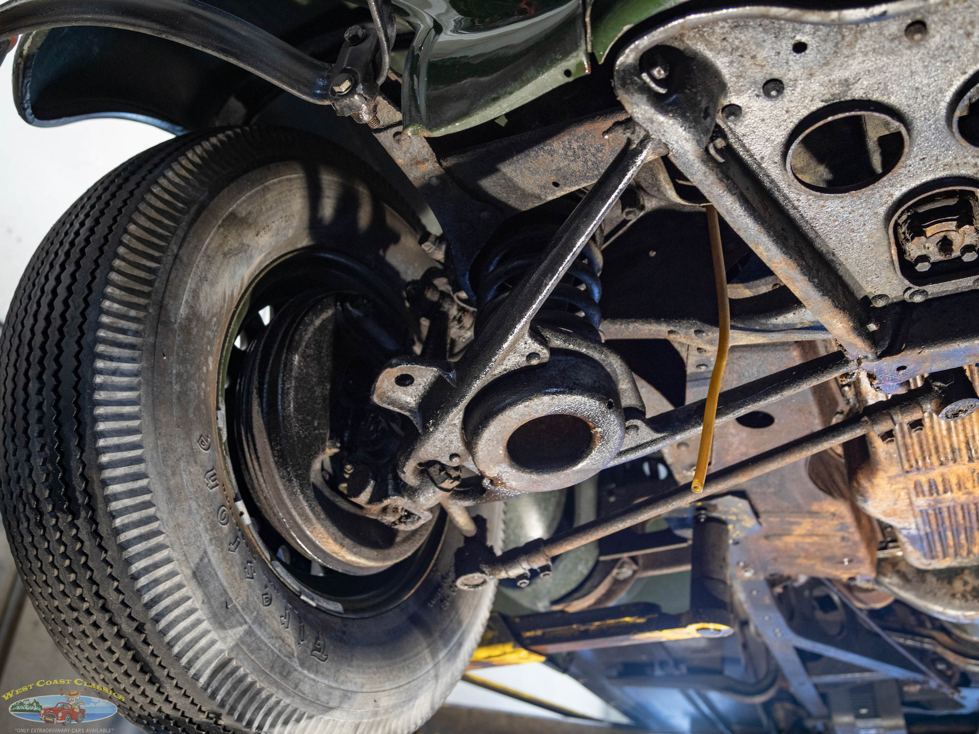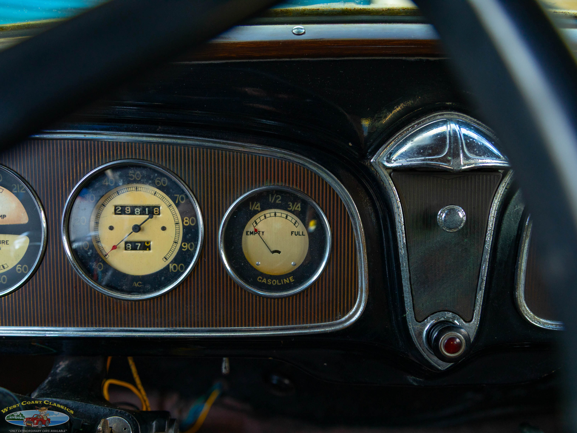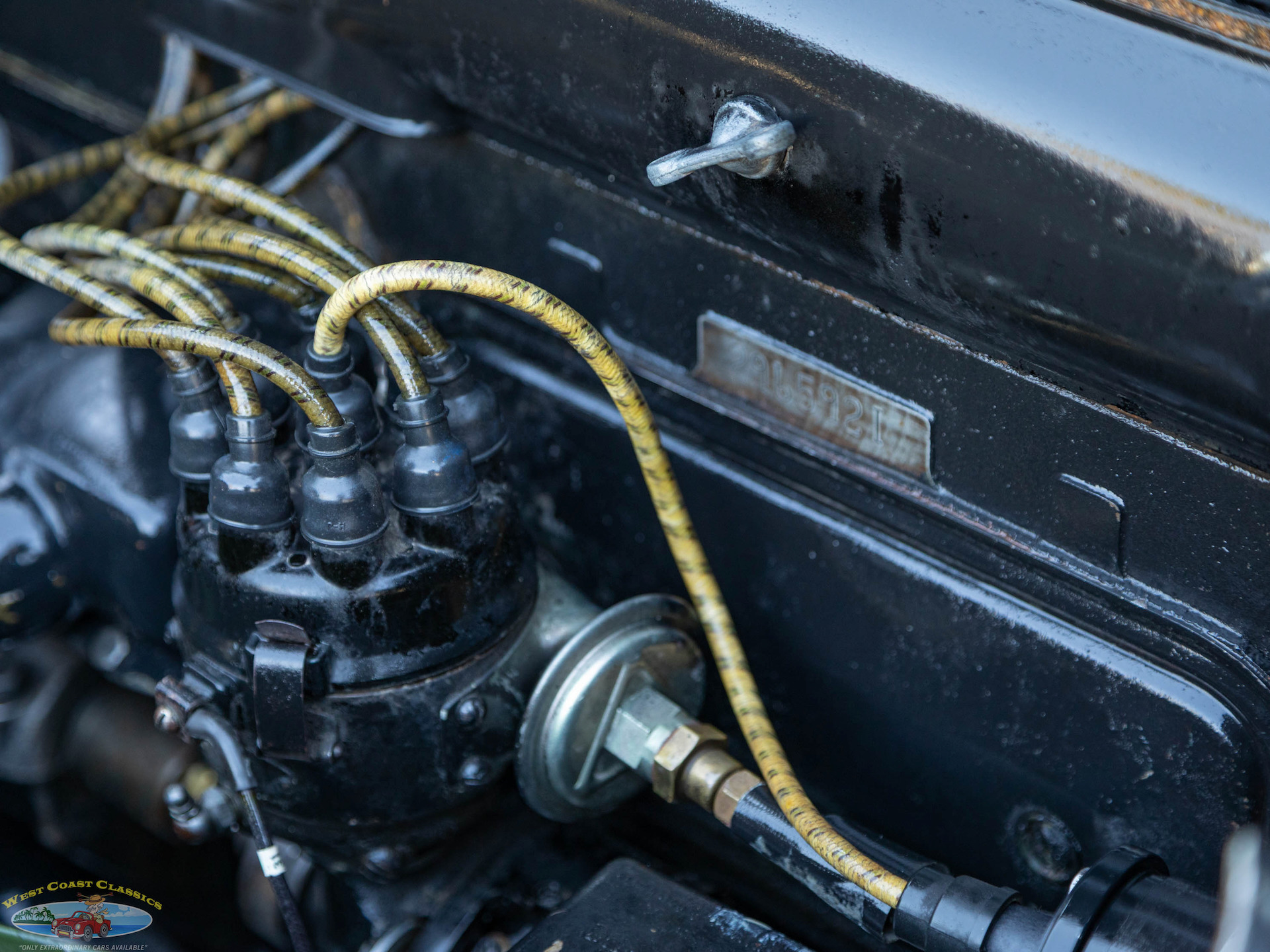 The 235 cubic-inch inline-8 had overhead valves, a cast-iron block, five main bearings, mechanical valve lifters, a Marver carburetor, and delivered 88 horsepower. It was backed by a three-speed sliding gear, synchromesh transmission, and stopping power was by mechanical brakes on four wheels.