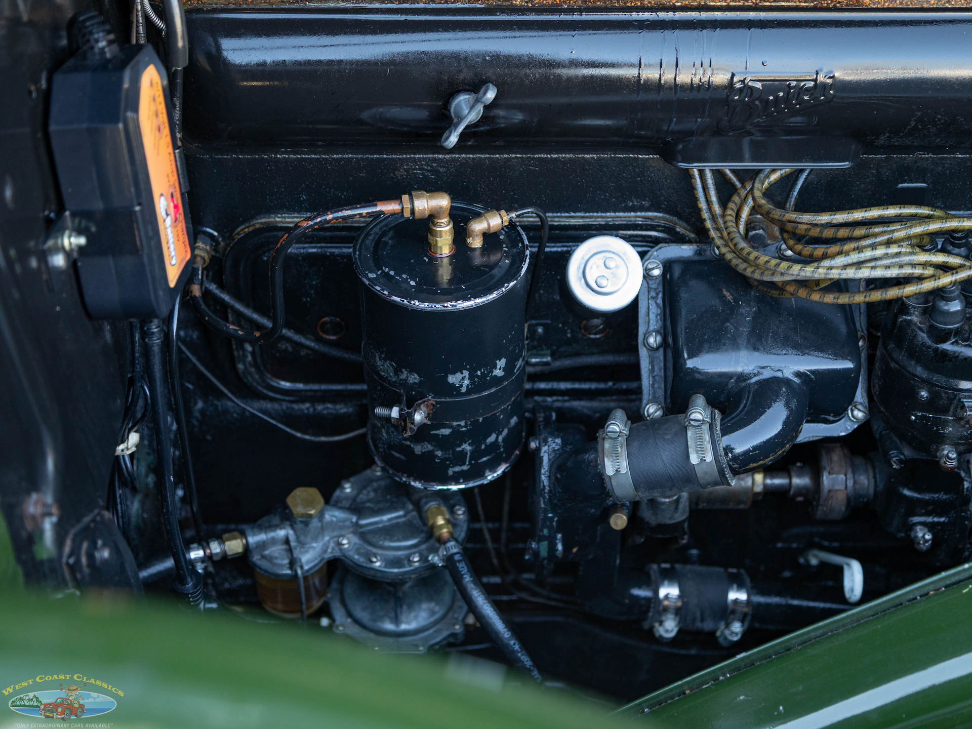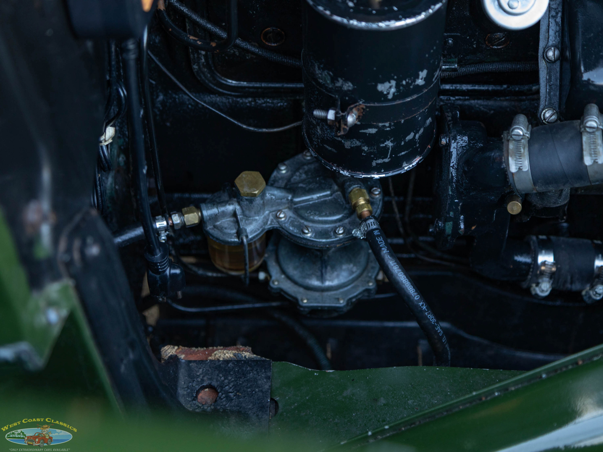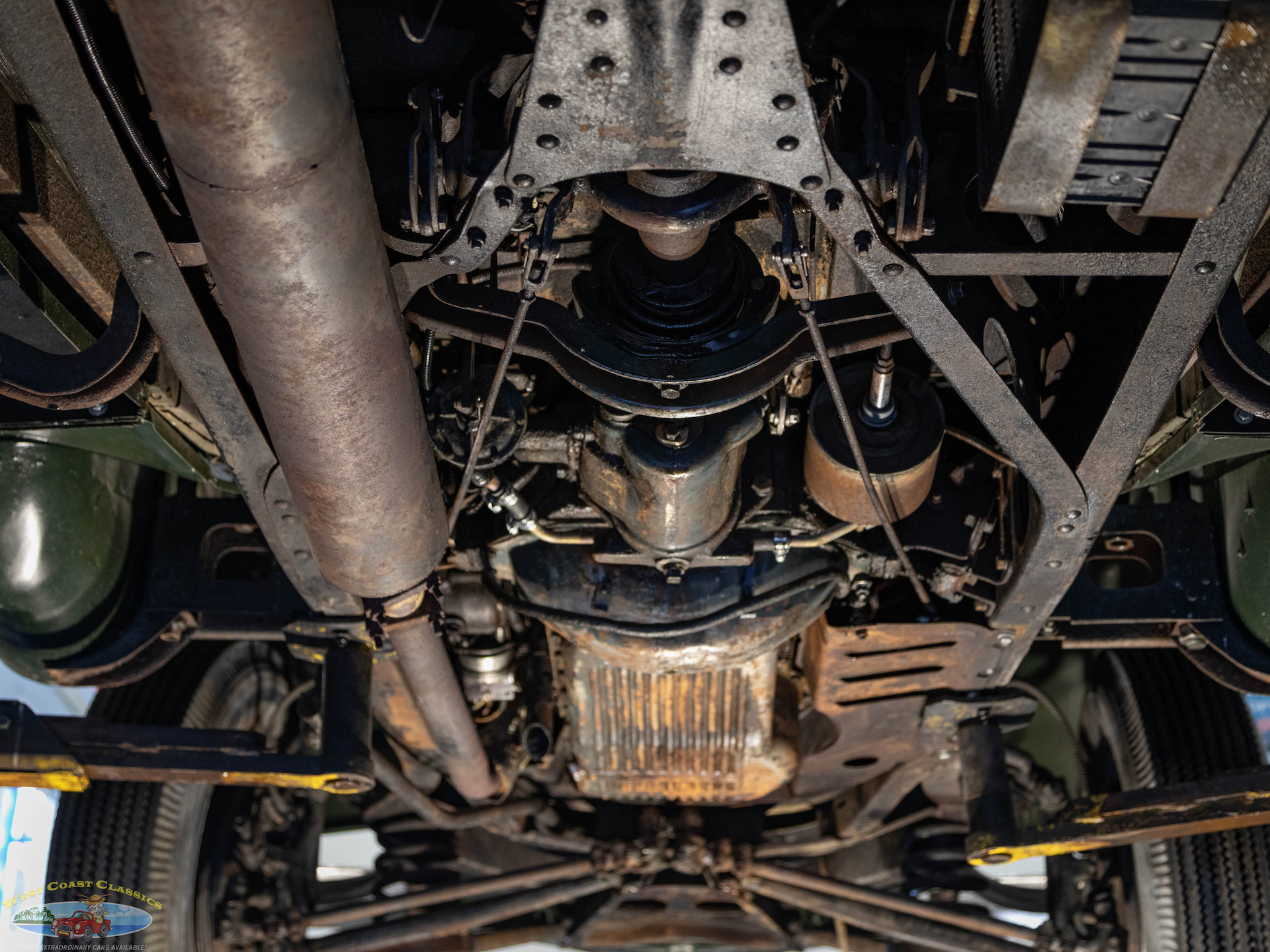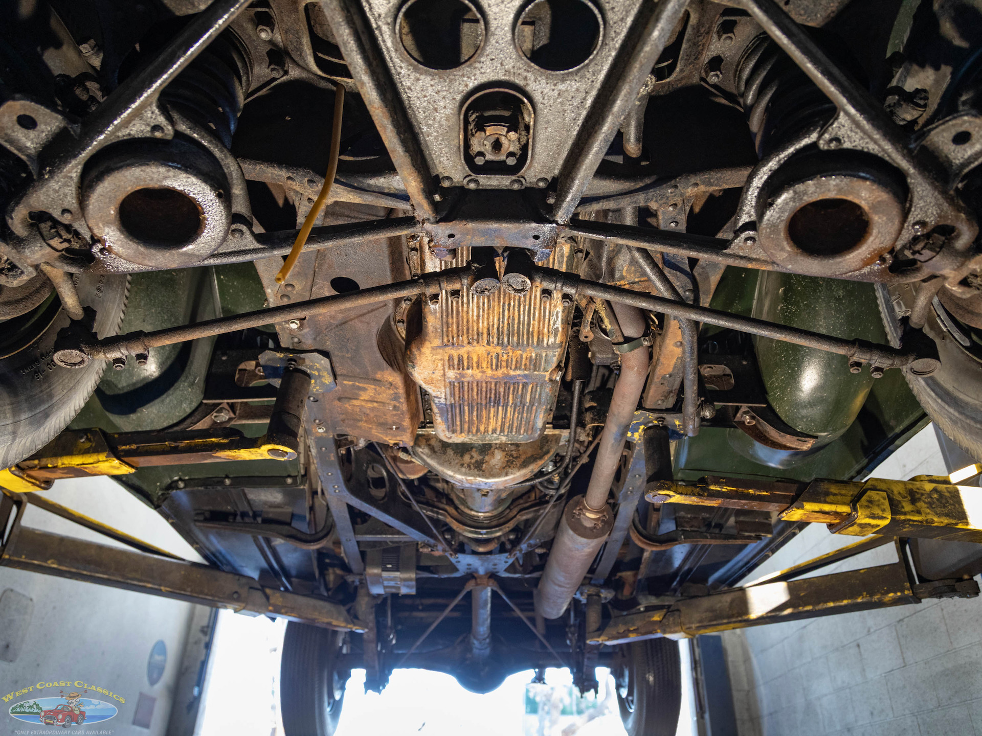 The 235 cubic-inch inline-8 had overhead valves, a cast-iron block, five main bearings, mechanical valve lifters, a Marver carburetor, and delivered 88 horsepower. It was backed by a three-speed sliding gear, synchromesh transmission, and stopping power was by mechanical brakes on four wheels.