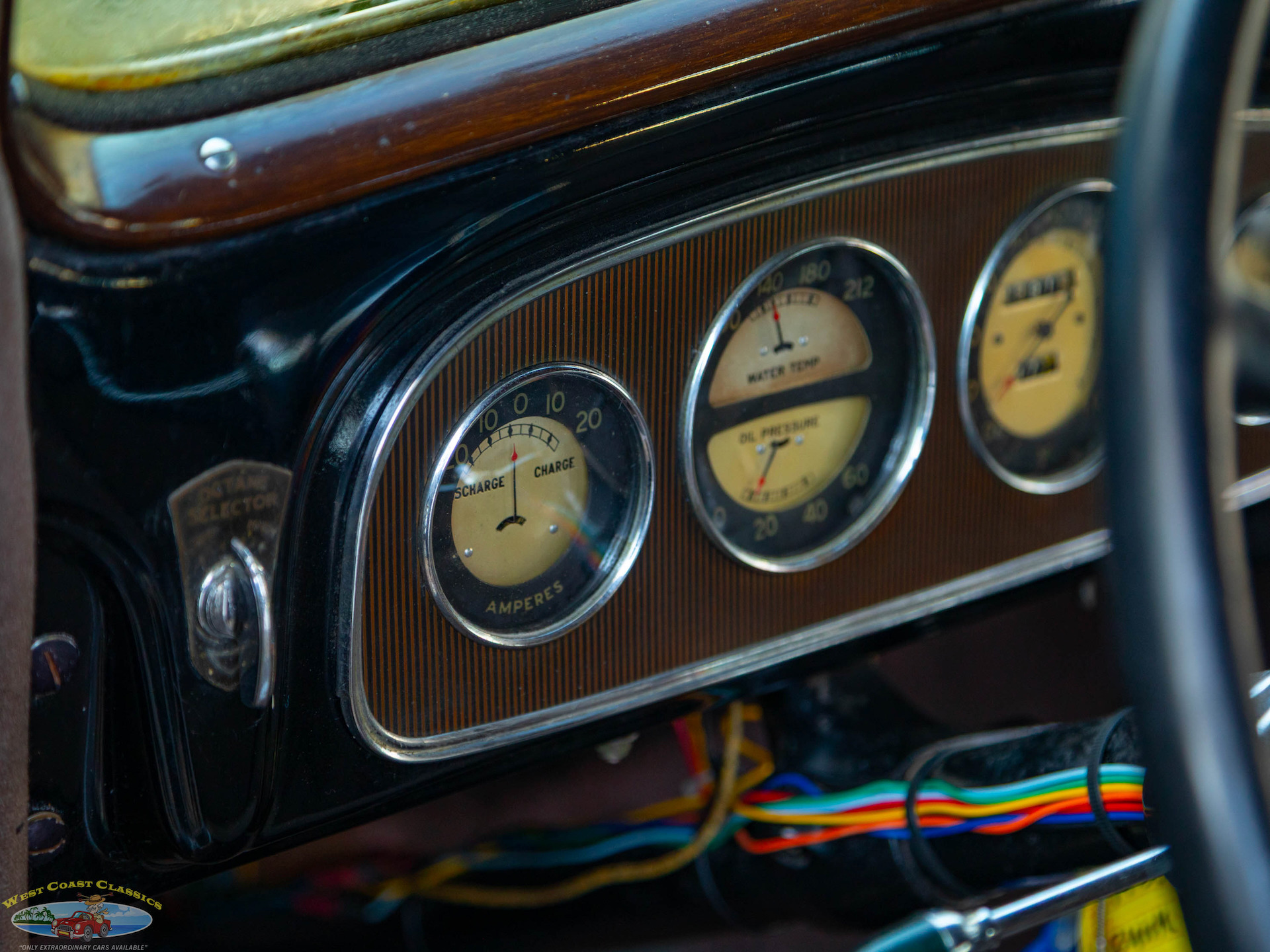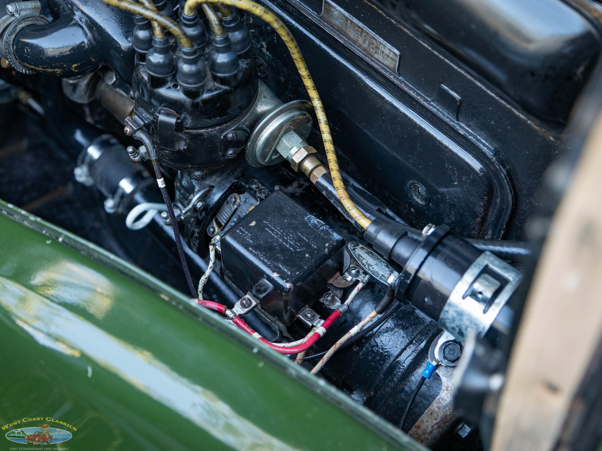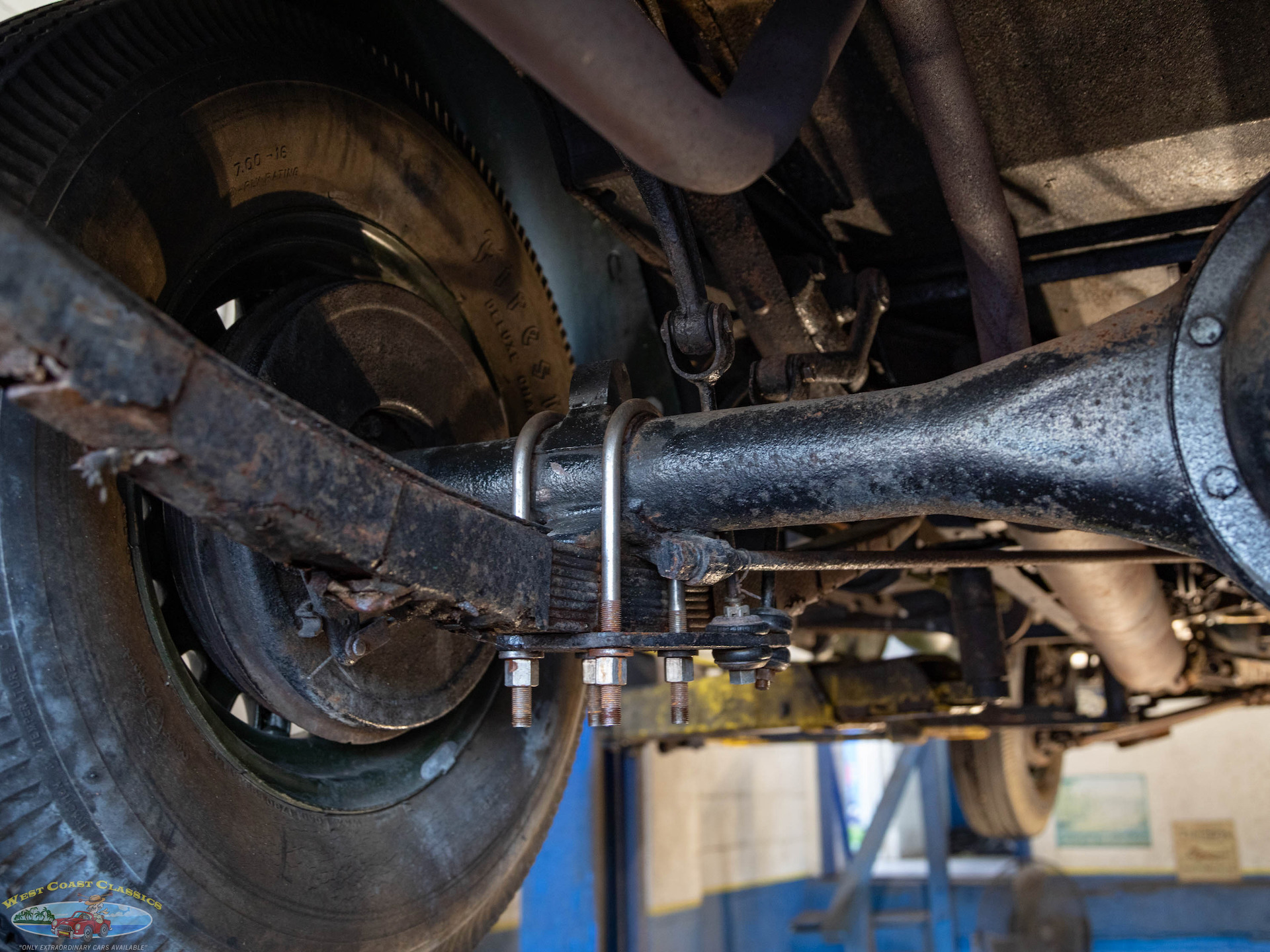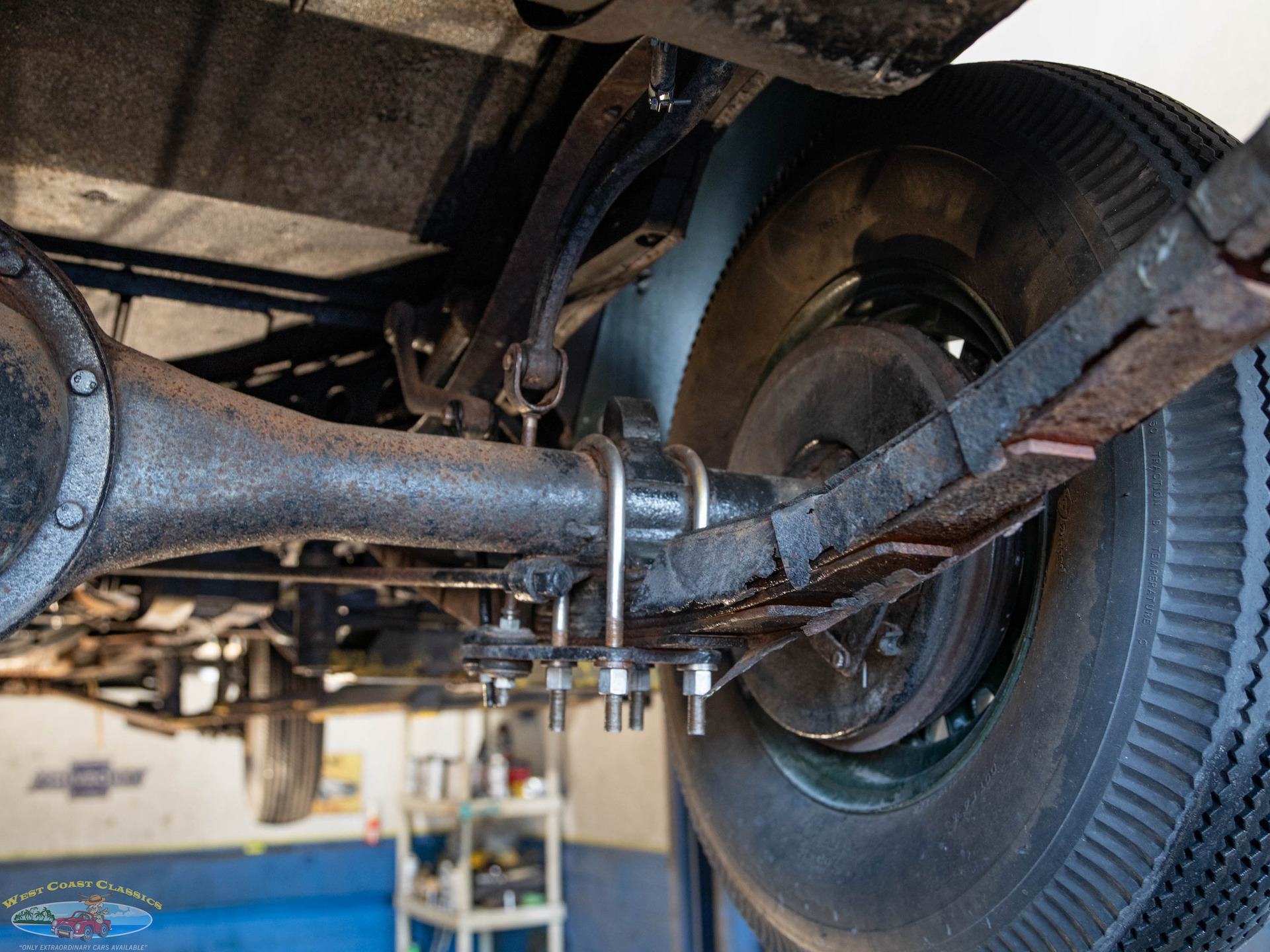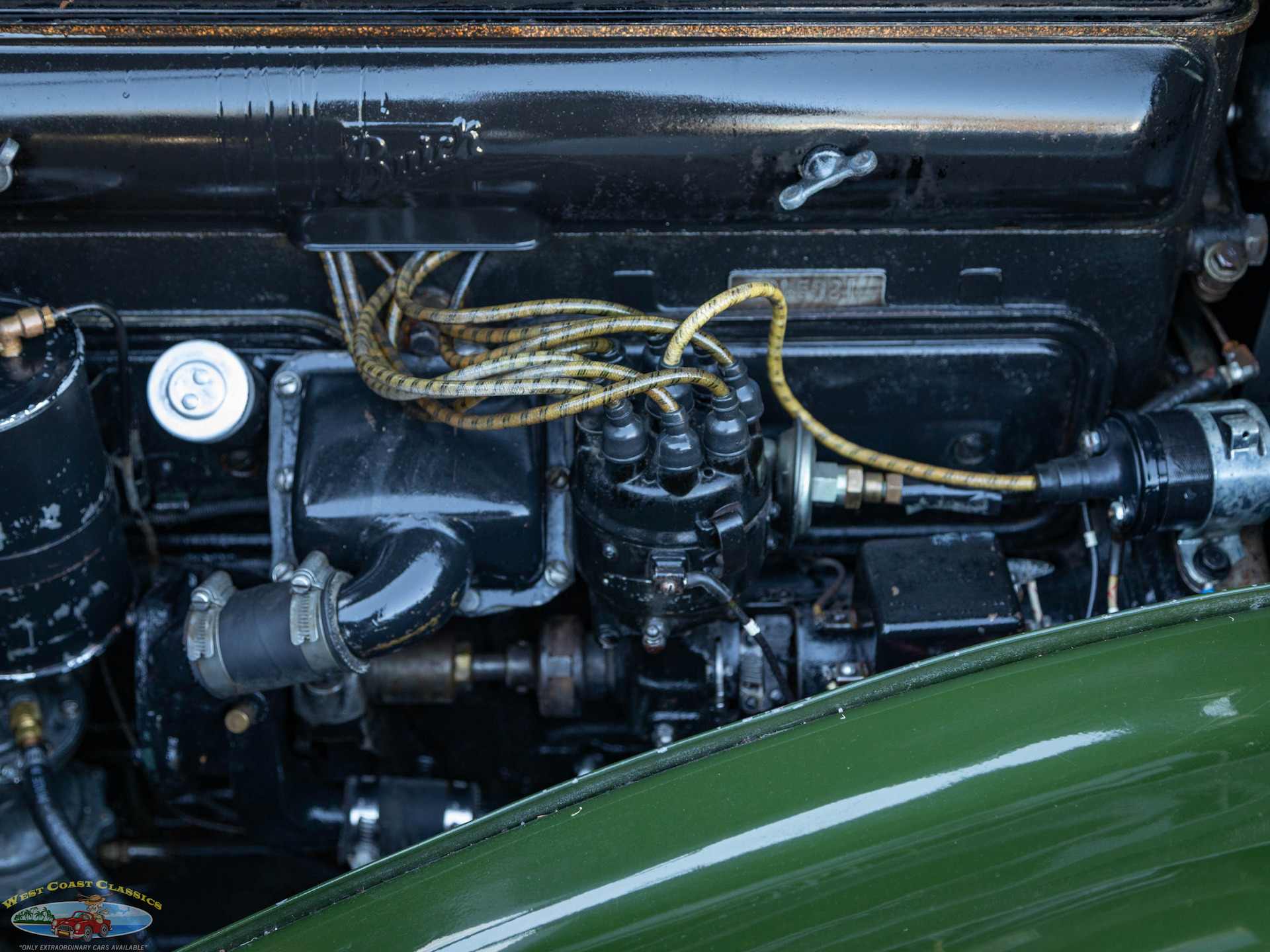The 235 cubic-inch inline-8 had overhead valves, a cast-iron block, five main bearings, mechanical valve lifters, a Marver carburetor, and delivered 88 horsepower. It was backed by a three-speed sliding gear, synchromesh transmission, and stopping power was by mechanical brakes on four wheels.