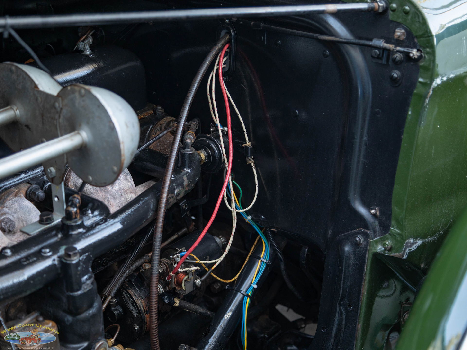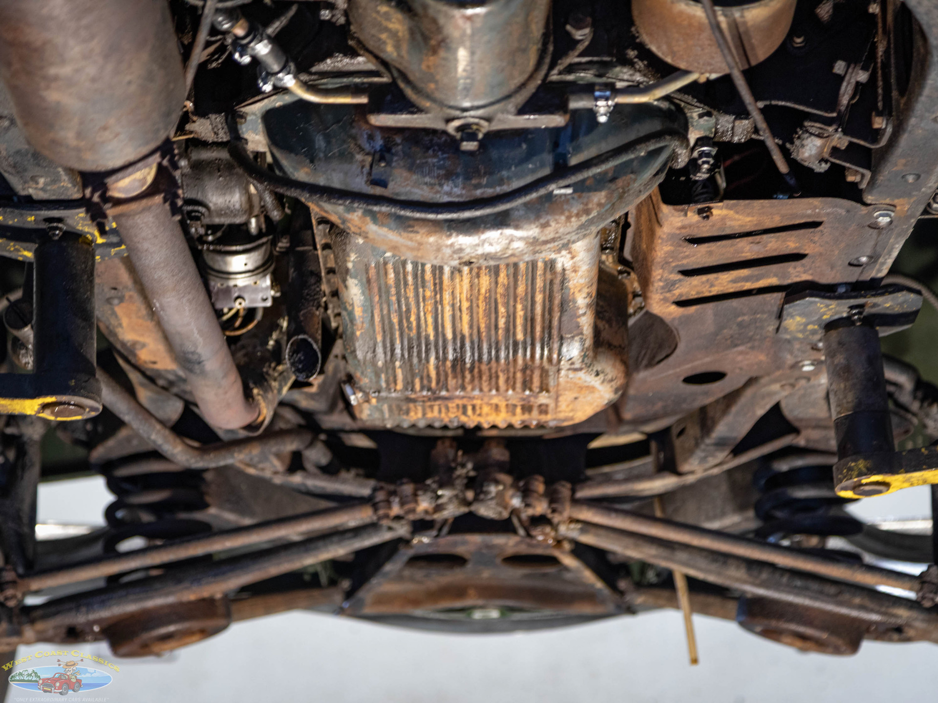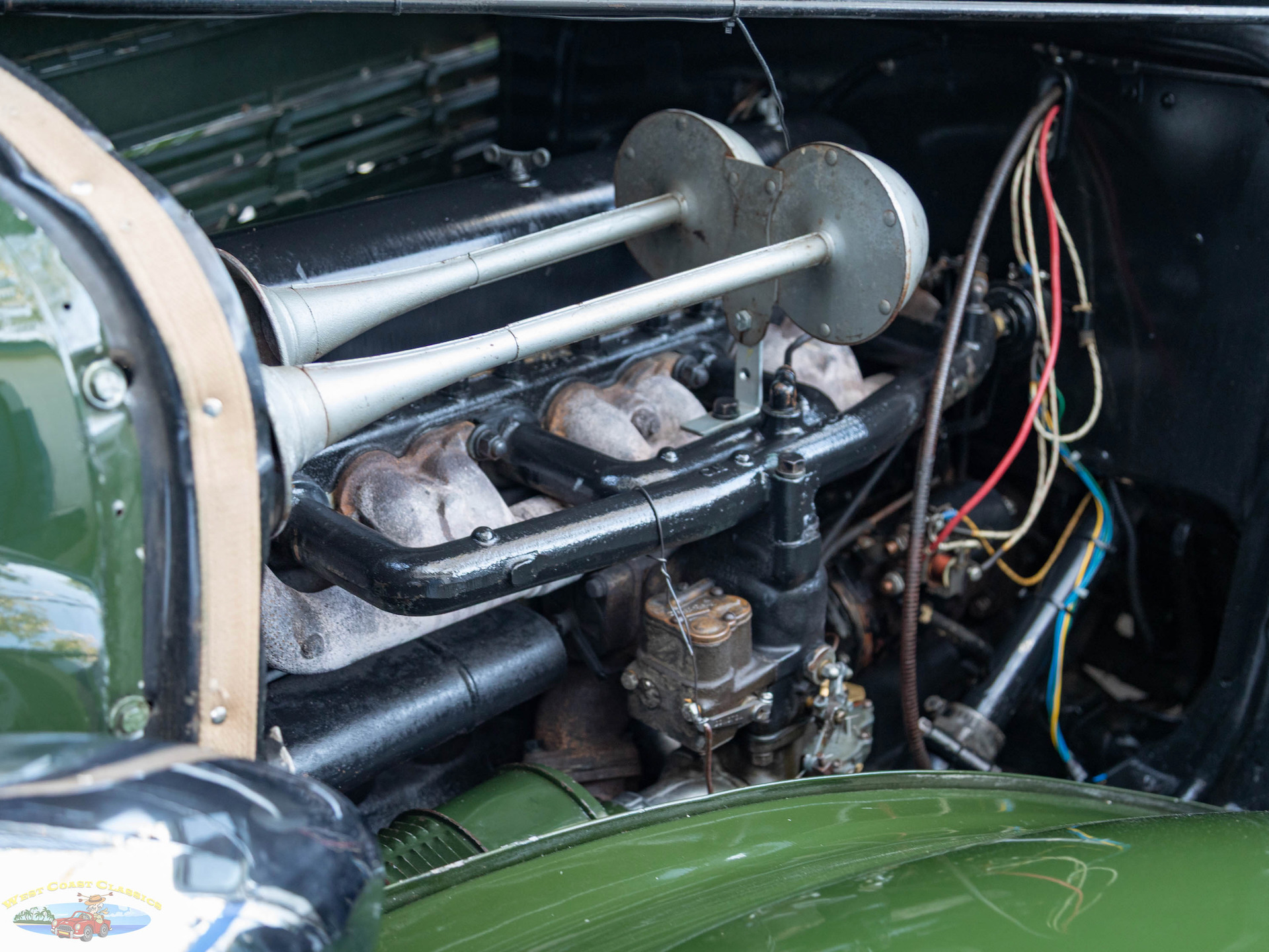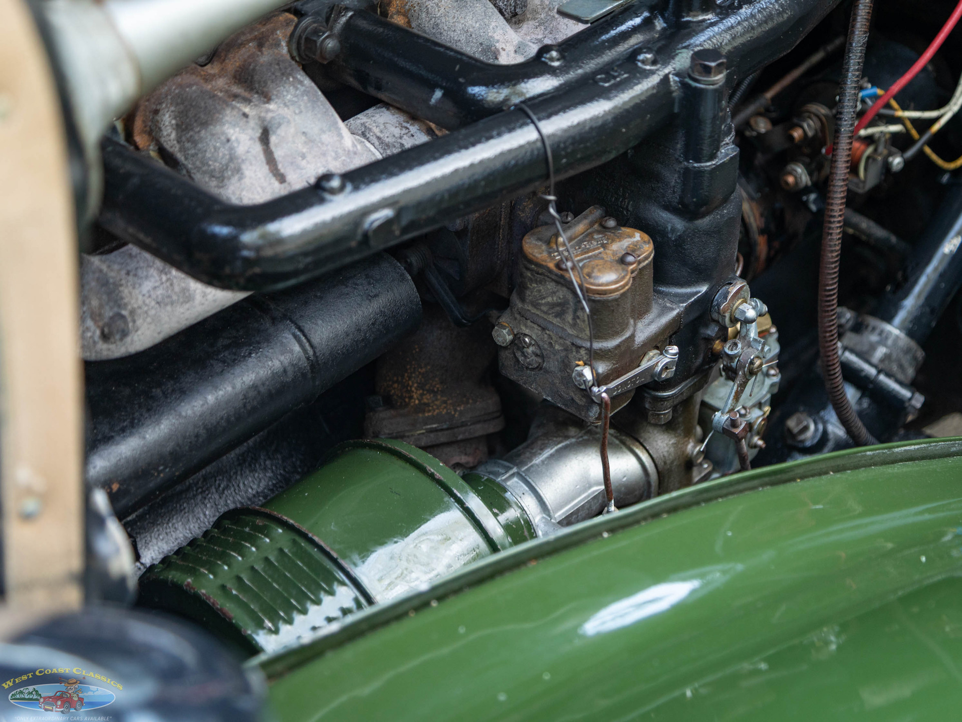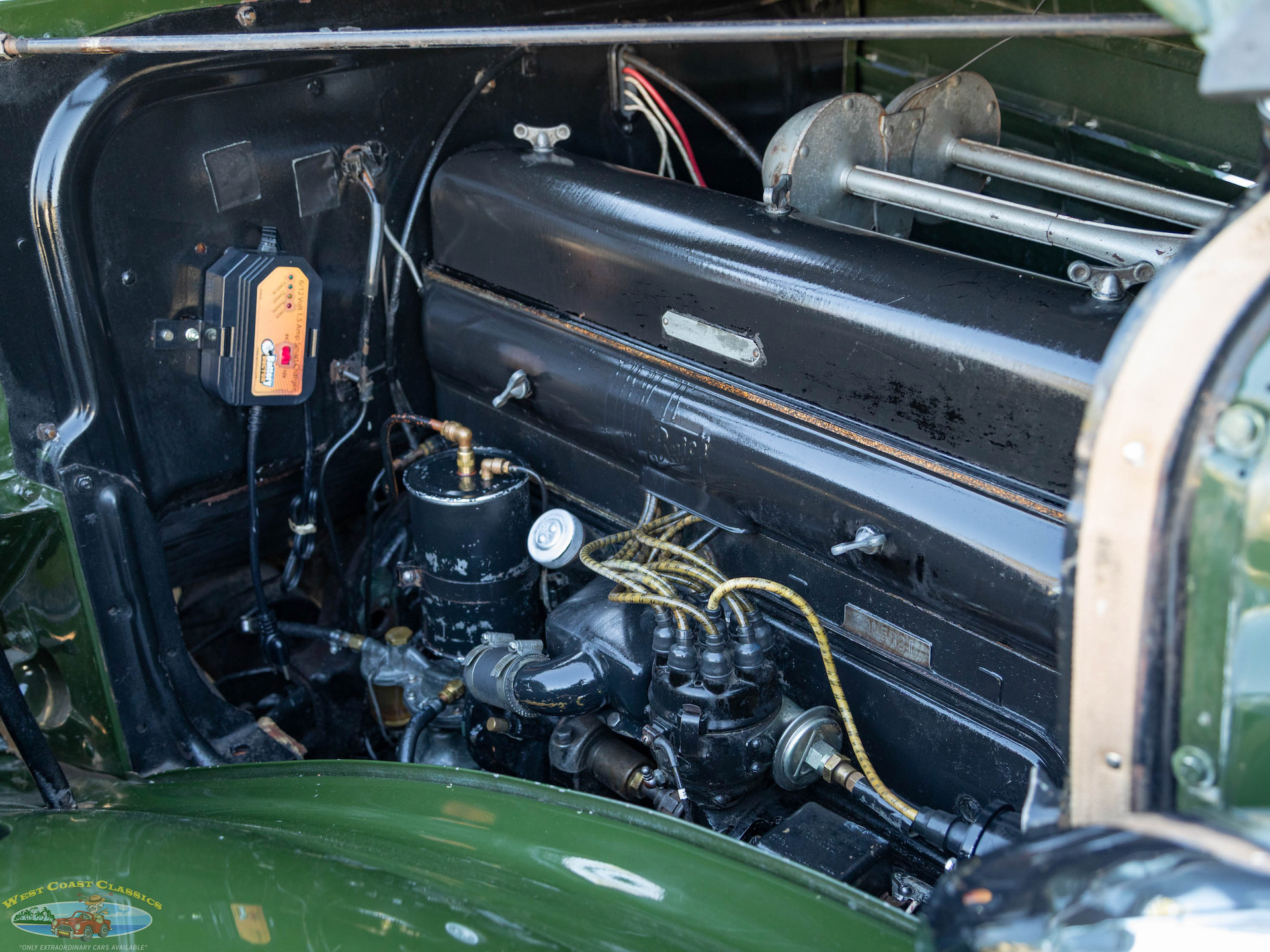 The 235 cubic-inch inline-8 had overhead valves, a cast-iron block, five main bearings, mechanical valve lifters, a Marver carburetor, and delivered 88 horsepower. It was backed by a three-speed sliding gear, synchromesh transmission, and stopping power was by mechanical brakes on four wheels.