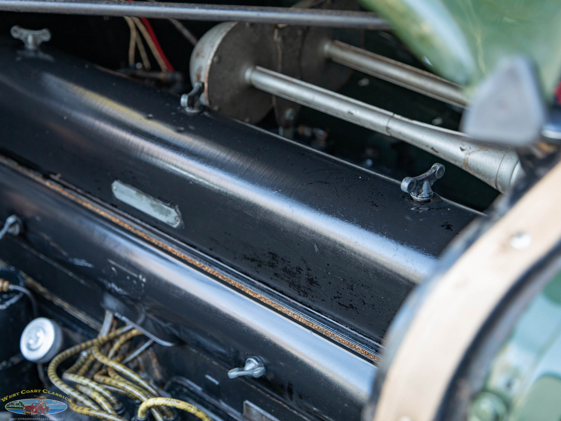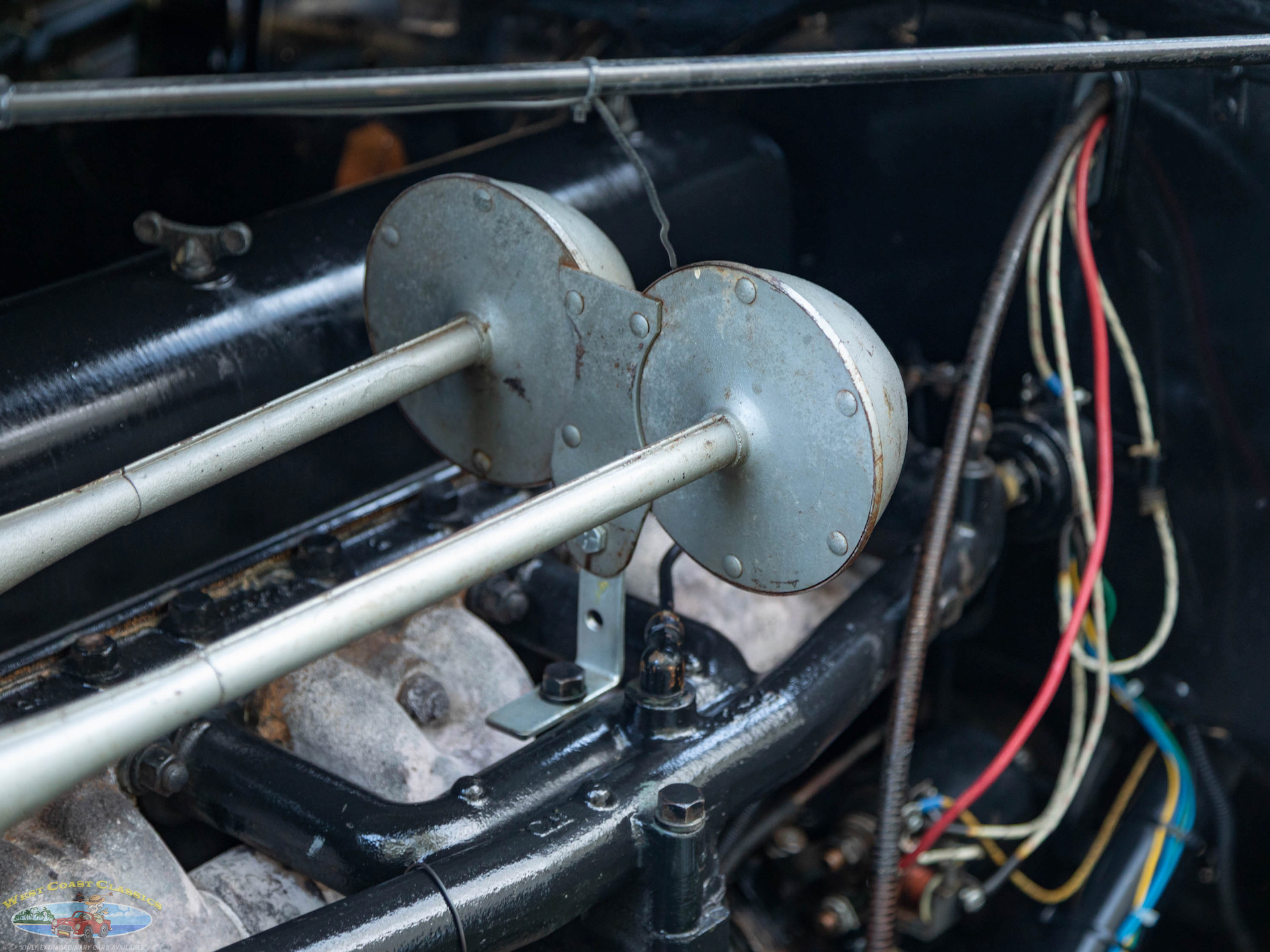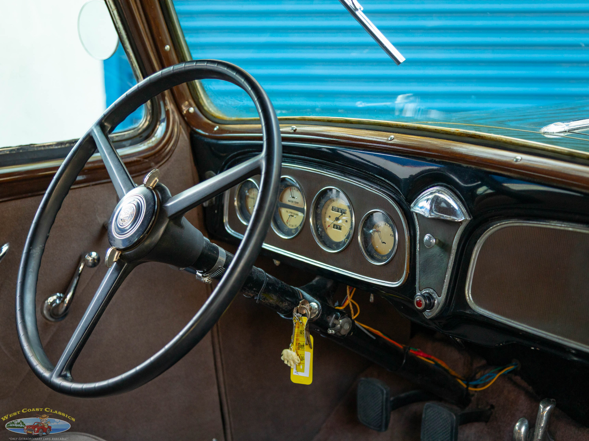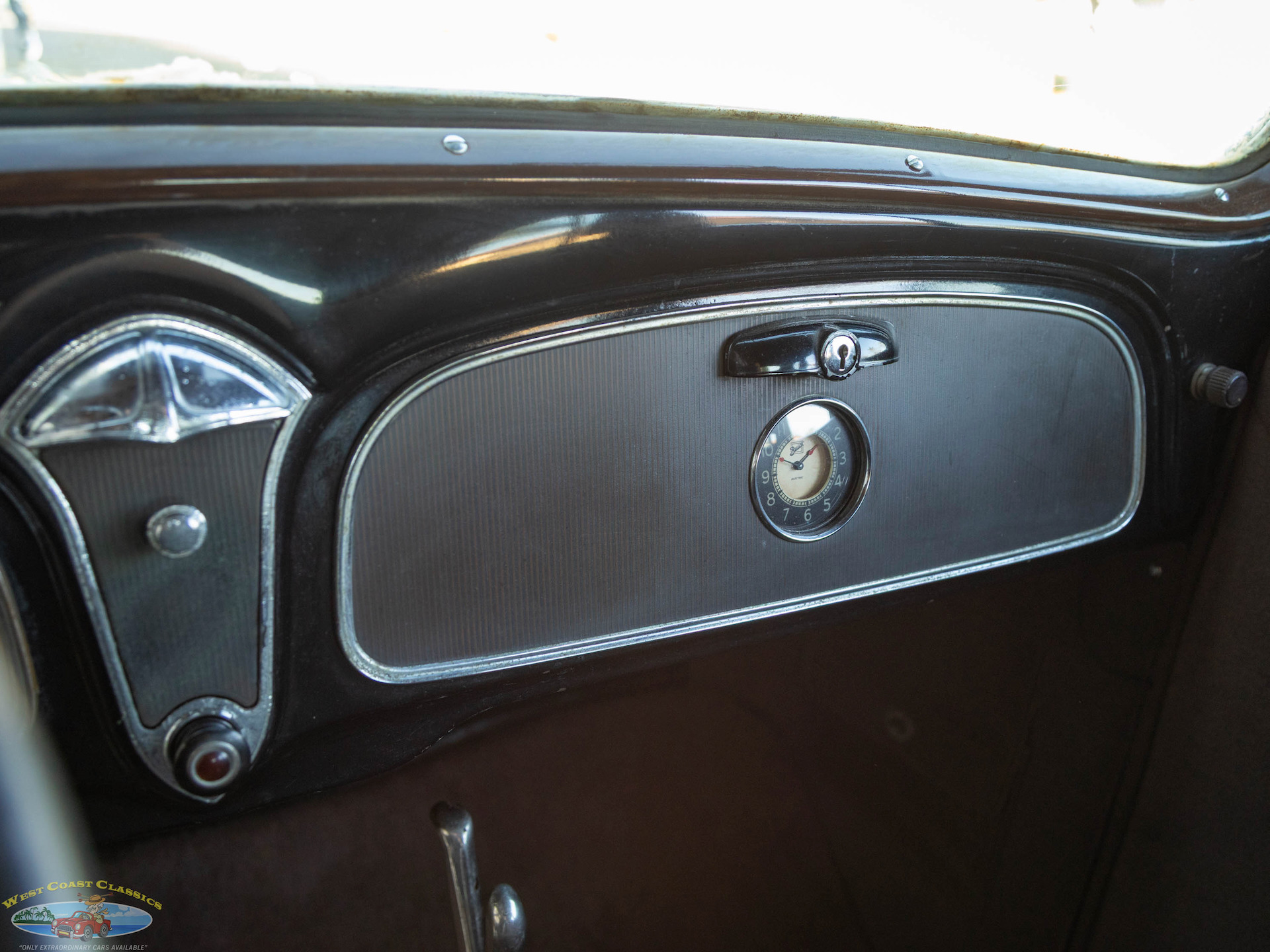 The 235 cubic-inch inline-8 had overhead valves, a cast-iron block, five main bearings, mechanical valve lifters, a Marver carburetor, and delivered 88 horsepower. It was backed by a three-speed sliding gear, synchromesh transmission, and stopping power was by mechanical brakes on four wheels.