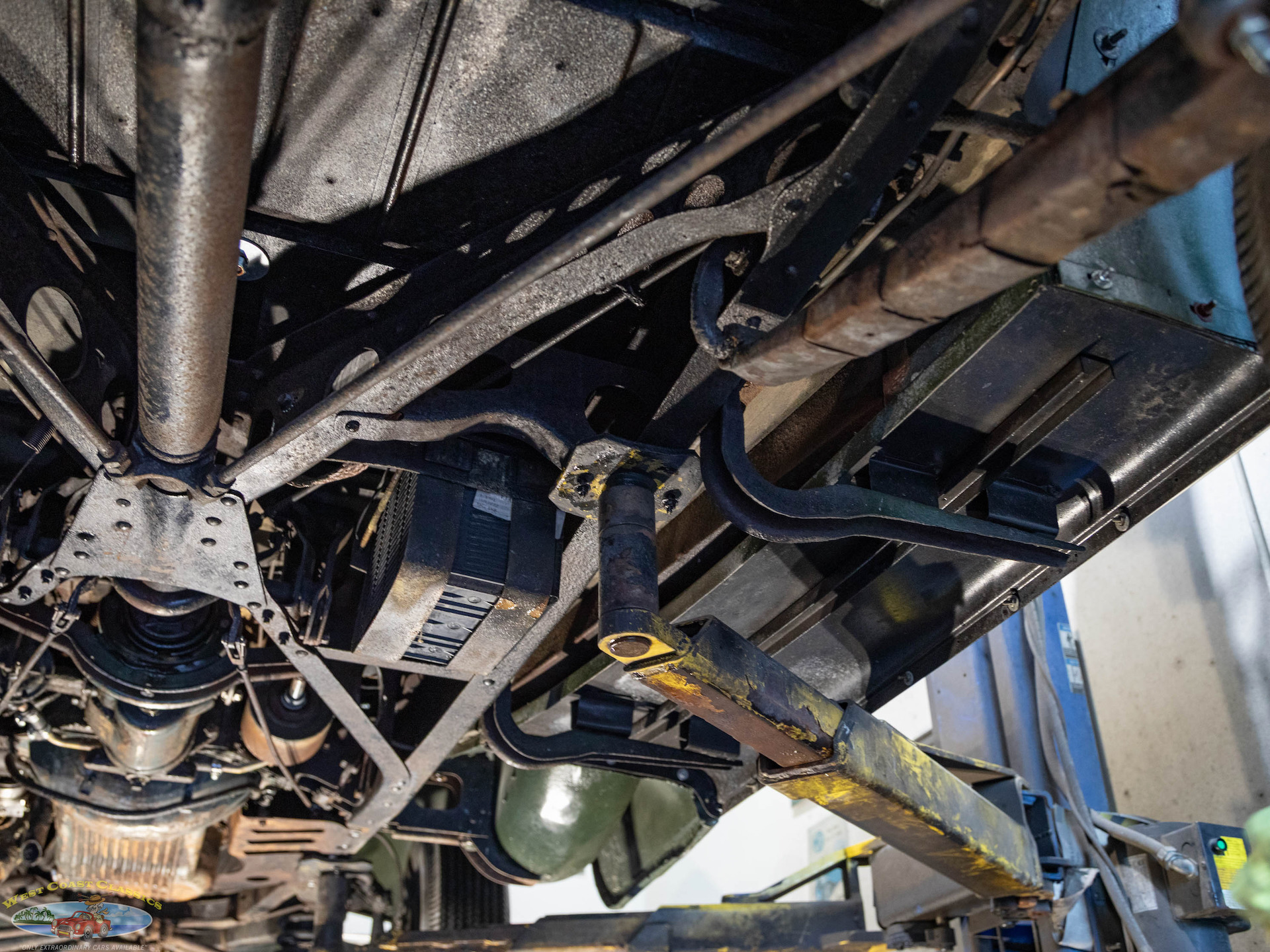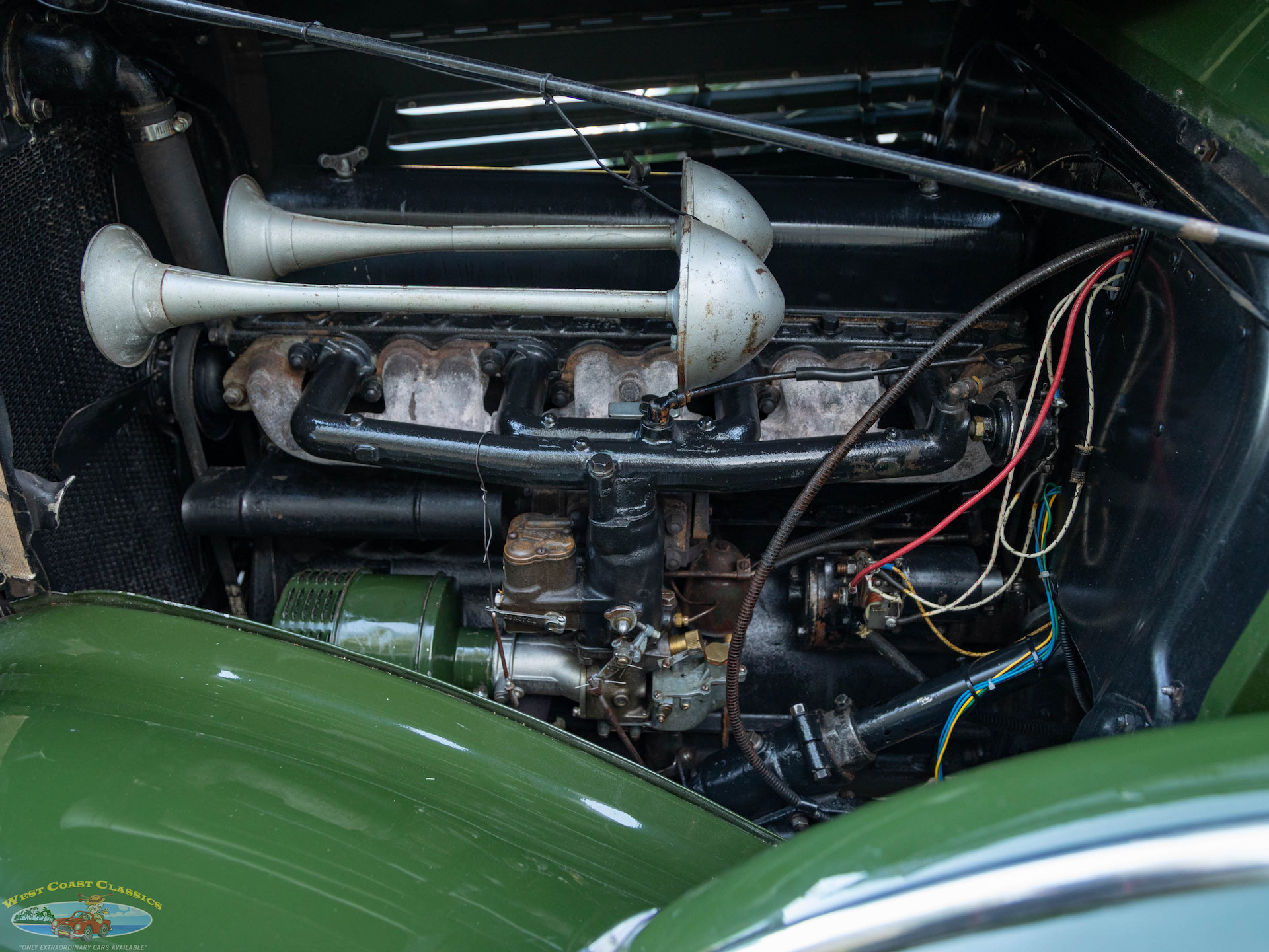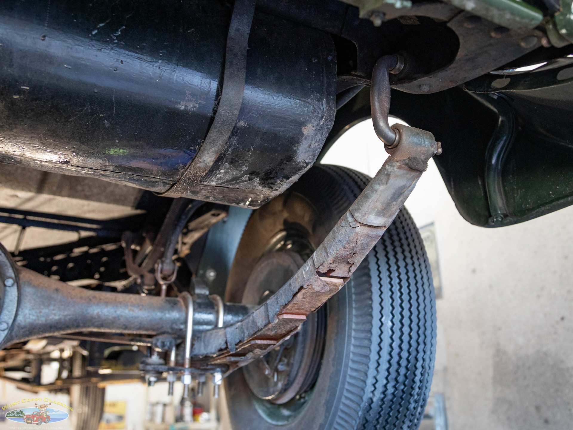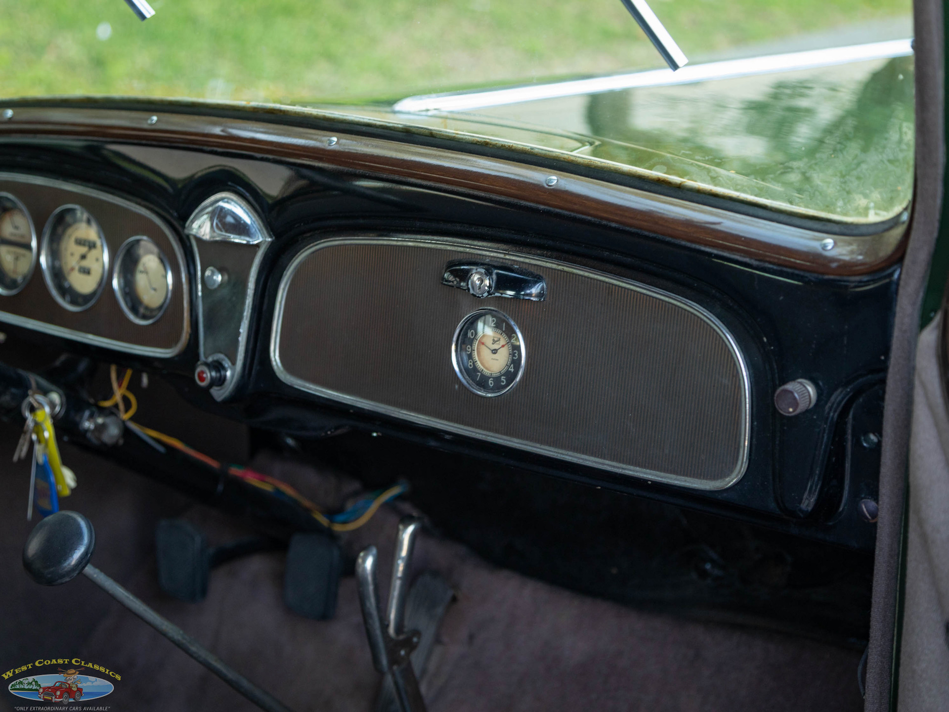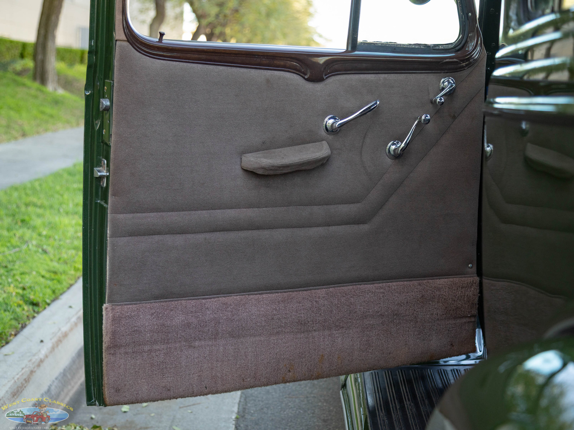 The 235 cubic-inch inline-8 had overhead valves, a cast-iron block, five main bearings, mechanical valve lifters, a Marver carburetor, and delivered 88 horsepower. It was backed by a three-speed sliding gear, synchromesh transmission, and stopping power was by mechanical brakes on four wheels.