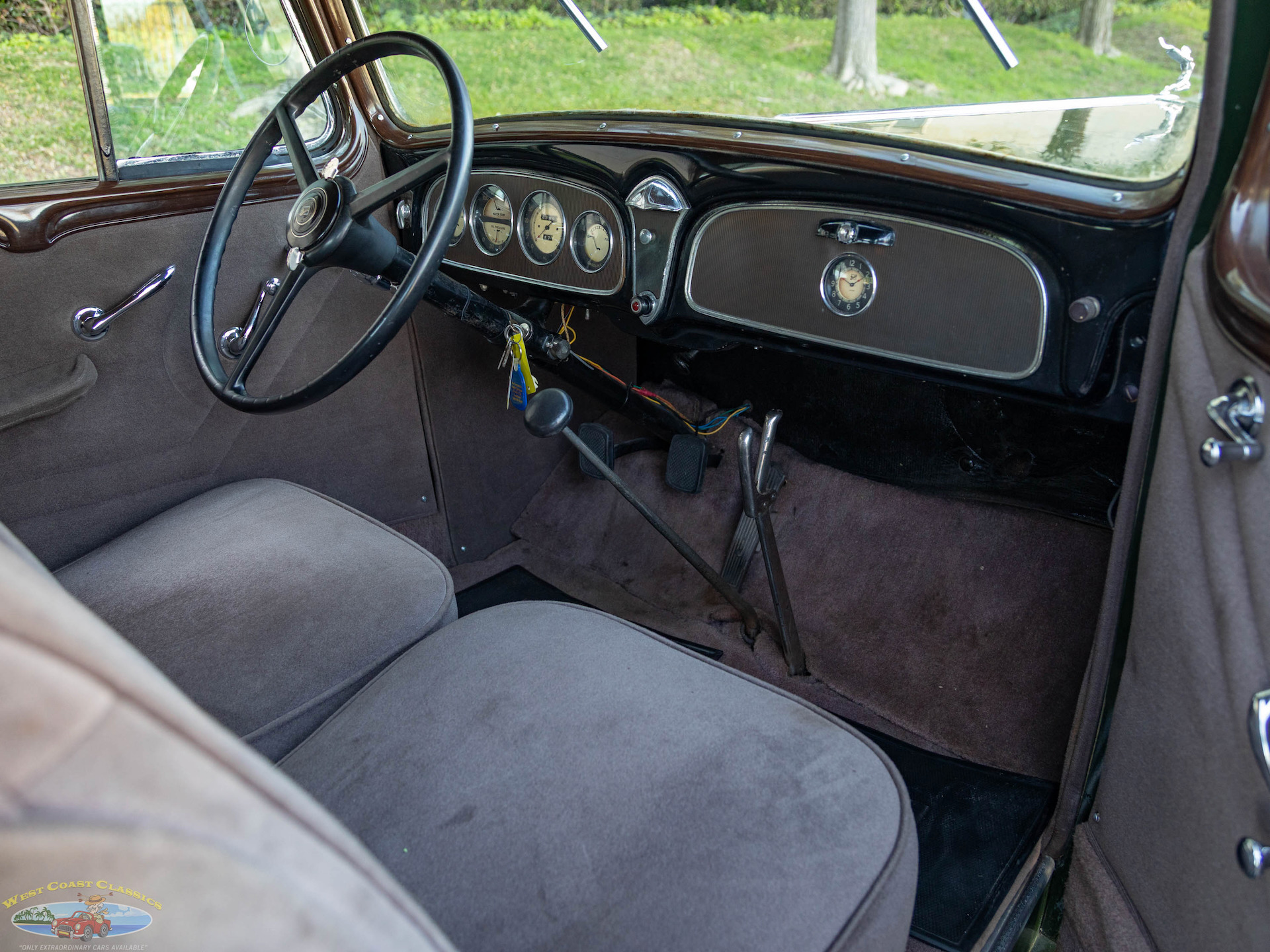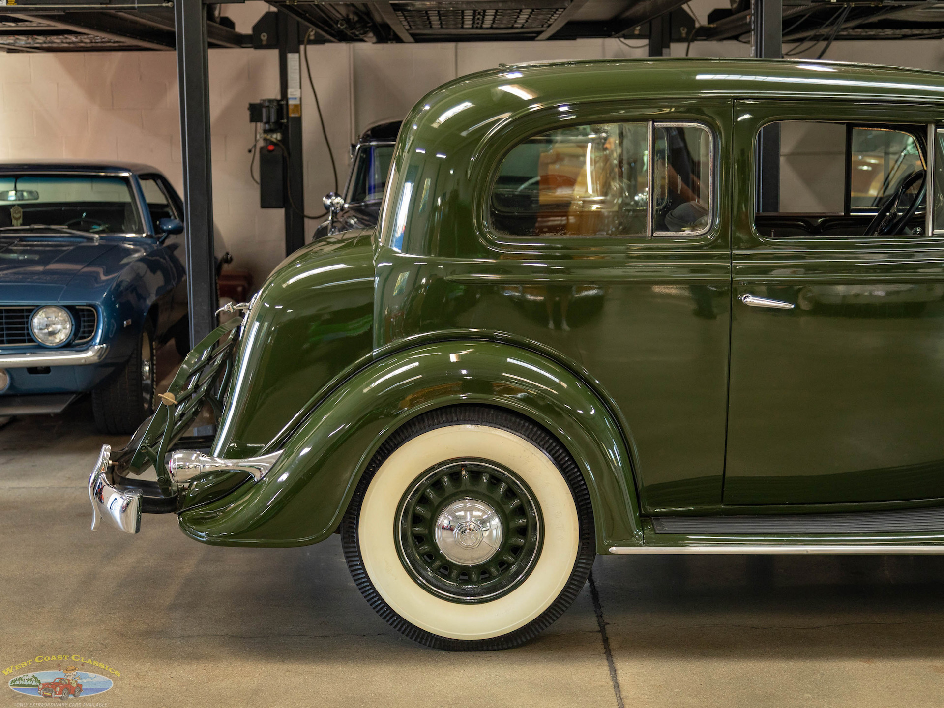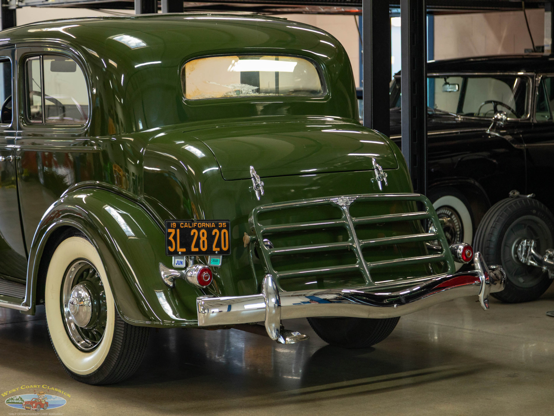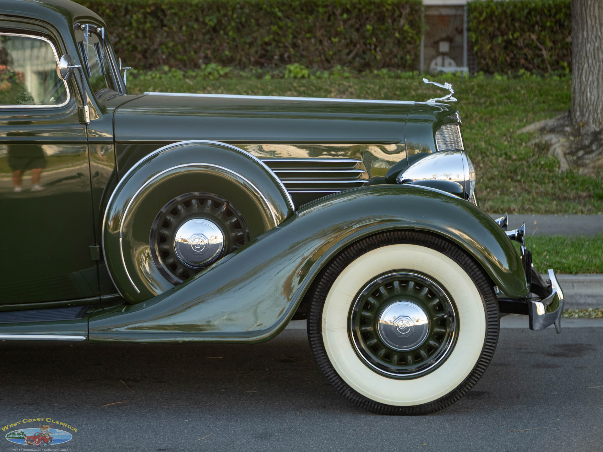 Exterior: Distinguished by sweeping aerodynamic lines, a "thinner depth" chrome grille for 1935, and artillery-style or wire-spoked wheel
