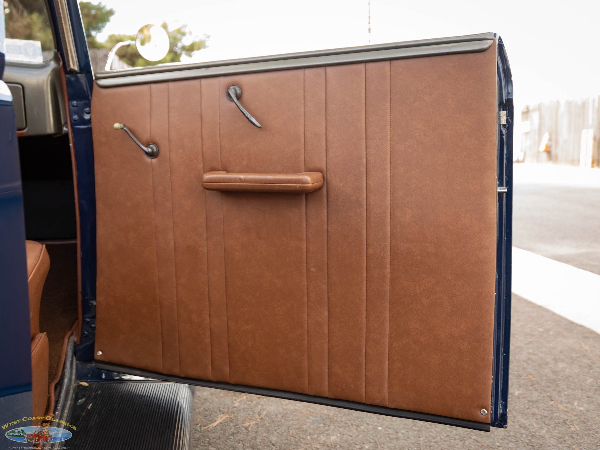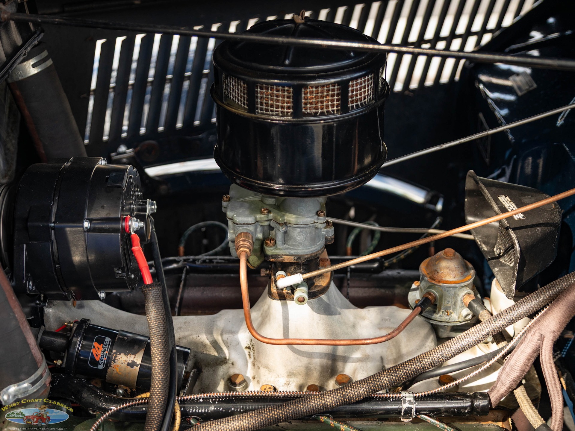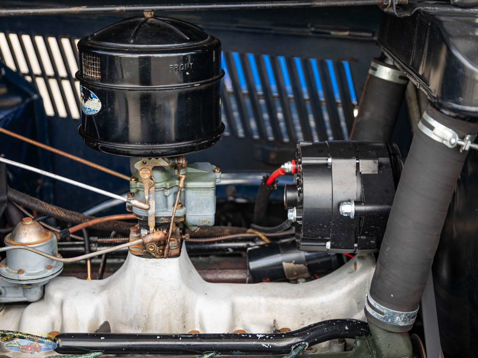 The 1936 V8 85HP DeLuxe cabriolet offered here is beautifully presented in probably the most striking of color combinations; 'Washington Blue' with a stunning Tan leather interior in the correct pattern, exceptional wood-grained trim (including the dashboard and window turns), and proper Ford script glass in the side windows and back window. The bodywork is impressively straight, with fresh welting and rubber seats, and the brightwork, including both chrome and stainless, is very attractive. Its engine bay has an excellent, stock appearance, with an original air cleaner and generator, factory manifolds and exhaust, and proper detailing down to the correct hose clamps. Desirable accessories fitted included a jewel cigar lighter, rear-view mirror, original Ford clock, chrome bumper guards, as well as matching 'Washington Blue' stock V8 hub caps with trim rings.
