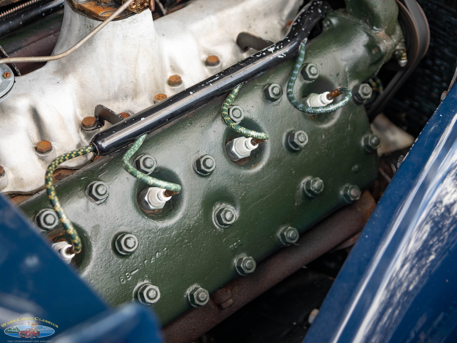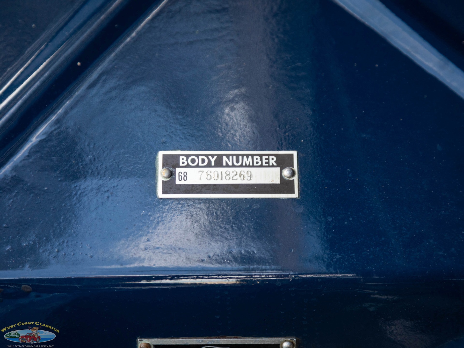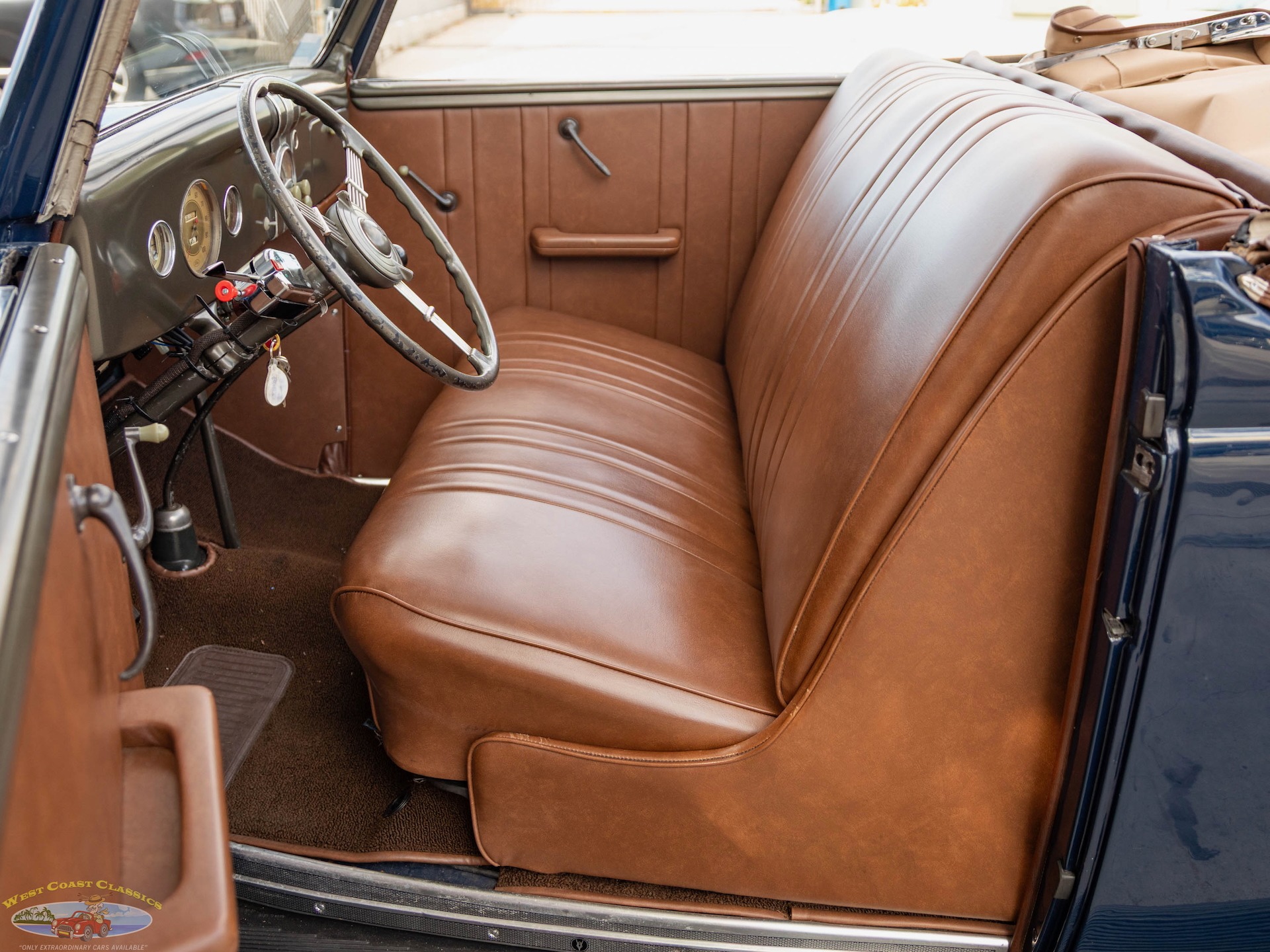 A beautiful restoration in wonderful colors of classic 'Washington Blue' over an absolutely beautiful Tan leather interior. Numerous correct finishes throughout with many factory and period accessories. A rare 2 passenger body style Cabriolet with the rumble seat, which is distinct from the Club Cabriolet with the enclosed trunk, instead of a rumble seat, at its very finest.