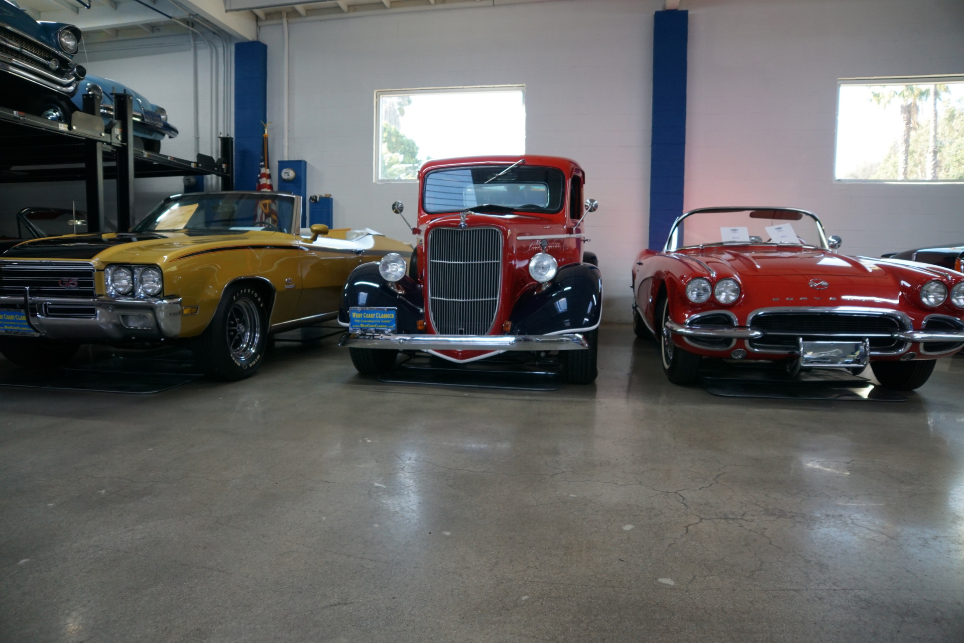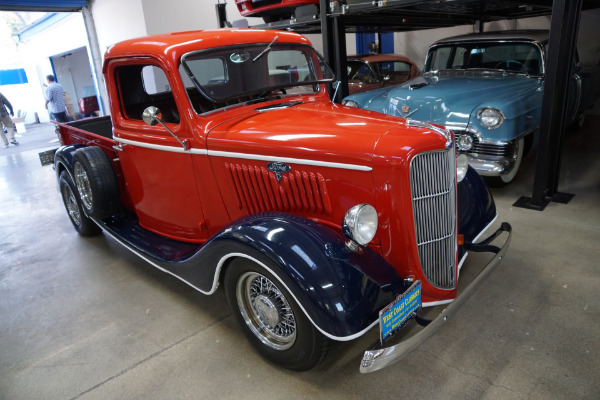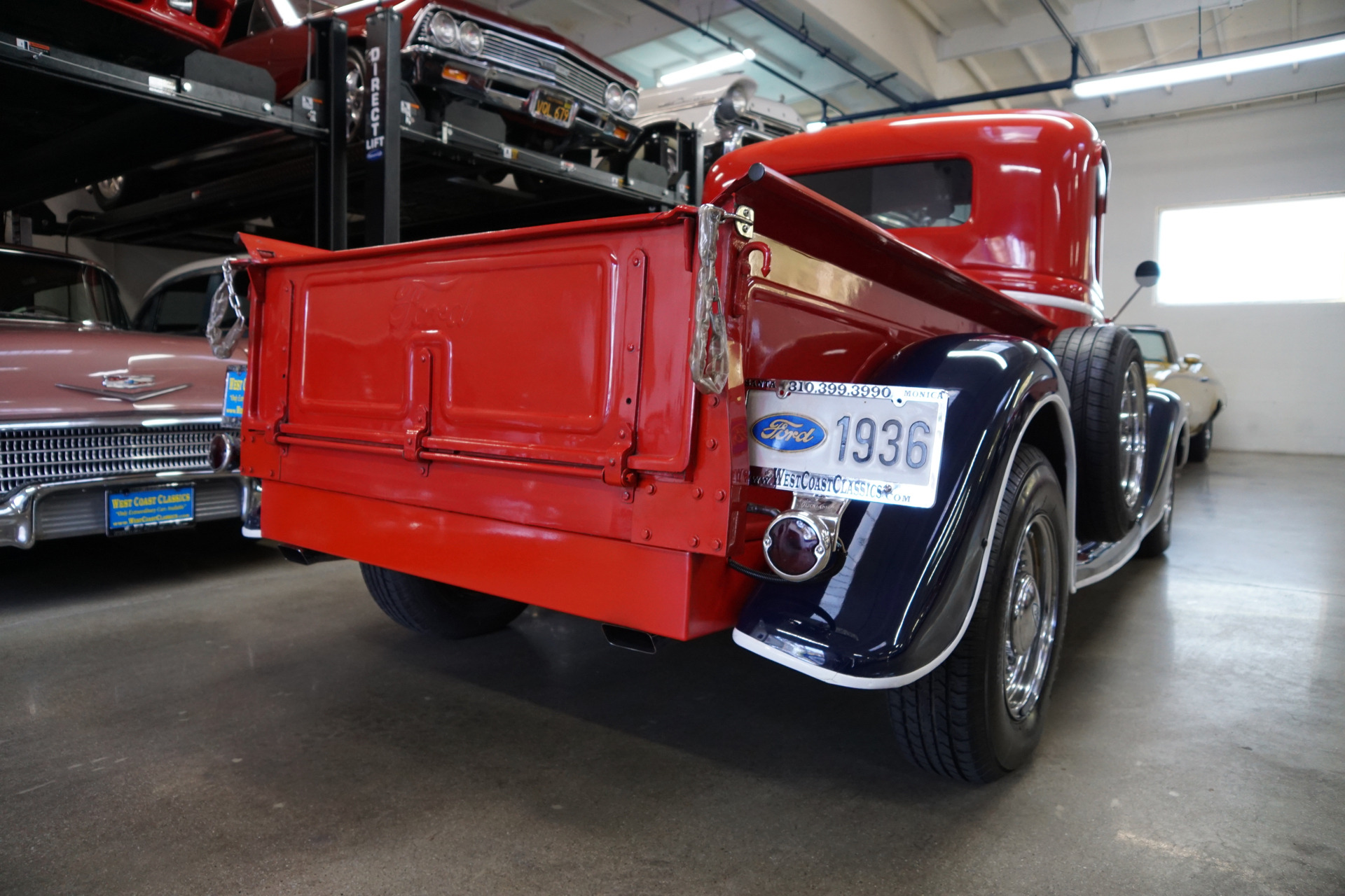 West Coast Classics are proud to present a great daily driving example of this original 'Henry Ford' steel bodied 1936 Ford 24 head studs Flathead V8 Pick Up Truck with classic 'Offenhauser Flathead Finned Ford aluminum heads and intake manifolds' and a custom Red interior with a 3 speed manual stick shift transmission and Ford rear end.