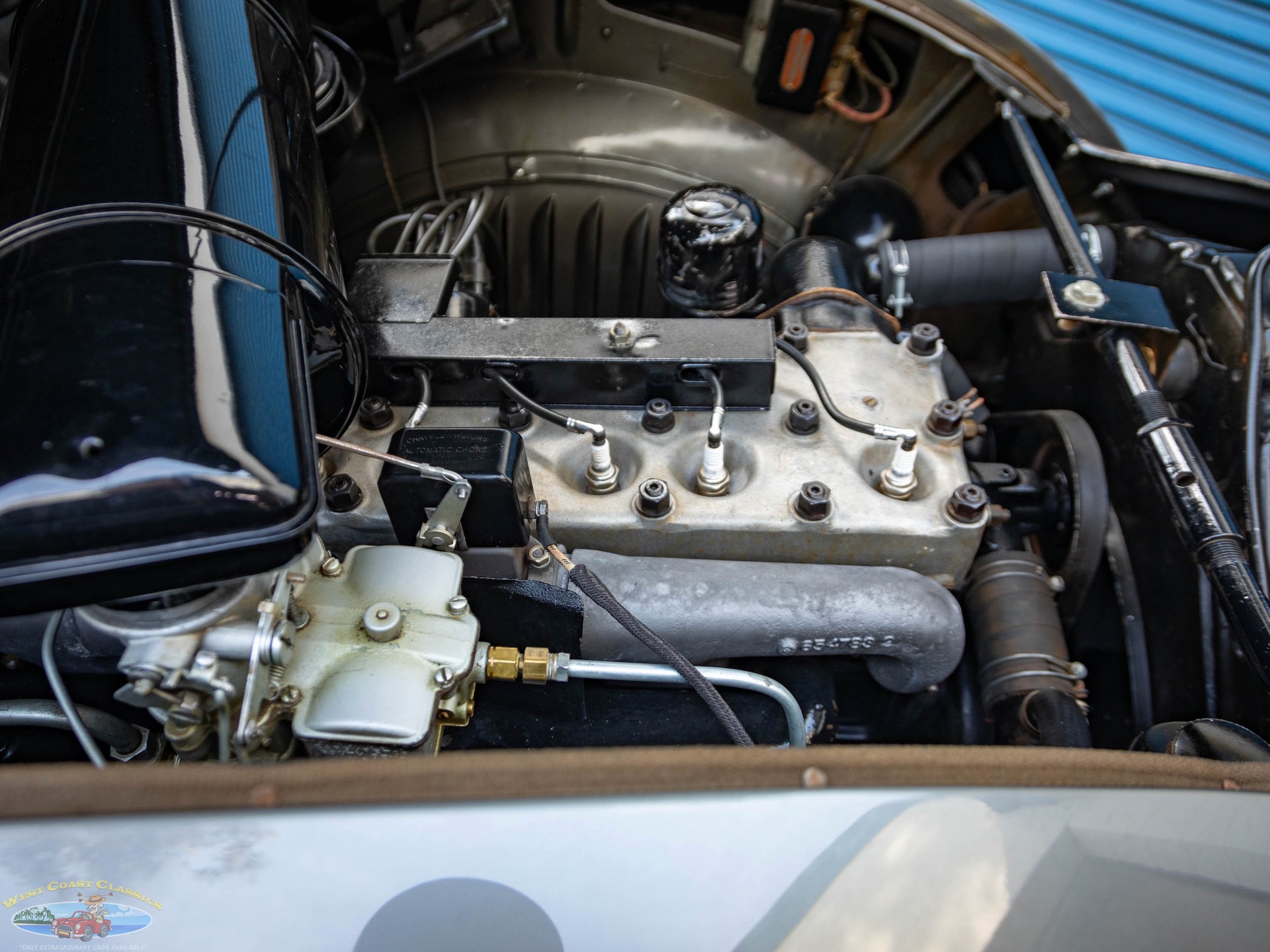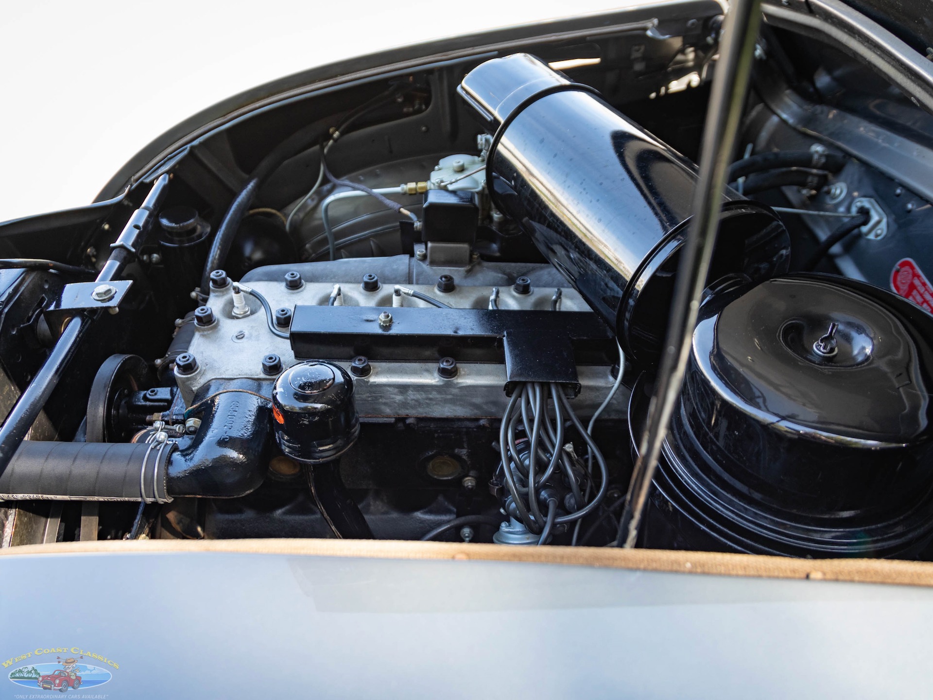 The 323.5 cubic inch straight 8 is factory-correct and newly reconditioned matched to the 3 speed freewheeling Borg Warner centrifugal overdrive transmission.