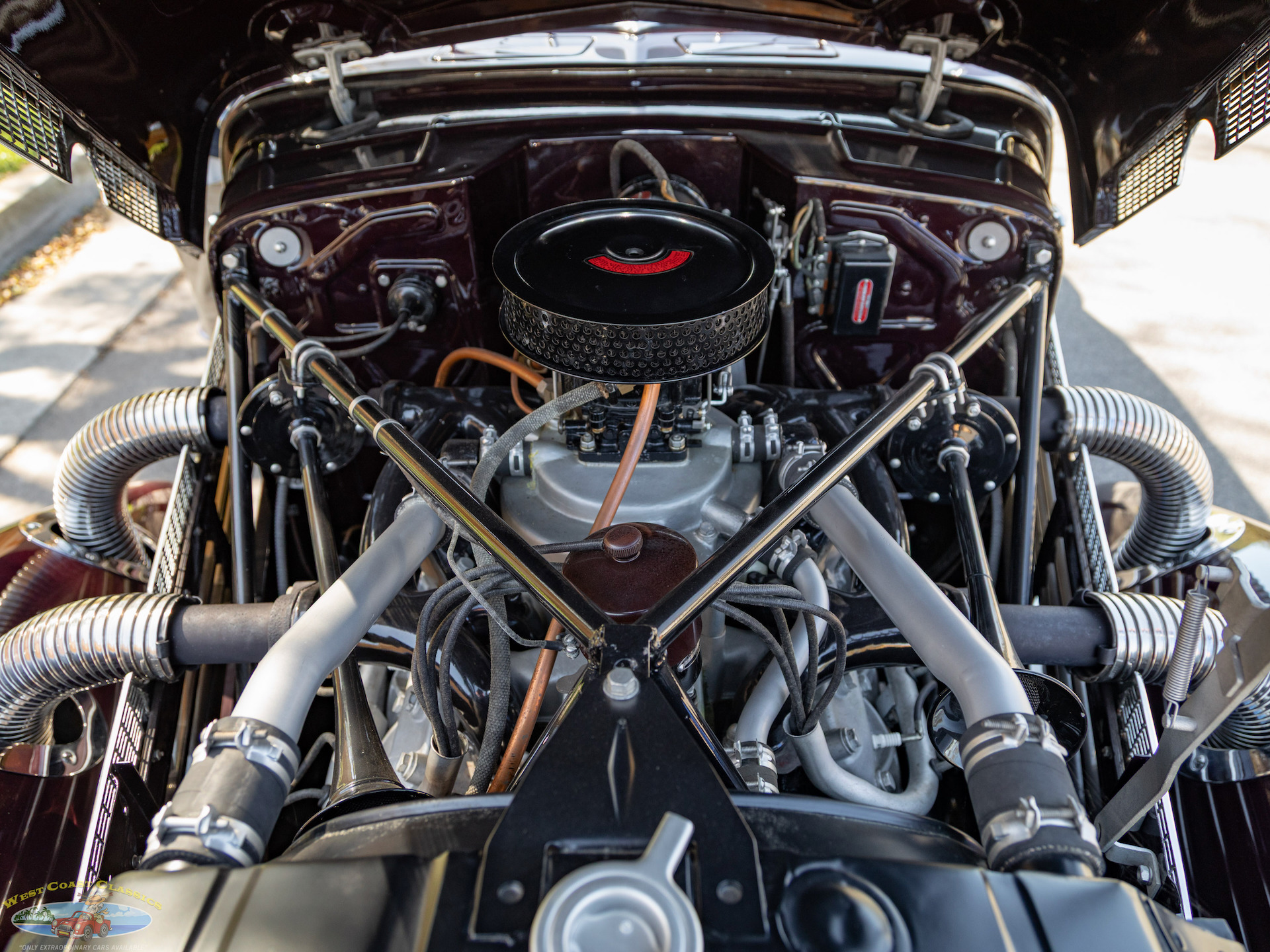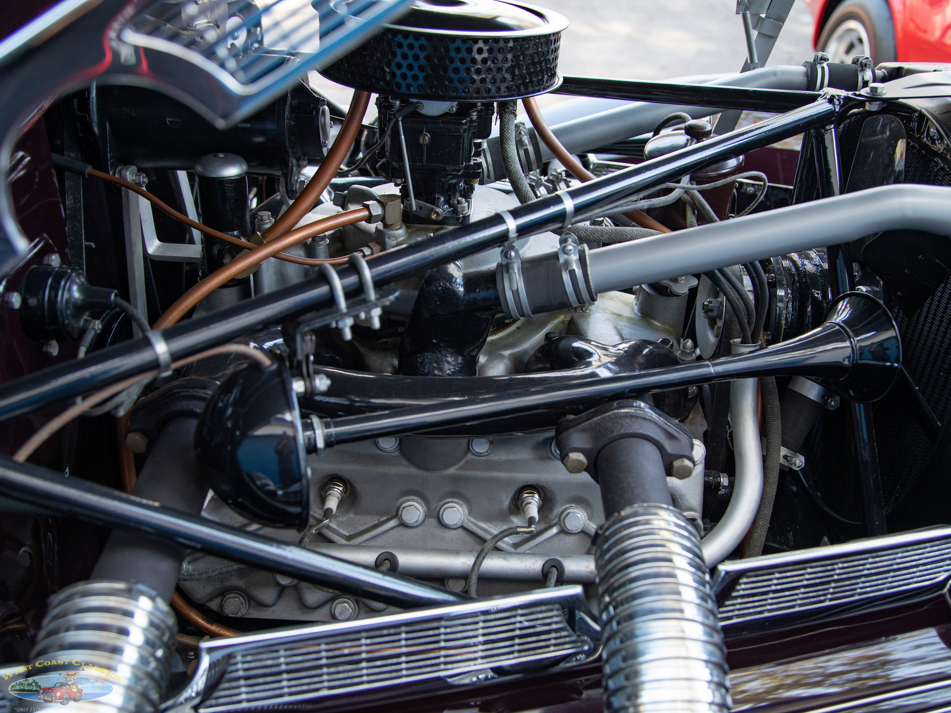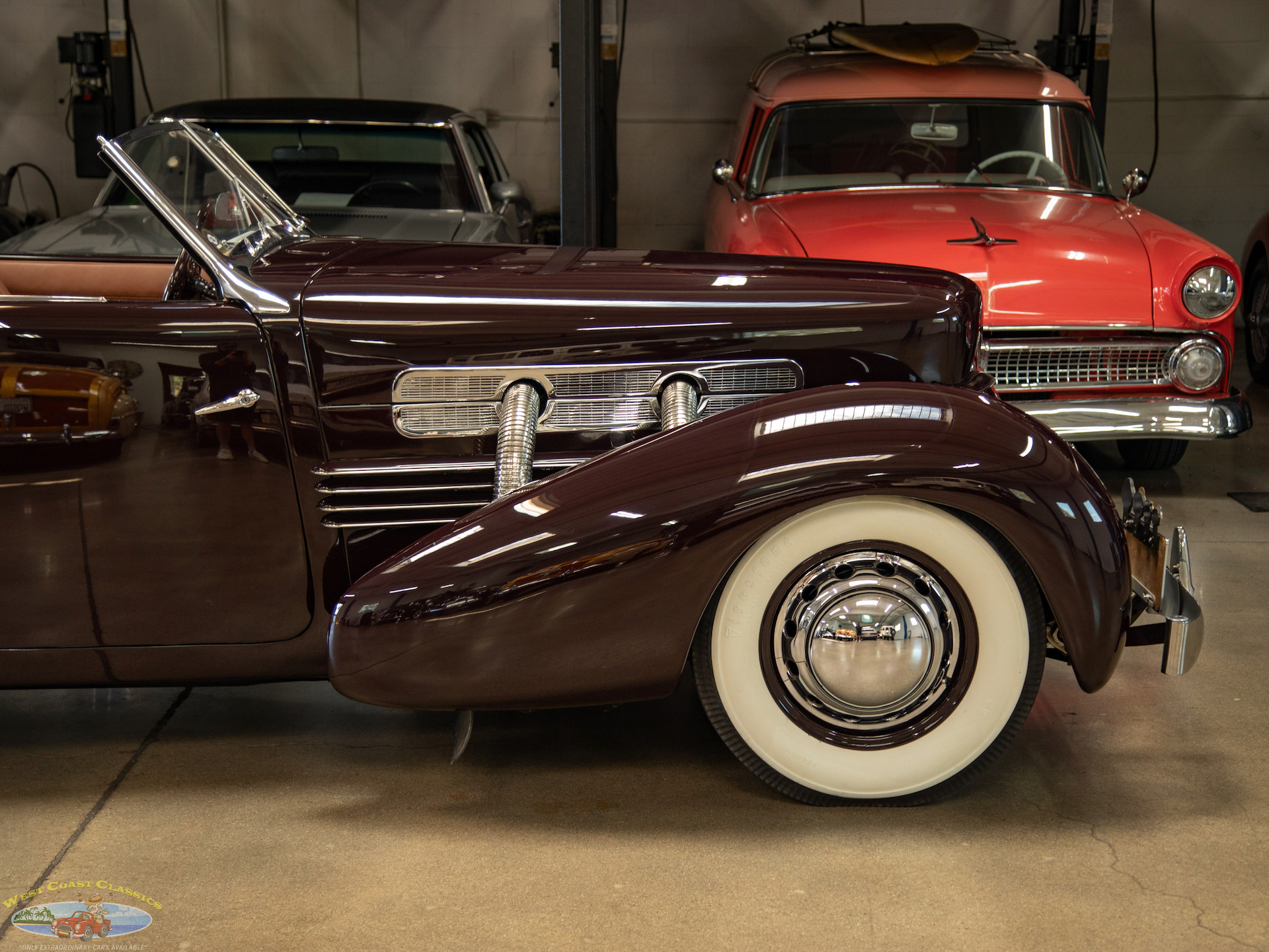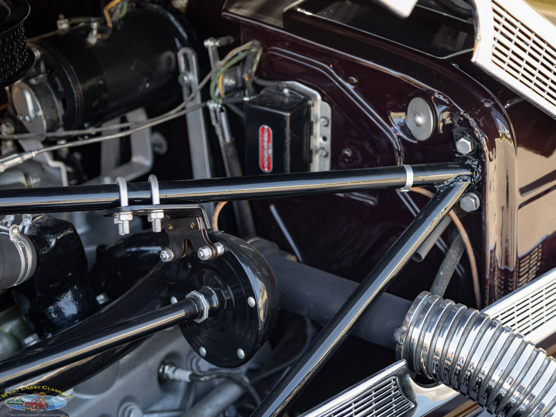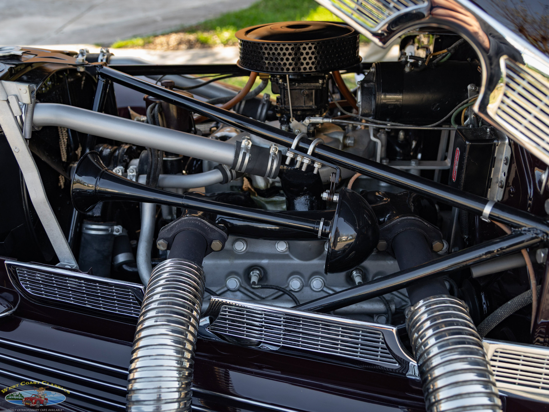 Given the numerous factory upgrades made in period to fit supercharged engines to Cords, please note therefore that it should not be considered a fact that this particular example was originally delivered as a supercharged Phaeton, and while the car presents as a high-performance supercharged model, its exact factory configuration is to be considered uncertain because of the numerous in-period factory upgrades to these 1937 Cords. Many naturally aspirated Cords were sent back to the factory, or independent shops, to have Schwitzer-Cummins superchargers installed shortly after purchase, making "originality" difficult to verify.