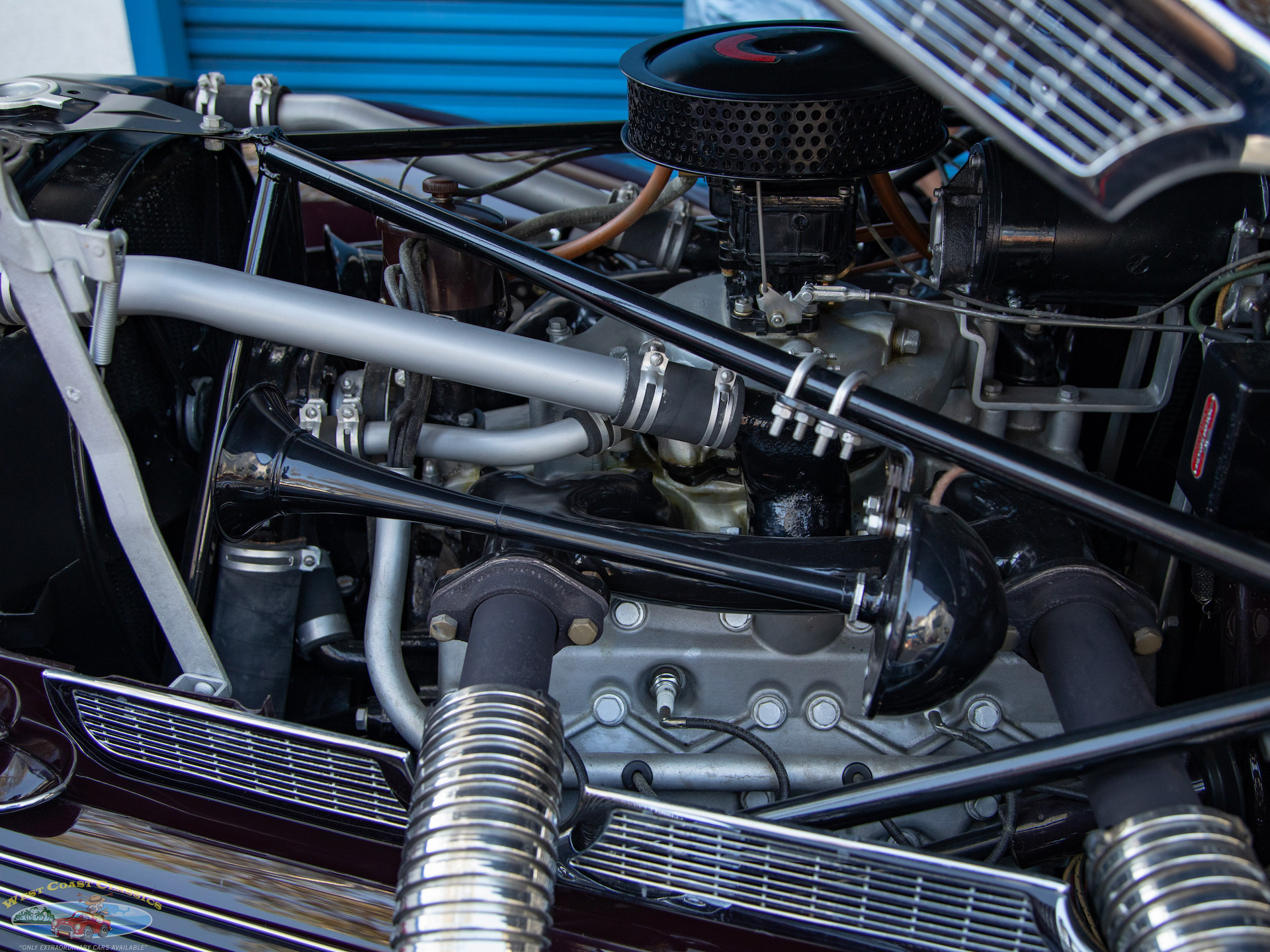 These sporty cars are even more collectible and desirable when equipped with the 812's optional supercharger, which came in partnership with a modified firing order, lowered compression ration, a more extreme camshaft grind and a unique larger Stromberg AA-25 carburetor. It exhaled through functional side exhaust, long a signature of the Cord Corporation's supercharged automobiles.