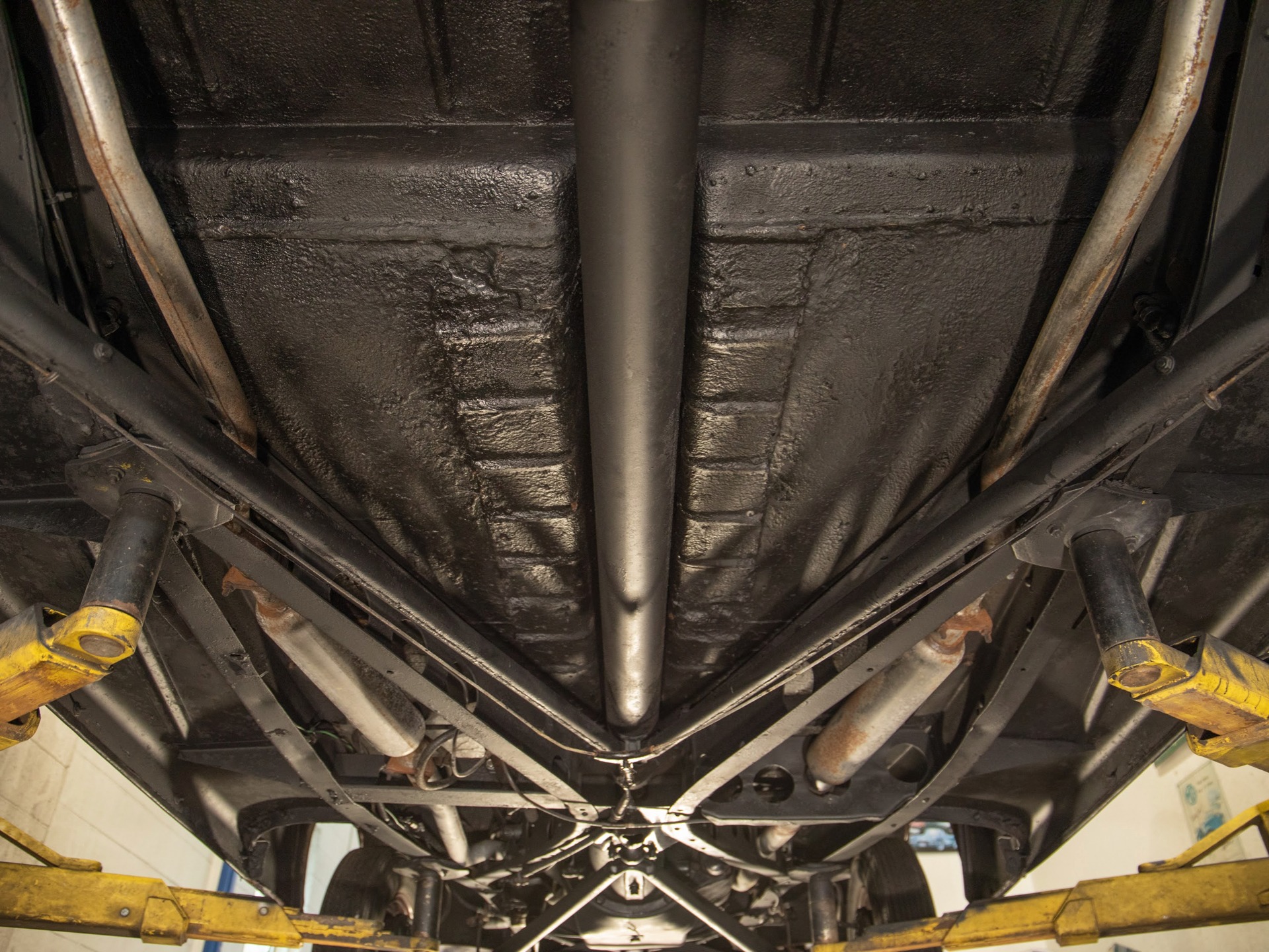 221 cid V-8 flathead engine, 85 HP, three-speed manual transmission, solid front axle and live rear axle with transverse semi-elliptic leaf springs, four-wheel hydraulic drum brakes, rear-wheel drive; wheelbase: 112"