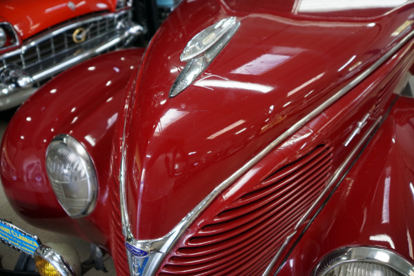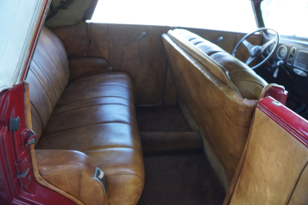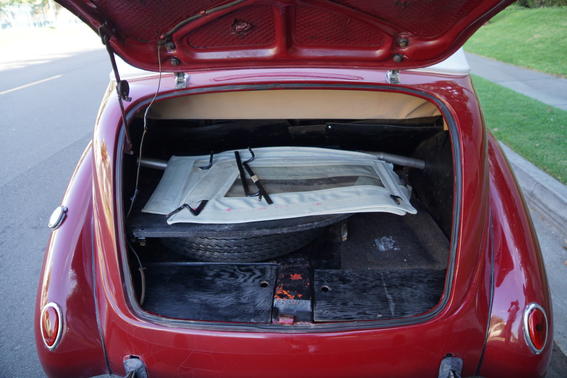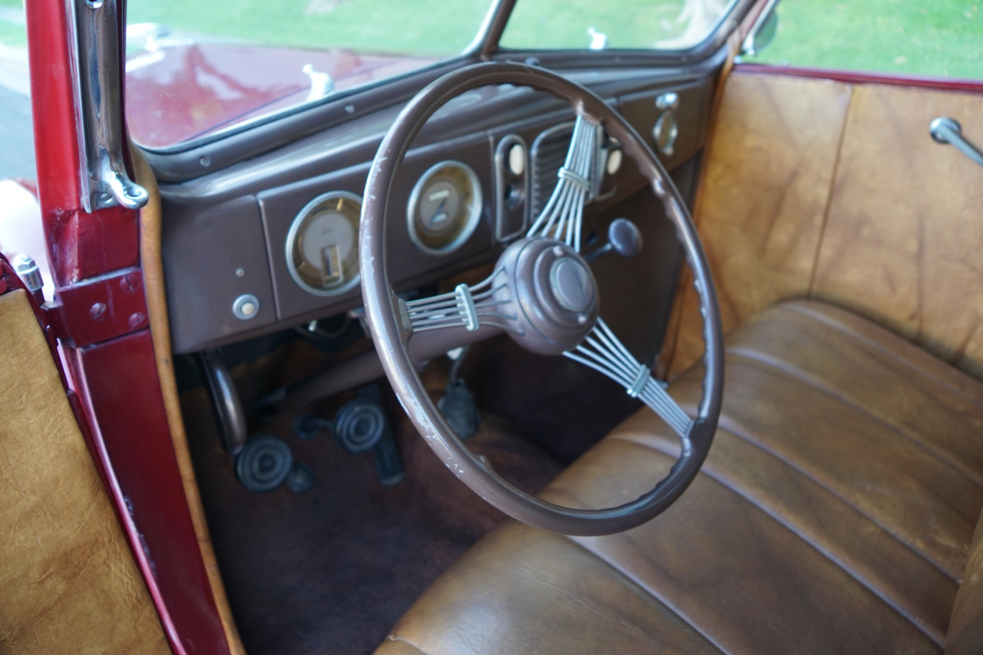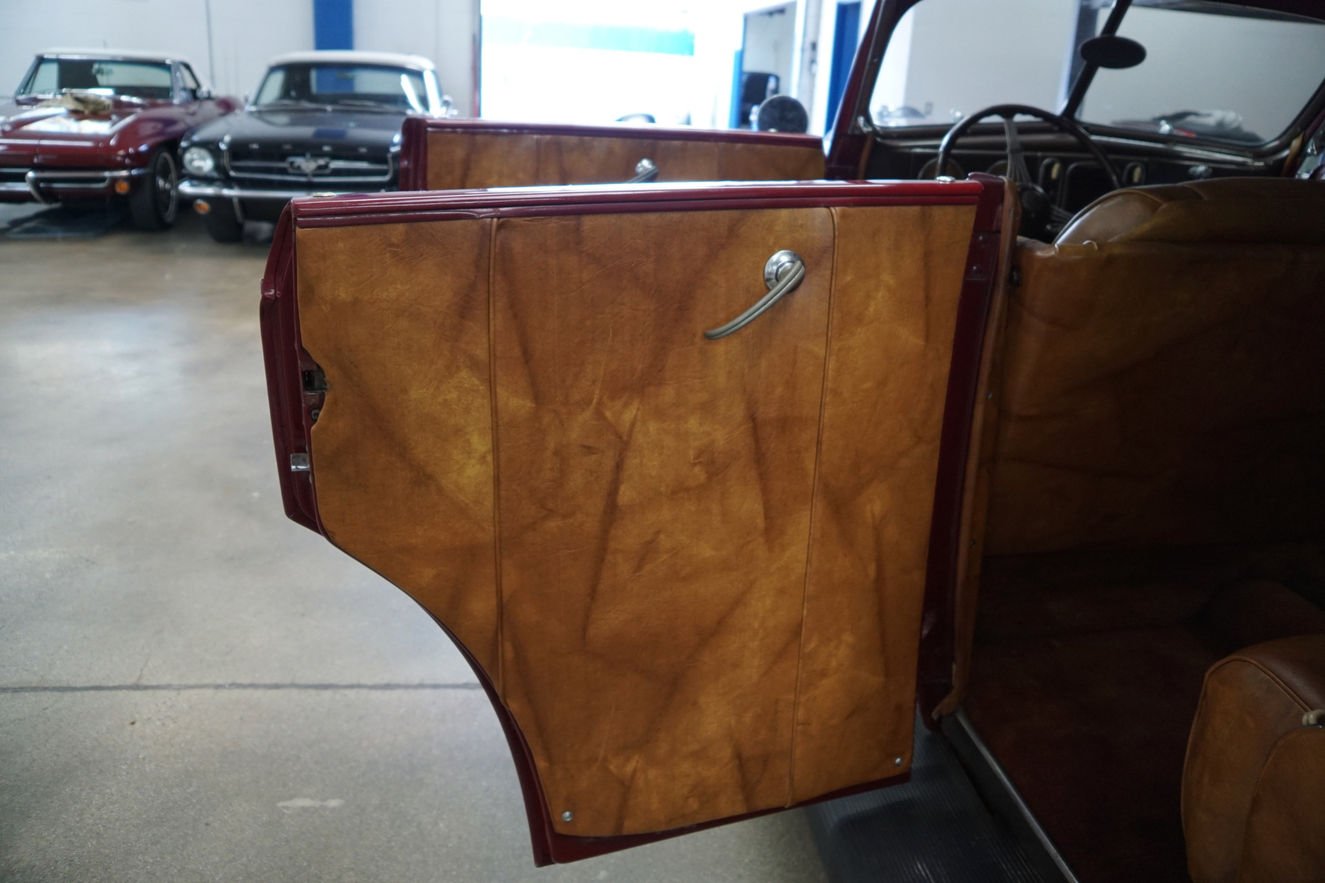 This 1938 DeLuxe Phaeton is one of 1,169 built that year, the rarest of that years body styles and is equipped with the early 21-stud 221 CID V-8 engine with a 3 speed manual transmission backed by a 3.78:1 differential. The car is a true southern California barn find (garage really!) and rust free throughout and all the body contours are correct, door gaps are even, and the doors shut well. Repainted some years ago in a striking Red/Maroon, the repaint is now very aged and in need of restoration. Until recently acquired by us from the previous owner, the car had been sitting for many years in the previous owner's collection in dry storage here in southern California, awaiting a restoration that never happened.