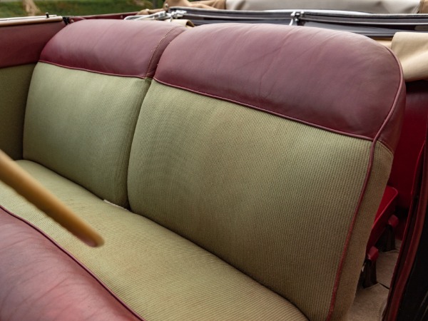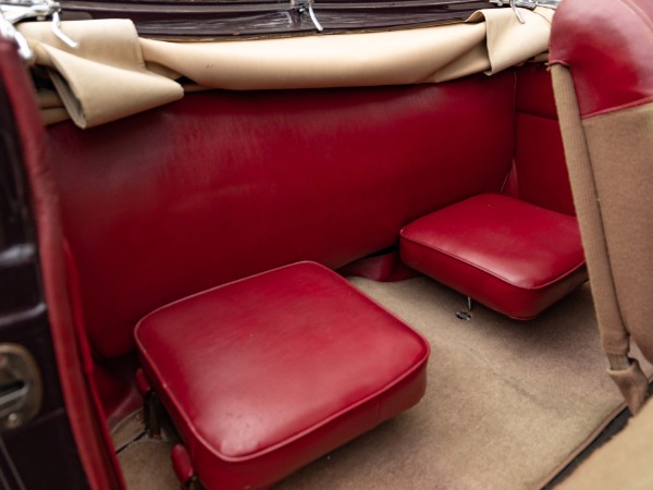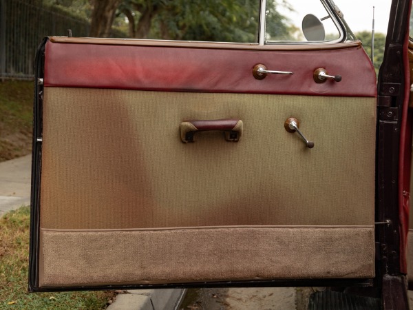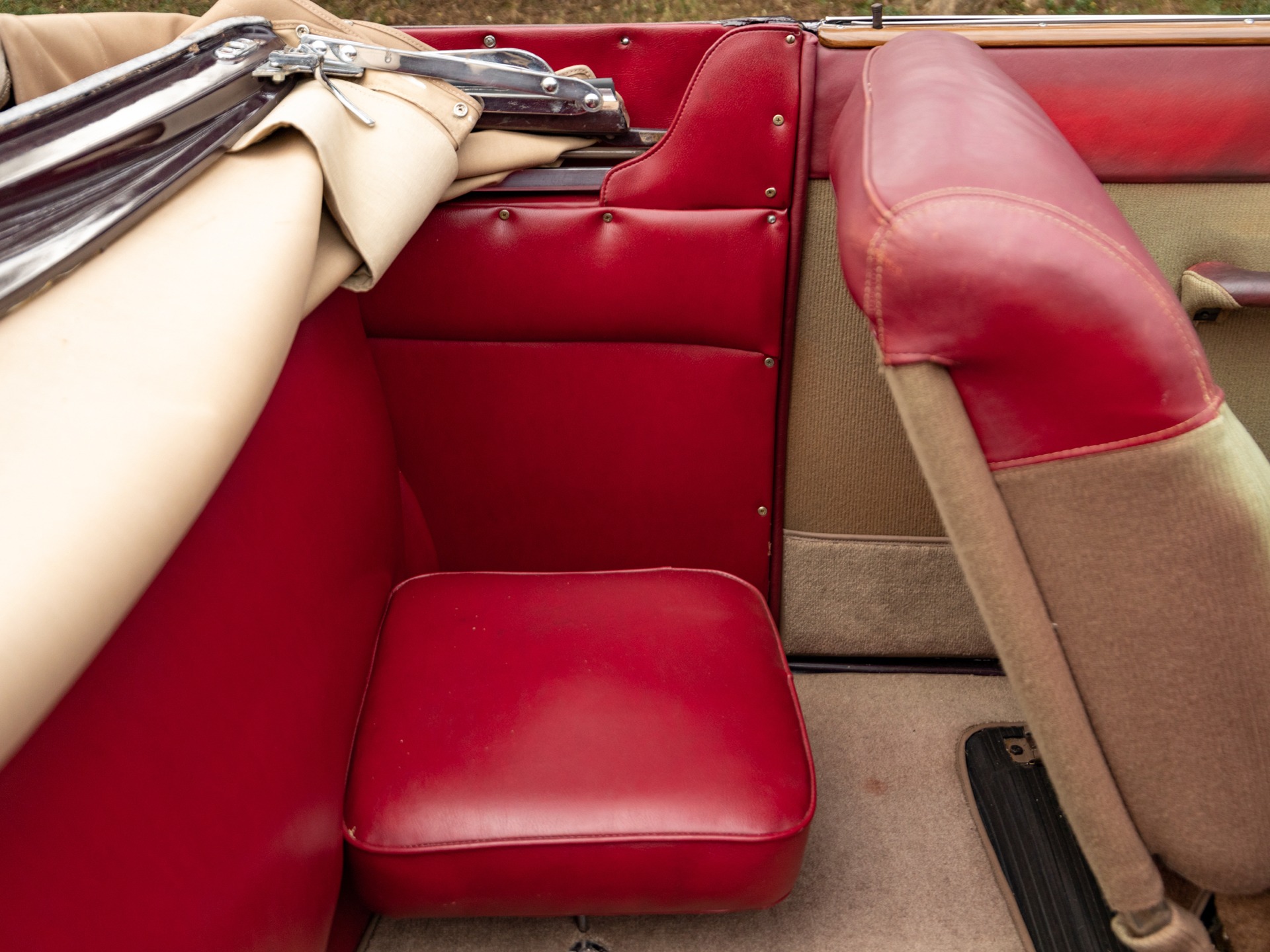 This particular car has been beautifully restored and finished in a striking 'Burgundy' color with a contrasting Red interior with a rare dual rear seat configuration and a Tan convertible soft top. The car looks absolutely beautiful and was the recipient of a professional restoration some years ago with reportedly only very few miles since the restoration and stored in a climate controlled facility as part of a collections since the restoration.