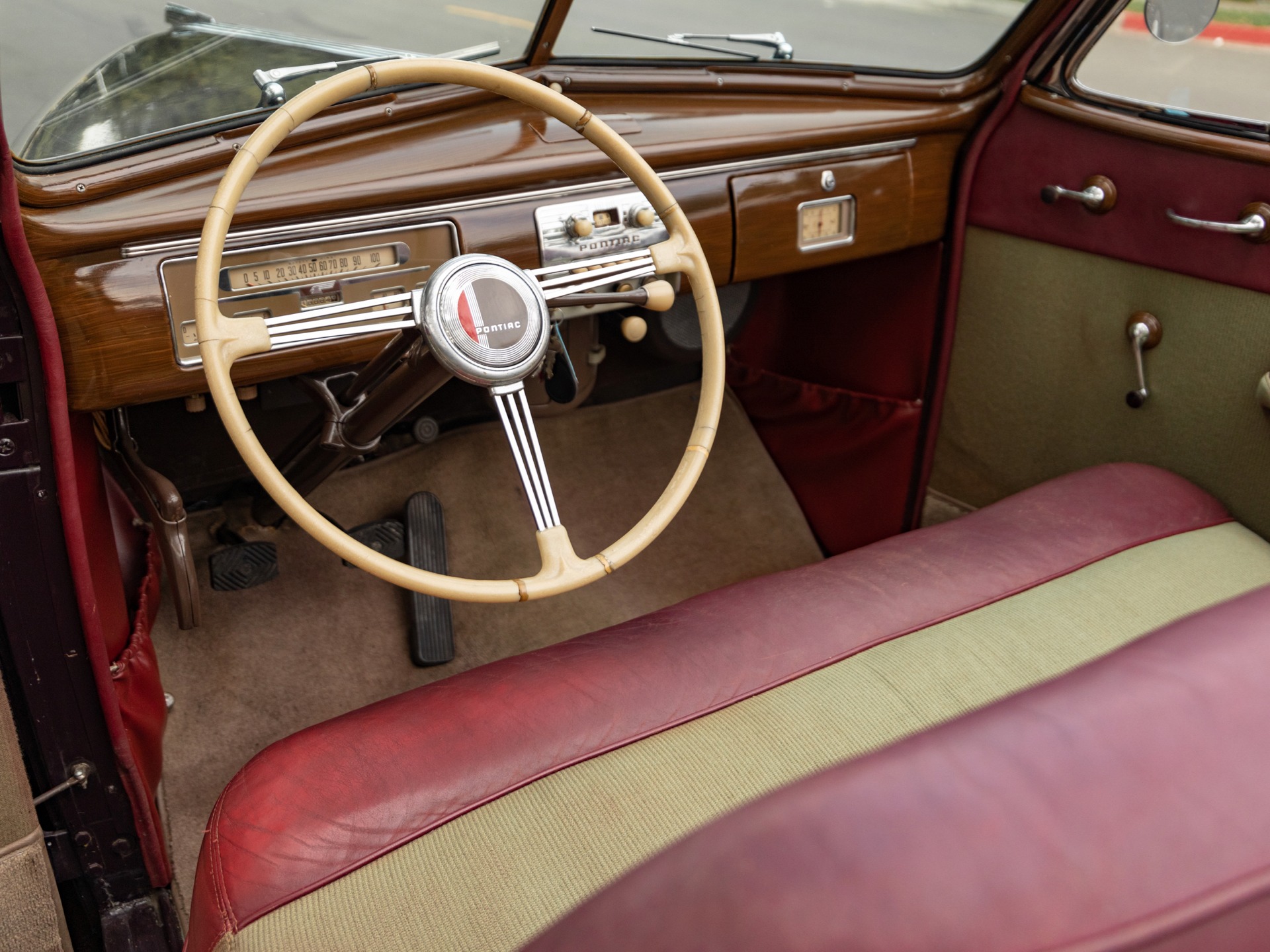 The Pontiac 'Silver Streak' offered here is an example of the larger, better equipped and more expensive and luxurious example of the two six-cylinder ranges, the Deluxe, which for 1939 was built on a 120" wheelbase chassis and powered by a 222.7 CID (3.6-litre) sidevalve engine producing 85bhp. This rare model is a beautiful example of the late 1930's market for large, expensive motor cars which had almost all but vanished and only buyers that were very well connected were able to acquire such vehicles, which were in very short supply due to WWII. A wonderful opportunity to acquire a rarely seen and stylish, soft-top example of classic 1930s Art Deco Americana with styling by by noted designer Franklin Q. Hershey.
