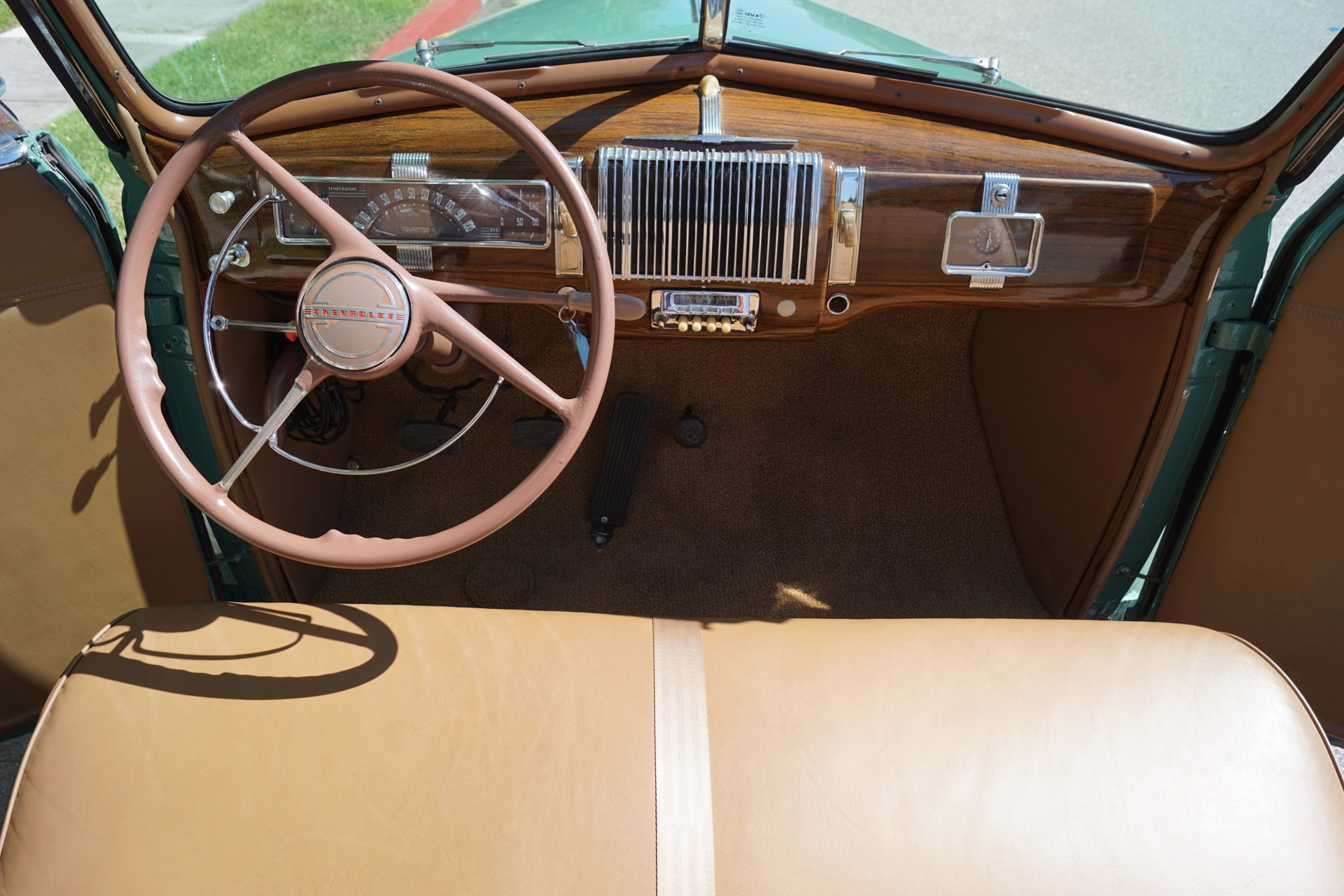 All Chevy's from 1932 forward had boasted the long-lived and reliable 'Blue Flame' six engine and amongst its available models the longer wheel base versions of the 'Master' line, known as the 'Deluxe' versions were the most desirable. This was a classic prewar Chevy and well proportioned and solidly built. The top-of-the-line model was known as the 'Special Deluxe' and it was a much fancier and upscale edition of the 'Master Deluxe' and which today commands the attention of serious collectors and enthusiasts everywhere. Stainless steel moldings trimmed the hood and body belt line and standard equipment included a 30 hour clock, front door armrests, a right hand windshield wiper, twin air horns and a deluxe steering wheel with horn ring. The convertible had a full width rear seat and power operated top and a choice of different colors of upholstery and convertible tops was offered for the first time by Chevrolet. Interiors were richly appointed in cloth fabric and with leather in the convertible with thick seat padding for extra comfort. A two-tone woodgrained instrument panel surrounded an arched speedometer and auxiliary gauges while a clock graced the glovebox door and a chromed radio grille was positioned in the center. New to the Chevrolet line were plastic instrument knobs.