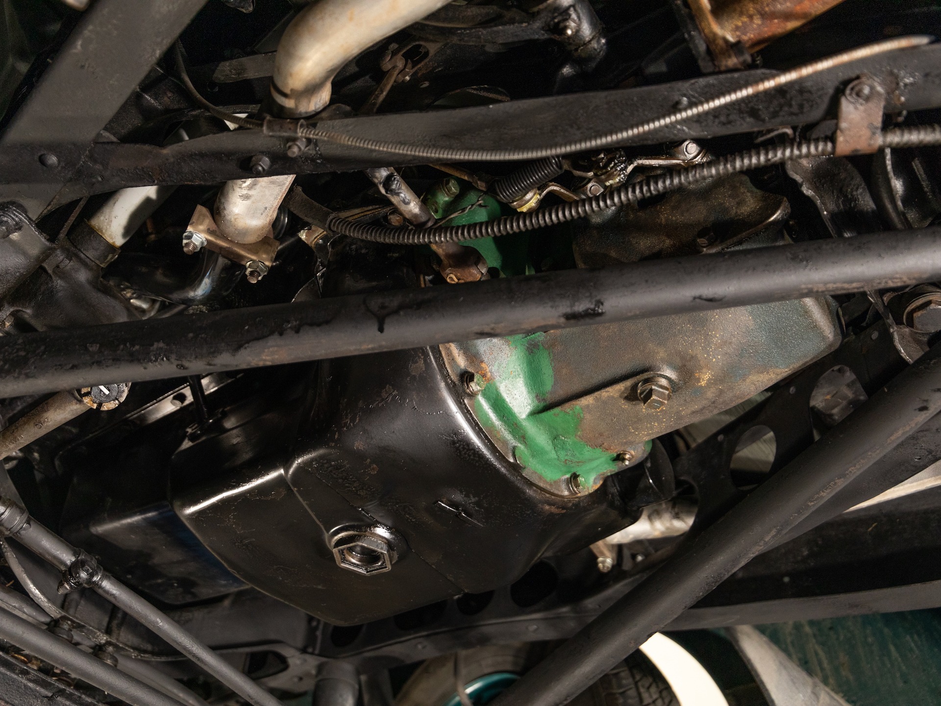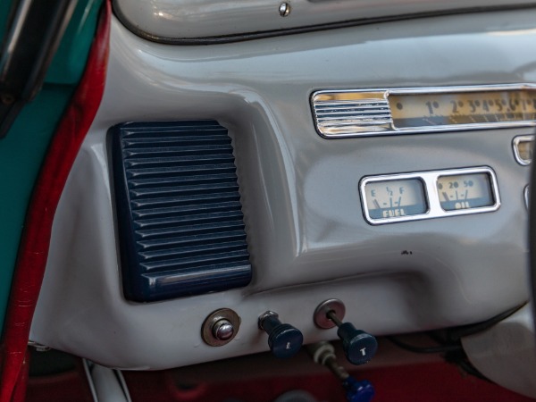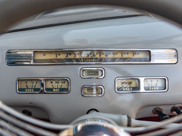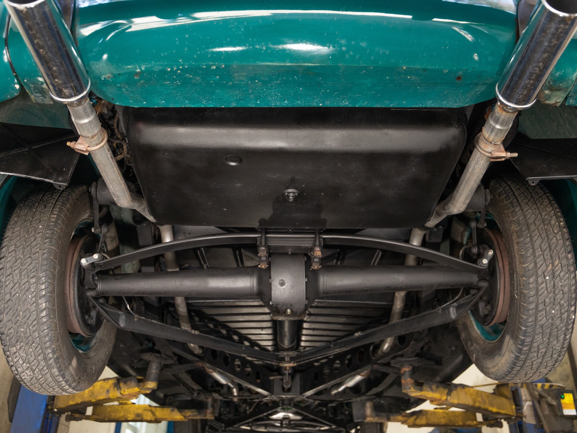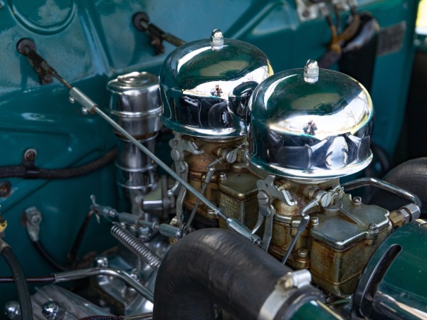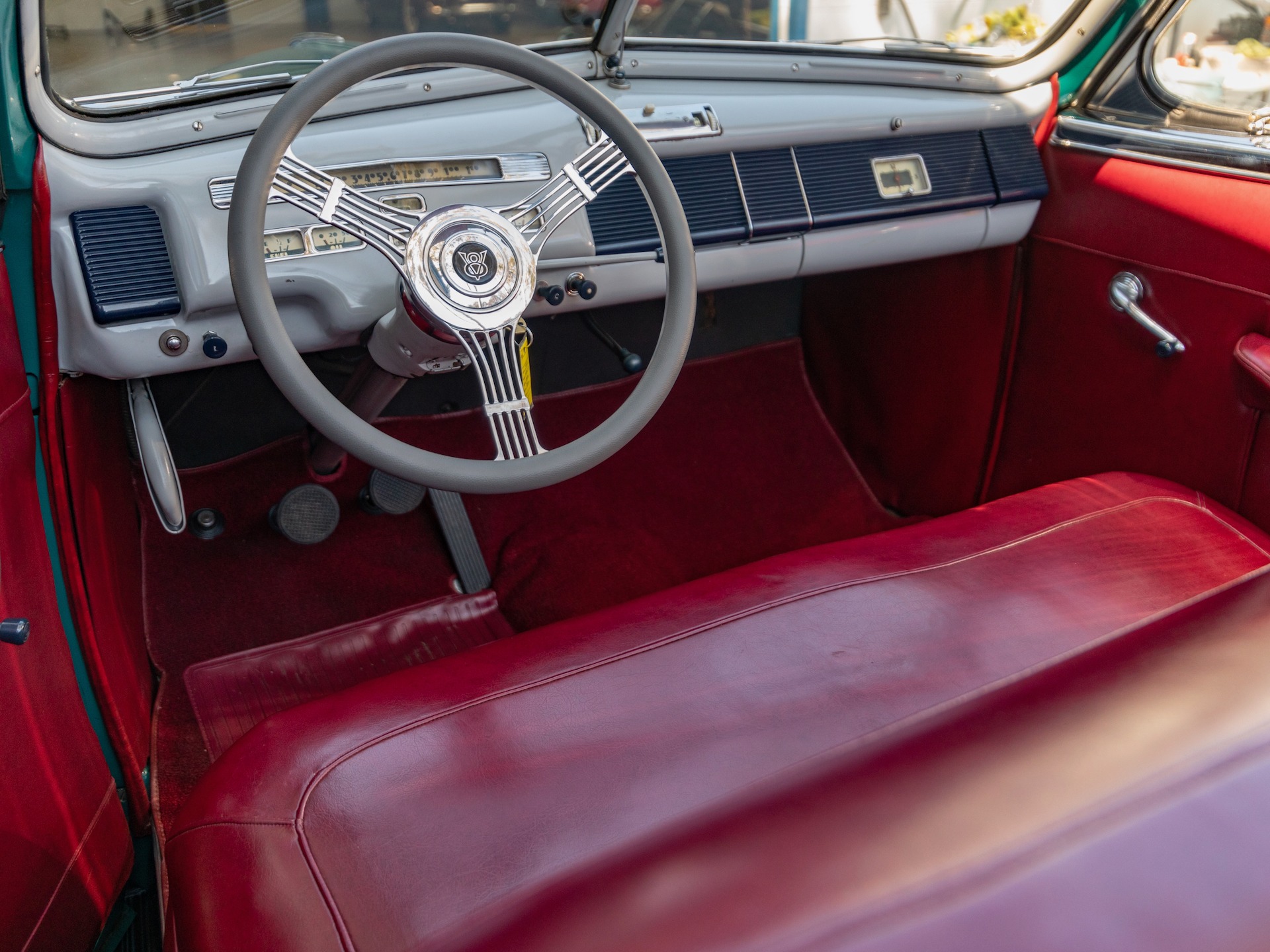 The flathead V8 has been upgraded with fully polished Offenhauser heads and dual Stromburg intake, MSD electronic ignition, and Reds Headers with full dual exhaust. The 3 speed transmission shifts smoothly through all the gears and the Hydraulic brakes stop the car well. Rolls on Radial wide whitewall tires. car has a slightly lowered stance for the 50s traditional custom look. The complete wiring harness was replaced with a new factory correct cloth bound harness. All of the gauges work well.