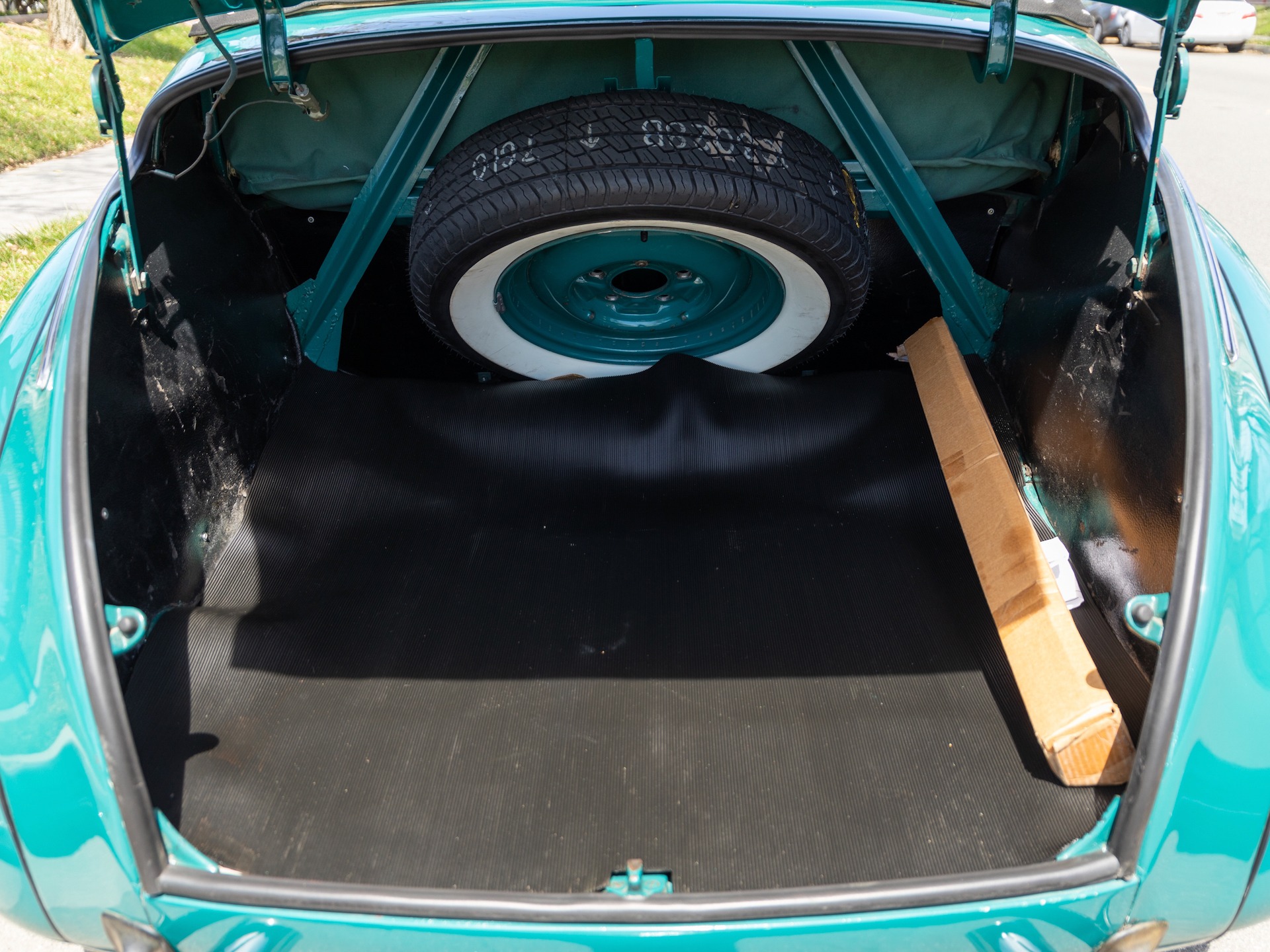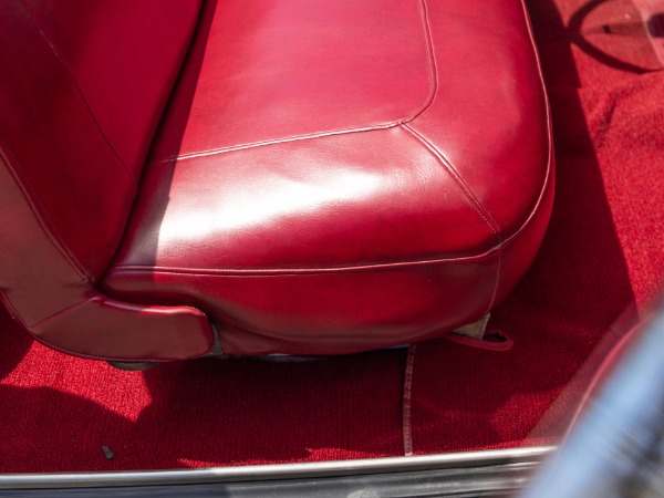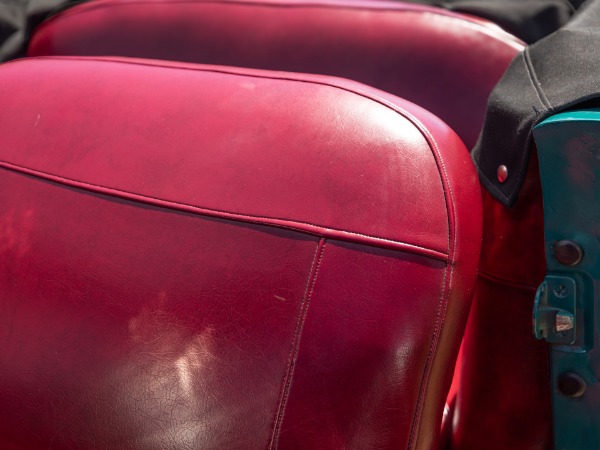 Interior shows great in 'Oxblood Red' with a Tan canvas power top. A custom Banjo steering wheel was added and gives more seating room. Power top works great and top is in good condition with no holes but shows some age. Top has a black canvas boot that looks great installed.