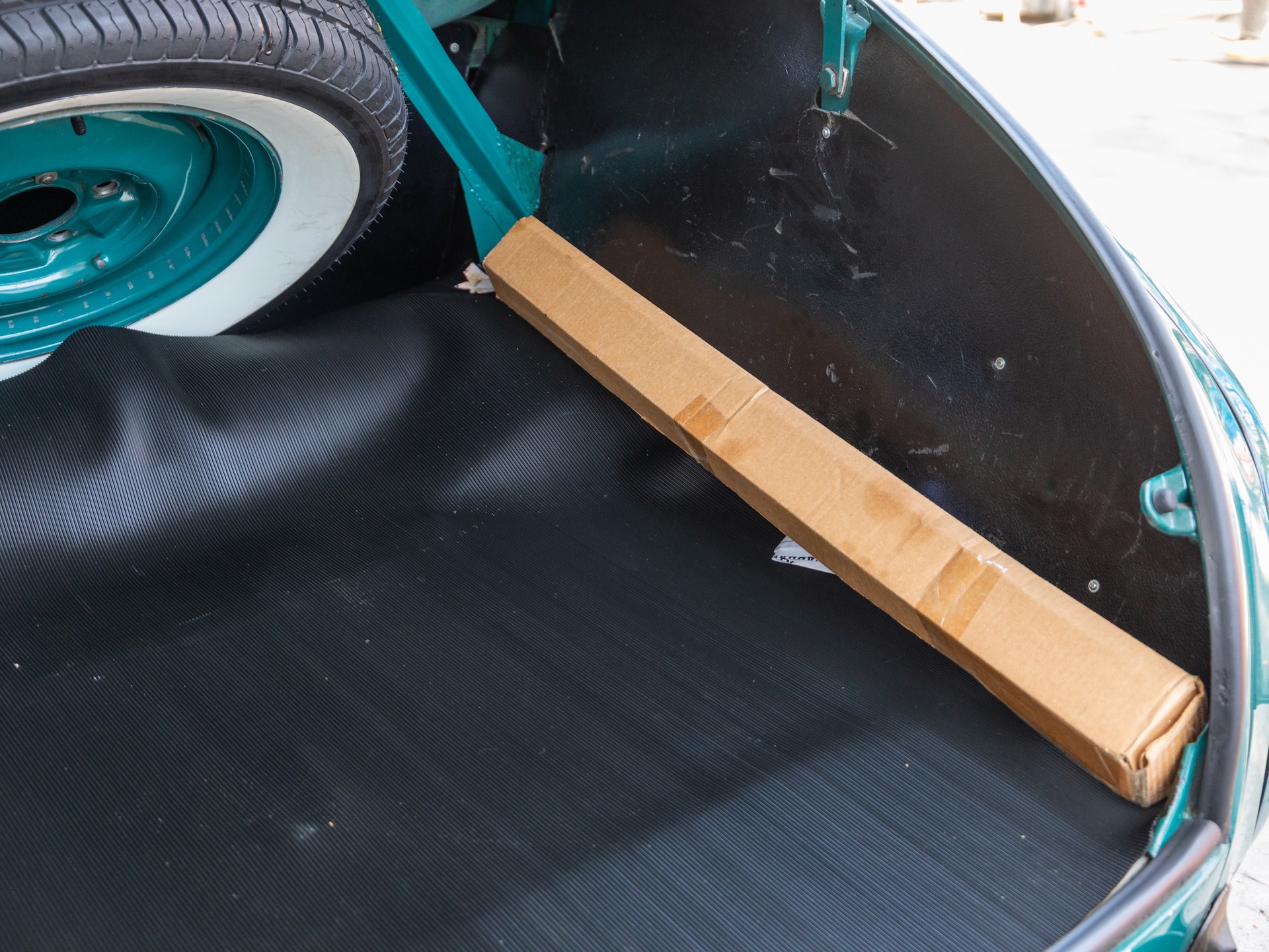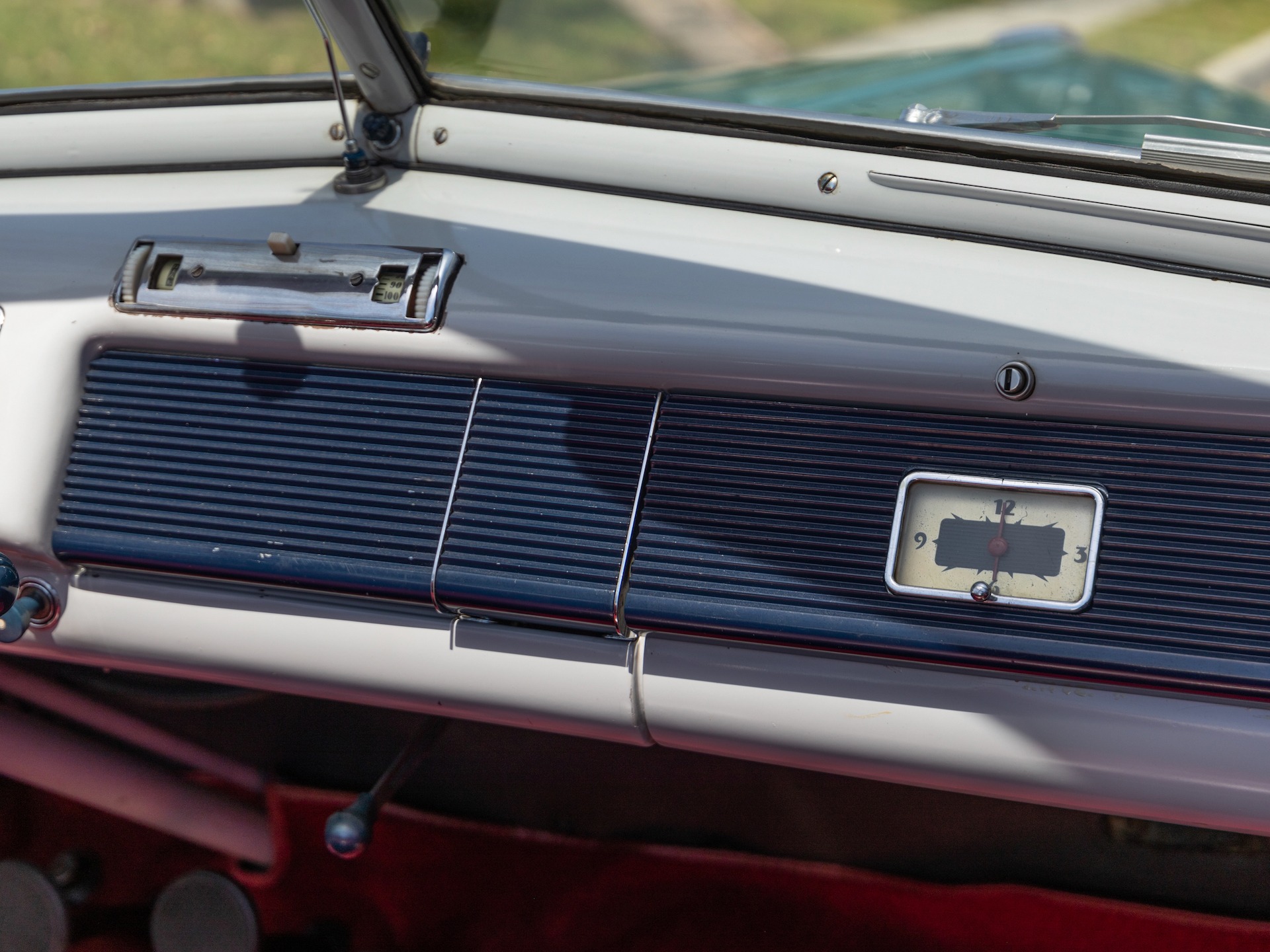 Gorgeous show quality paint and body in 'Surf Blue'. Very straight panels with excellent body gaps throughout. Paint is fully sanded and buffed for a mirror finish. All chrome and stainless was restored at time of restoration. Fender skirts are removable if you prefer that look.
