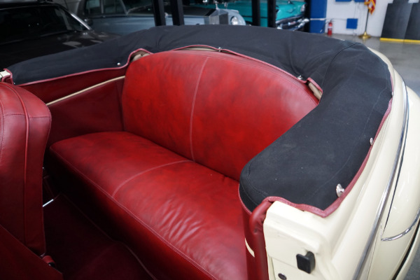 Recently acquired from a prominent collection, this particular car has been absolutely beautifully frame off restored with no expense spared and with extraordinary attention to detail and which is finished in a striking 'Cream' color with a striking 'Red' leather interior and a new convertible power soft top. The car looks absolutely beautiful and has been professionally restored throughout with the whole car in quite exceptional and virtually flawless condition throughout! The 'Black' Power Soft Top with Red Piping is also new as is all the restored chromework. The original spare wheel is in it's rightful storage place in the trunk. The Flathead 239 95HP V8 engine is extremely strong and powerful and this particular car drives magnificently - must be driven to be believed - drives straight as an arrow with no strange road wobbles, shakes or rattles - a truly remarkable daily driver that will give any modern day car a run for it's money!