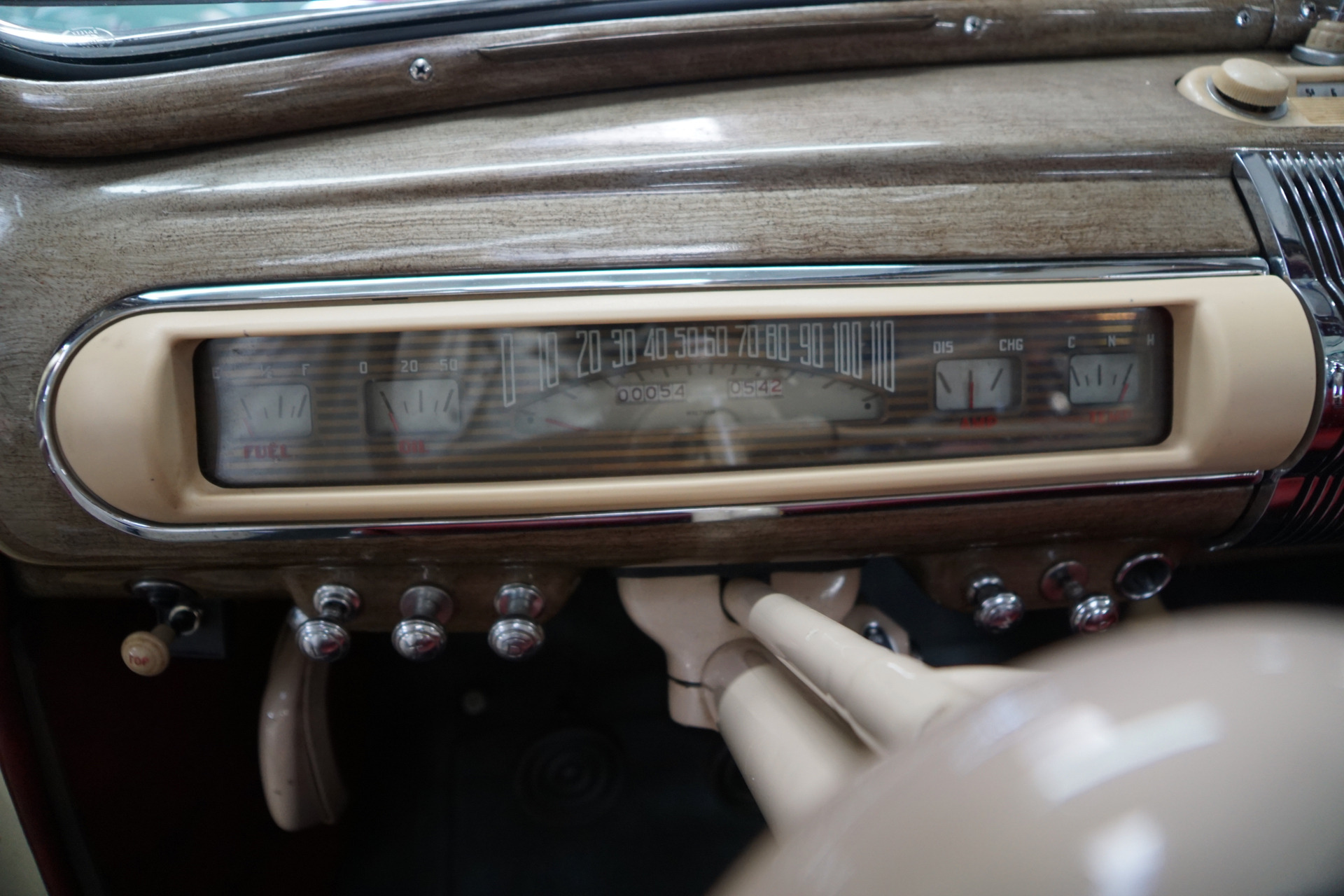 Mercury quickly gained a reputation for performance appropriate to it's name (after the winged messenger God in Greek mythology) with well tuned models being quicker than the V8 Fords and capable of up to 100mph. Mercury bowed on a 116 inch wheelbase, four inches longer than the Ford's and sufficient to give its similar styling a more impressive and striking look. A dashboard with strip type instruments also like Ford's but with Mercury's innovative column mounted gearshift. Models expanded in '41, except for the sedan convertible which was dropped, and were restyled with a 2" longer wheelbase with higher fenders, a divider bar grille and fender top parking lights.