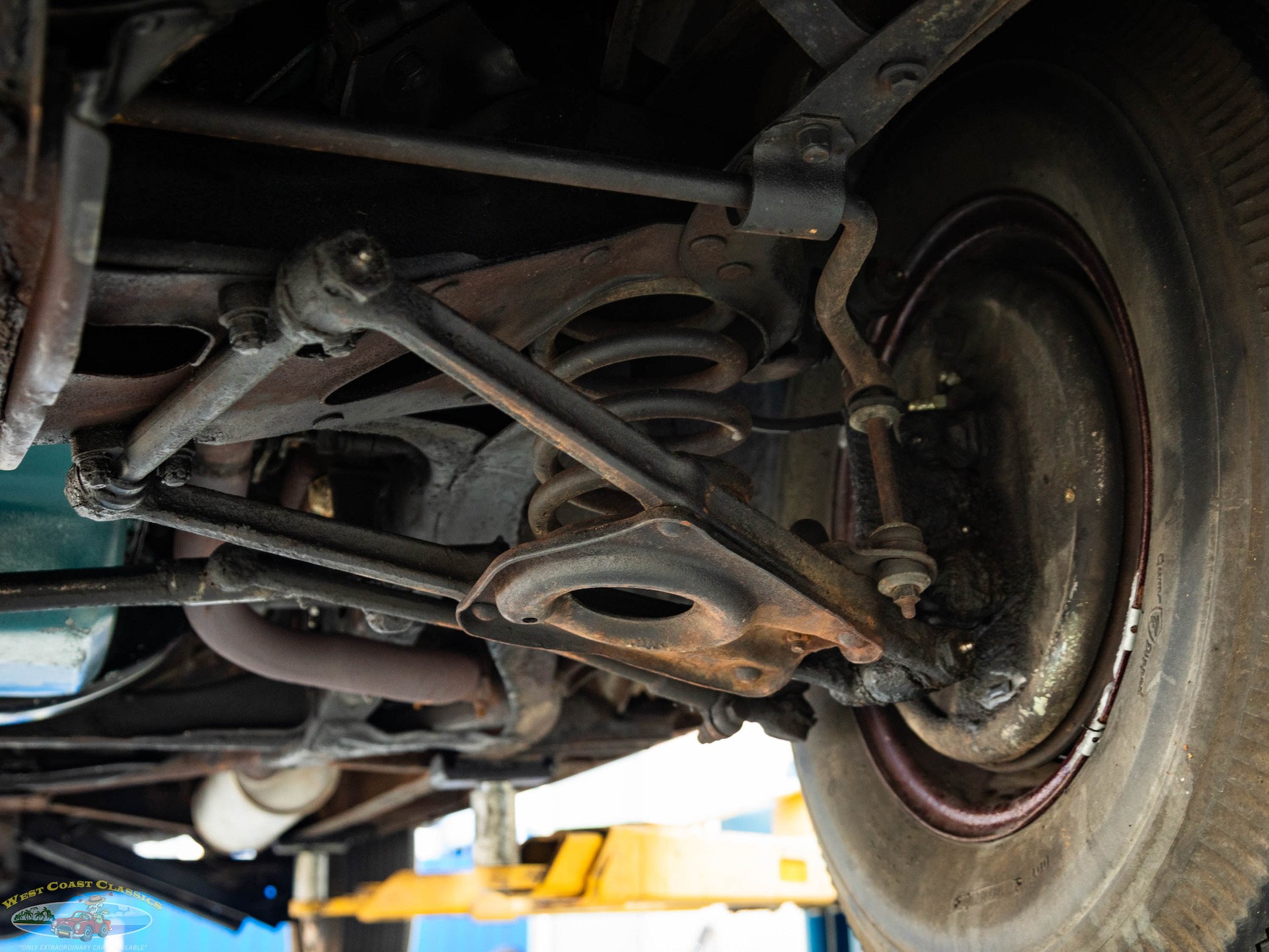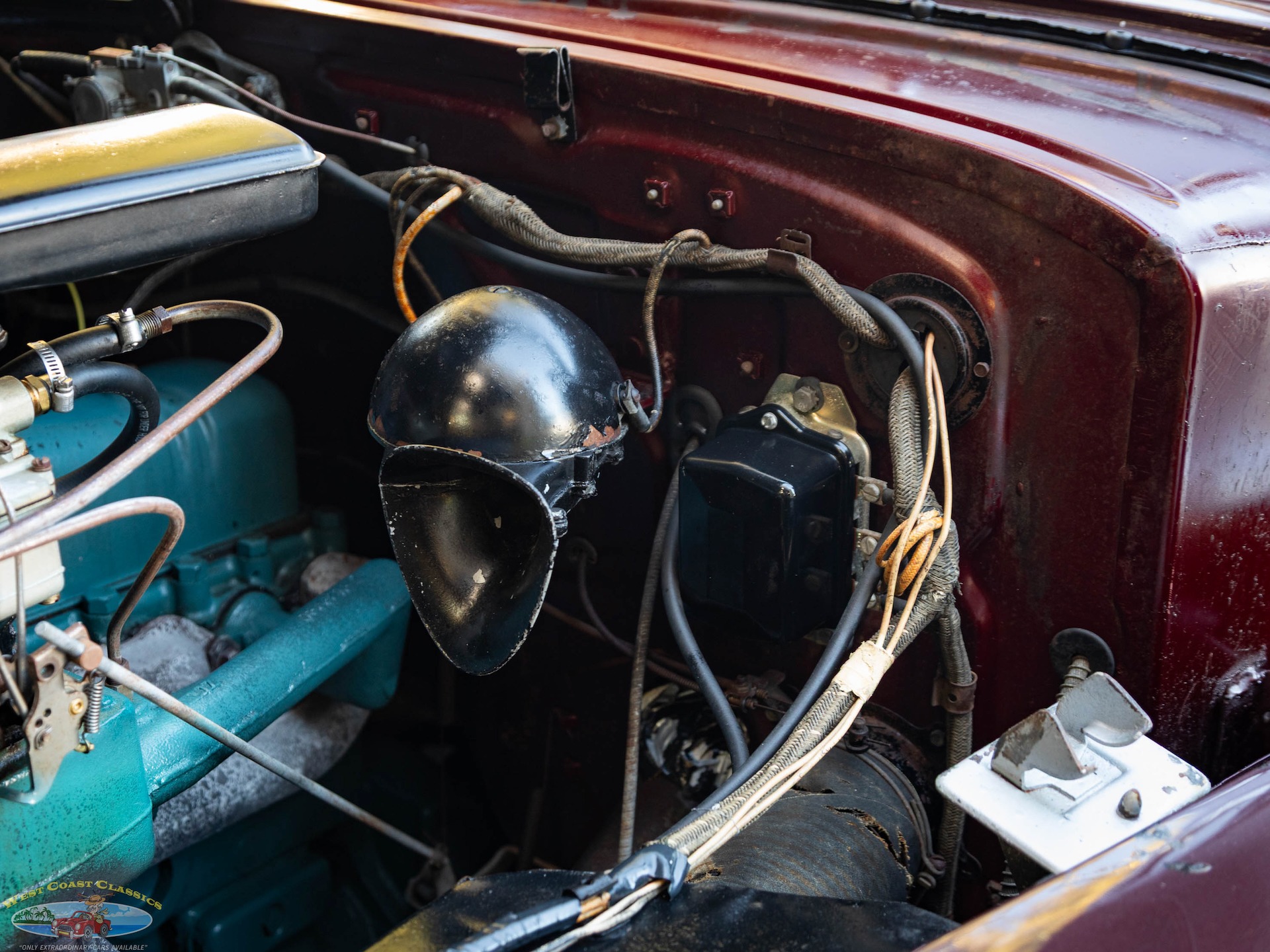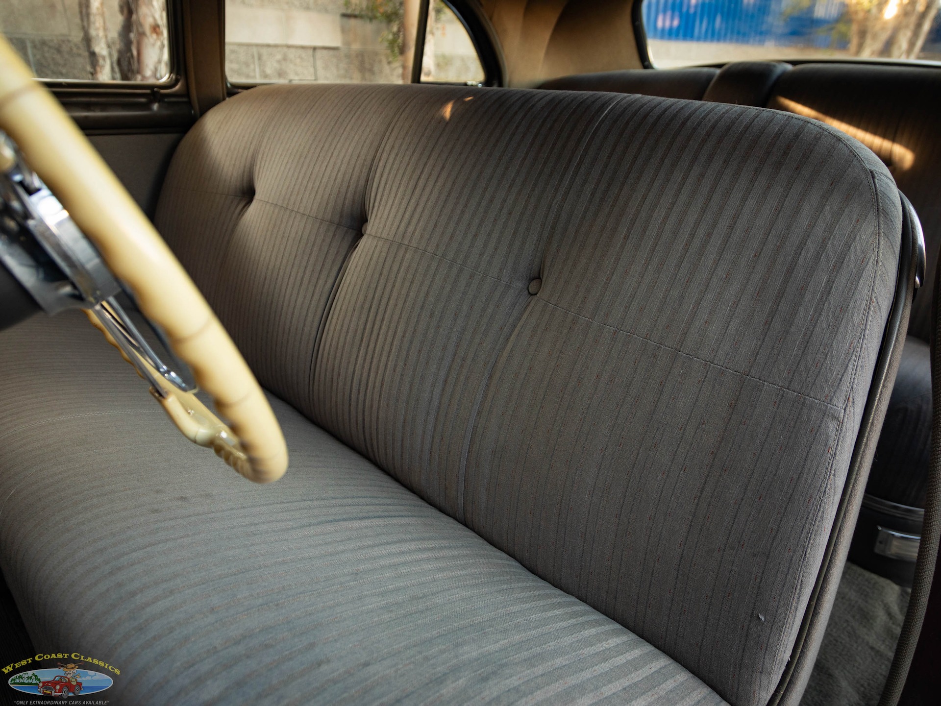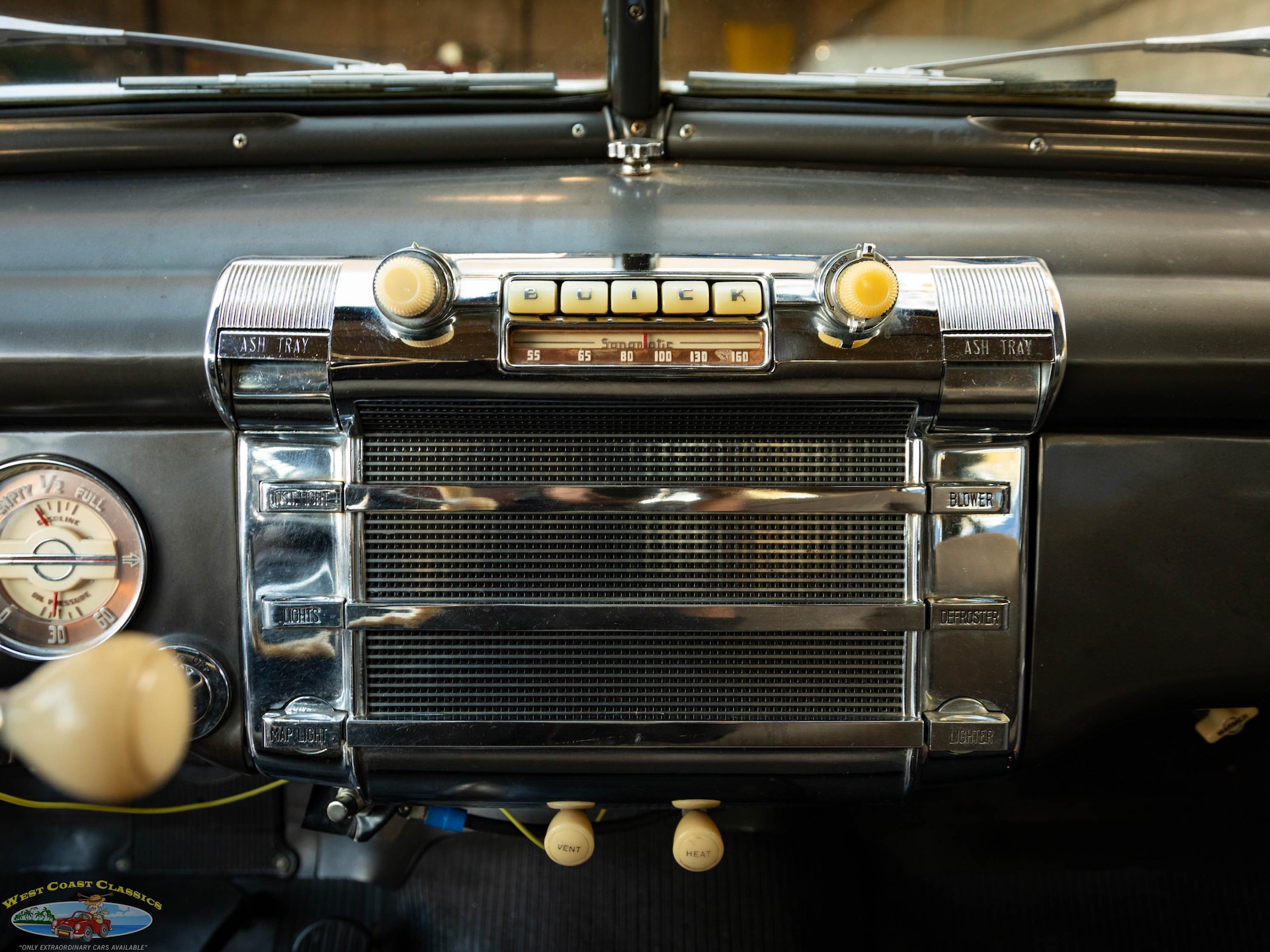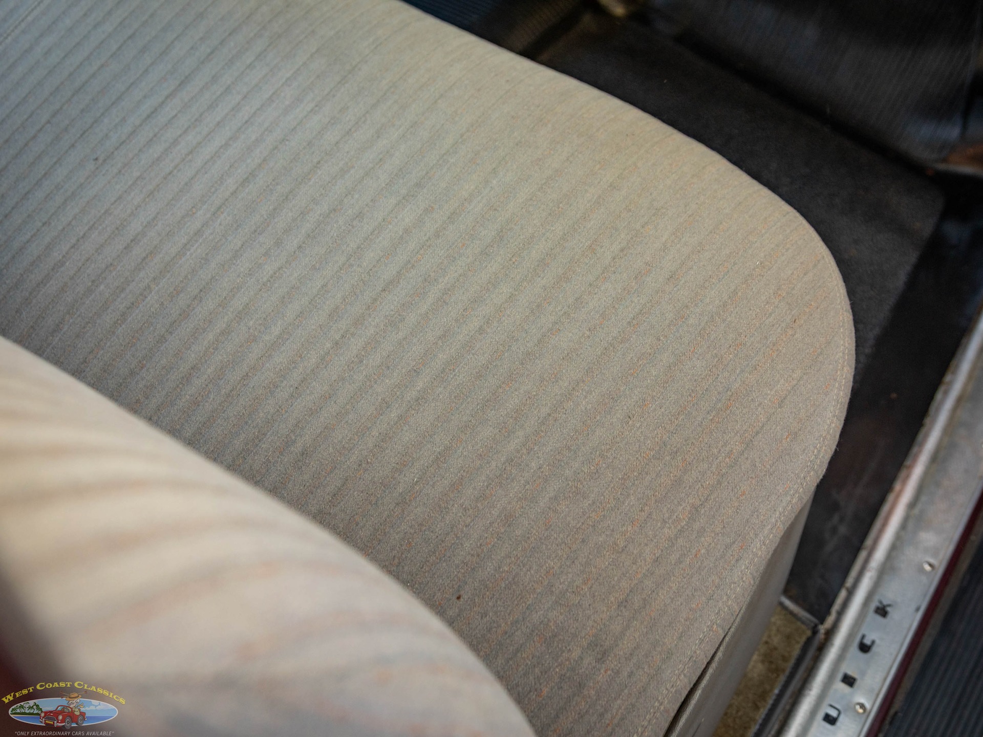Step on the gas pedal and the big 248 cubic inch OHV straight-8 springs to life quickly and easily, immediately settling into an easy idle that sounds muscular but muted. It drives superbly with big Buick torque available at any speed. It wears correct Buick Turquoise engine enamel and following the war, all large-series Buicks used single 2-barrel carburetors, which is what is on the car today. Even the original oil bath air cleaner is still in place.