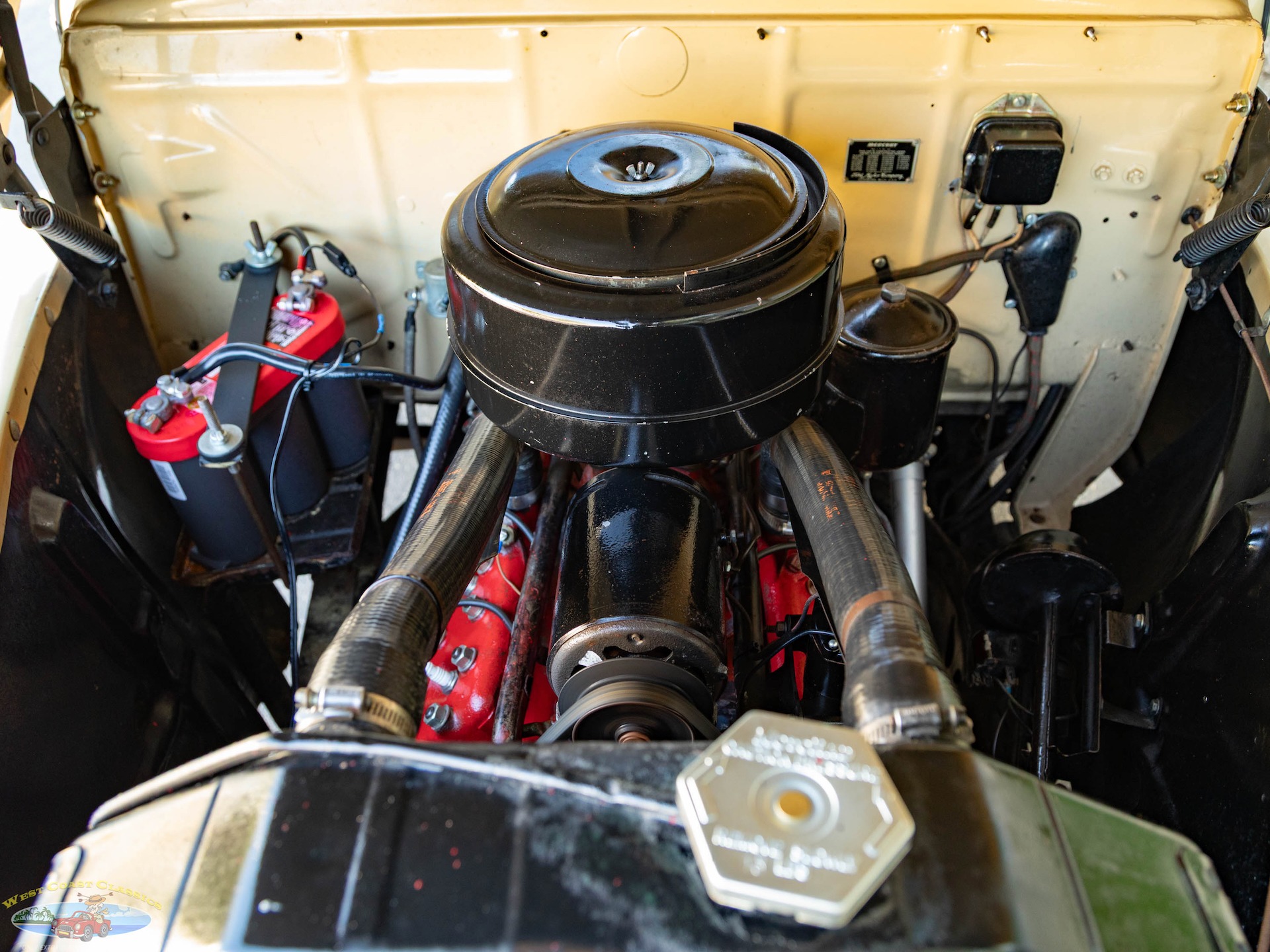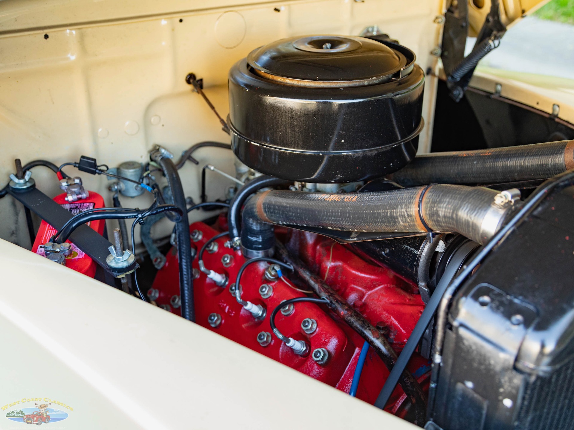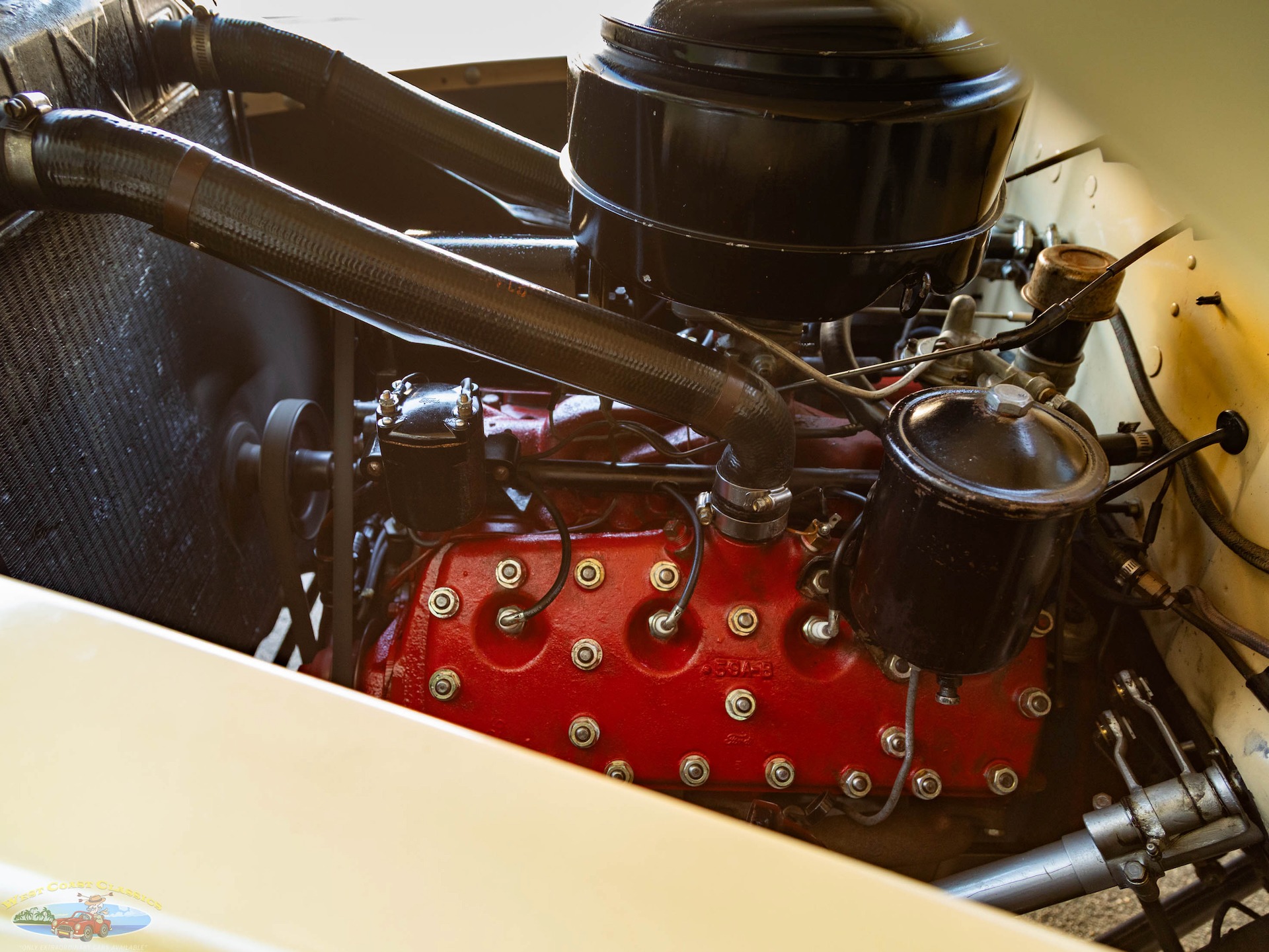 Under the hood, this classic beauty is powered by a robust 239 CI Flathead V-8 engine, renowned for its reliability and performance. The engine is equipped with an oil-bath air cleaner and oil filter, ensuring optimal performance and longevity. Power is delivered to the rear wheels through a column-shifted 3-speed manual transmission, providing an authentic driving experience that harks back to the golden age of motoring.