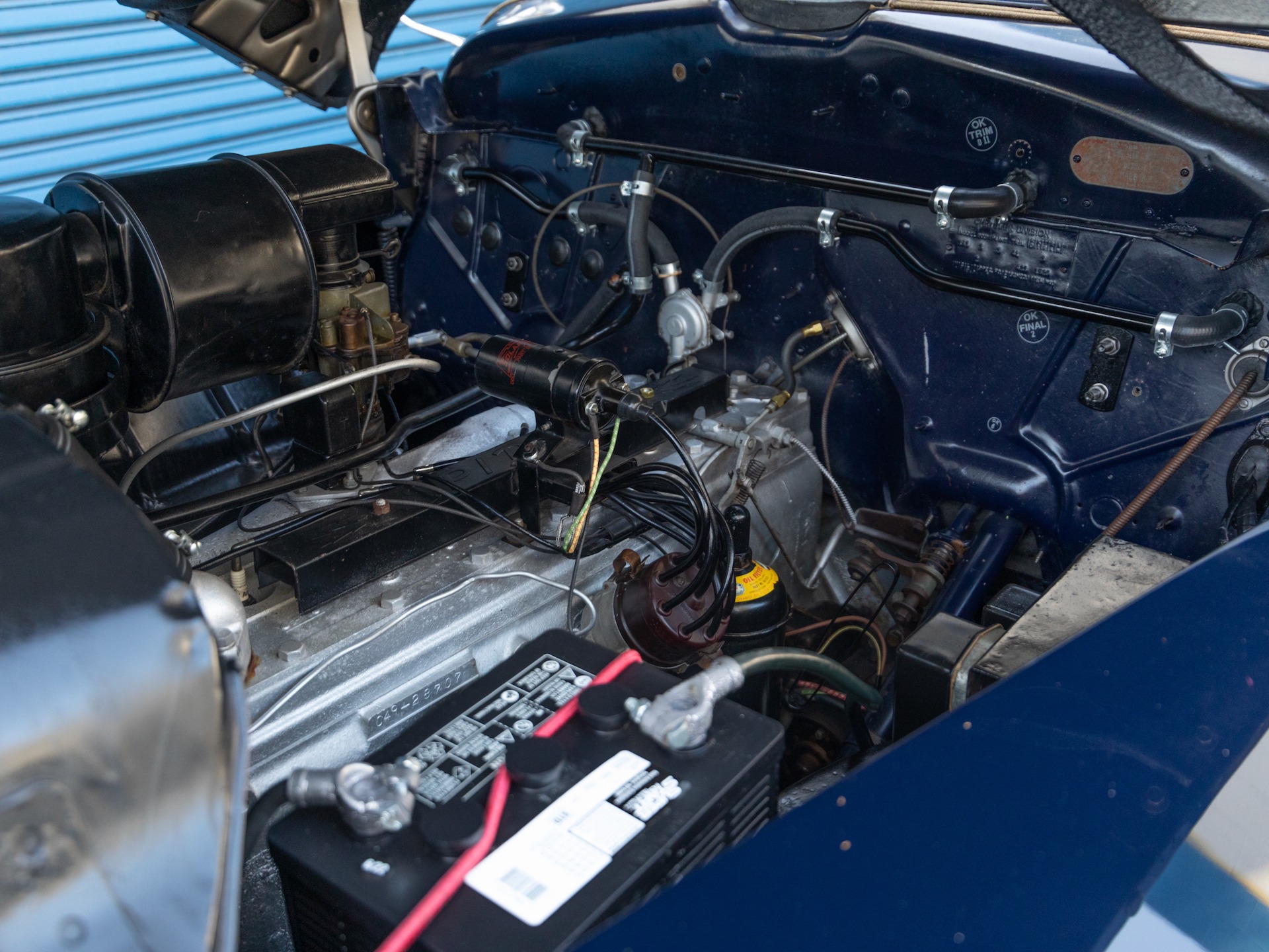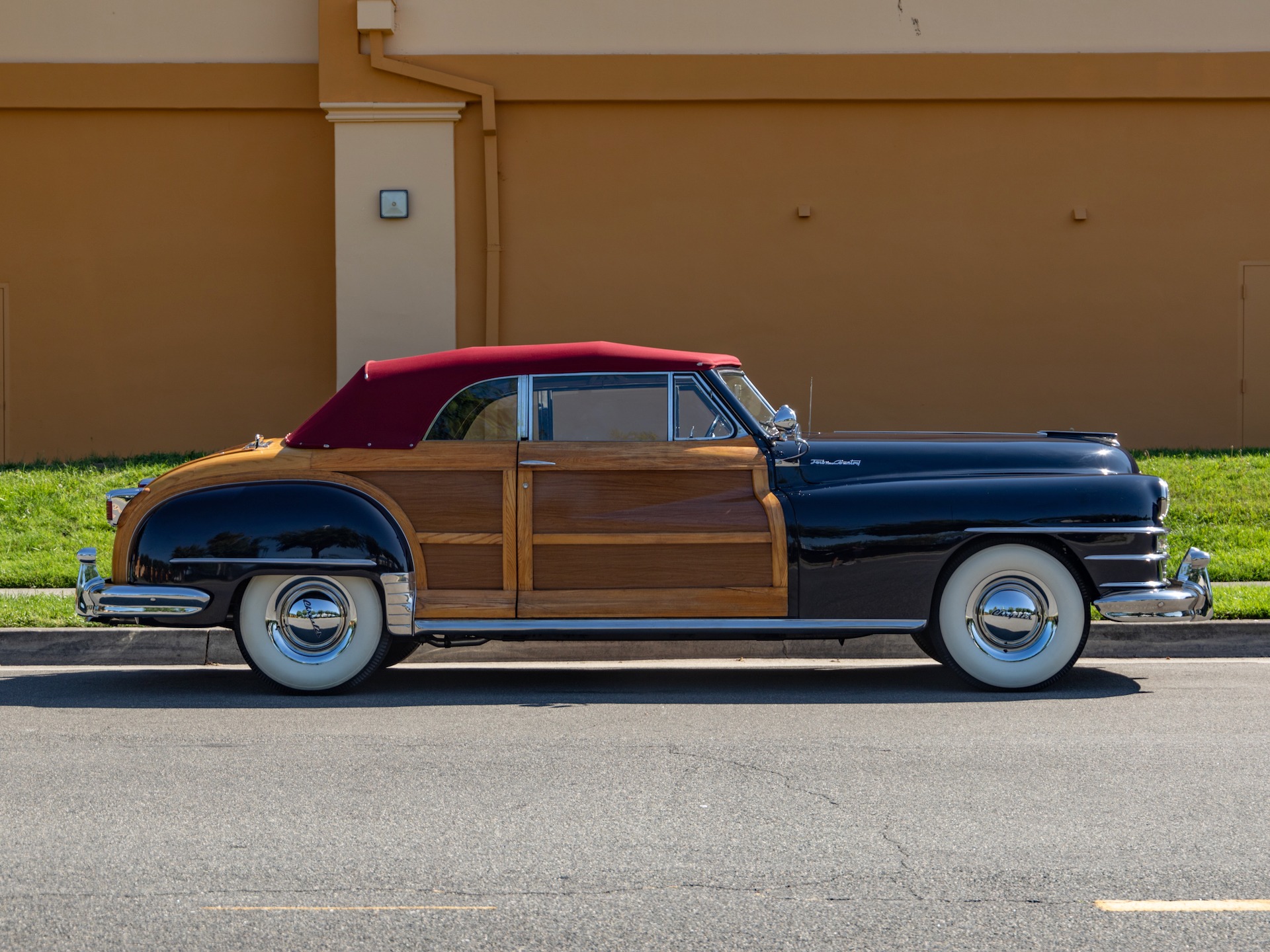 This handsome 1948 Town and Country Convertible is presented in perhaps the ideal color combination, as Chryslers 'Newport Blue' is the perfect compliment to the richness of the varnished timbers, which we believe to be original and which are fully restored. The car drives as good as it looks with the semiautomatic transmission functioning smoothly and always shifting predictably at 28 mph. Eligible for numerous concours events and now enjoying Full Classic status with the CCCA, this is a wonderfully versatile and elegant Chrysler an American luxury car worthy of the finest collections and the most memorable drives.