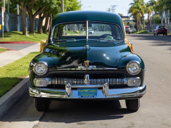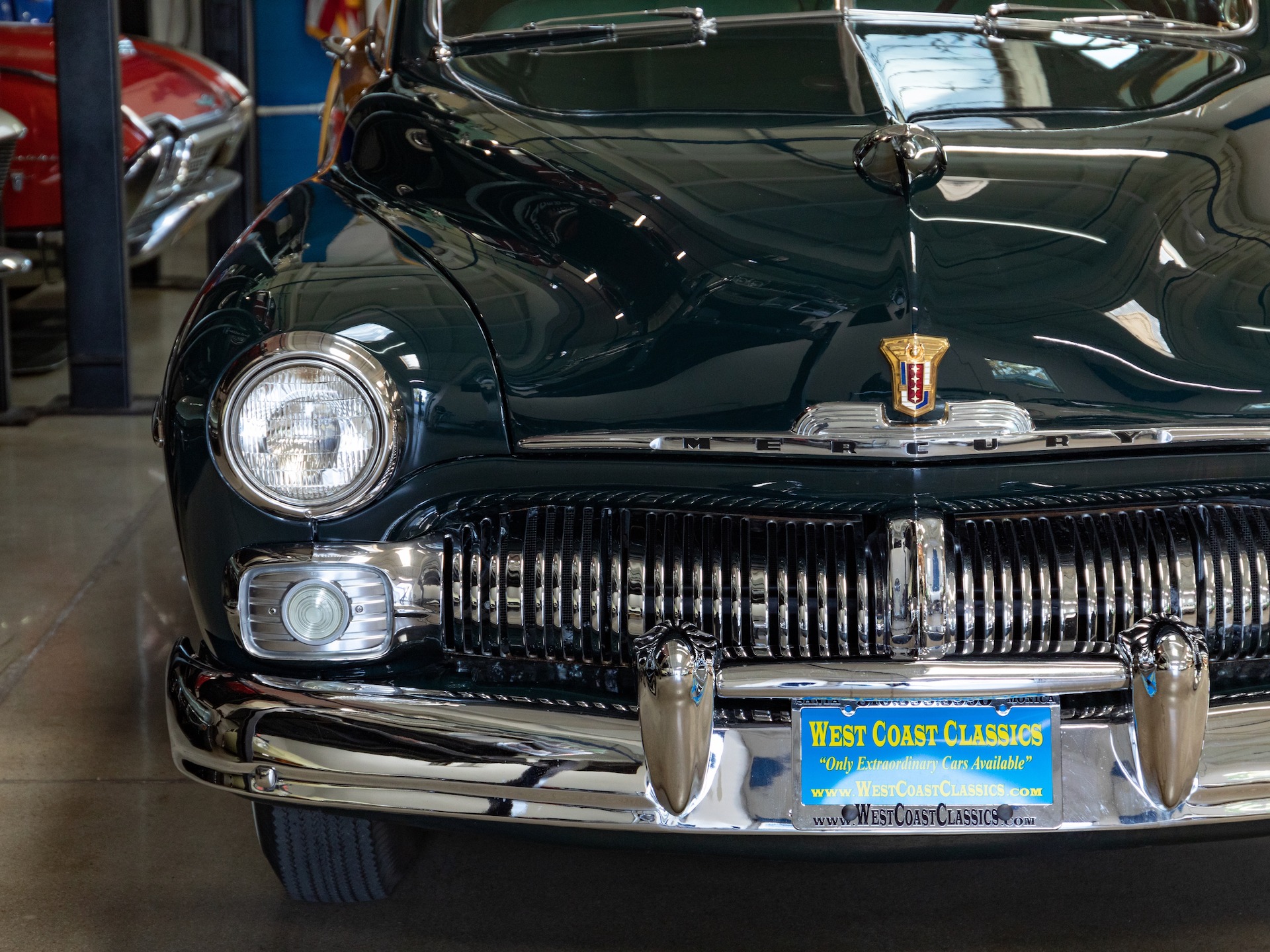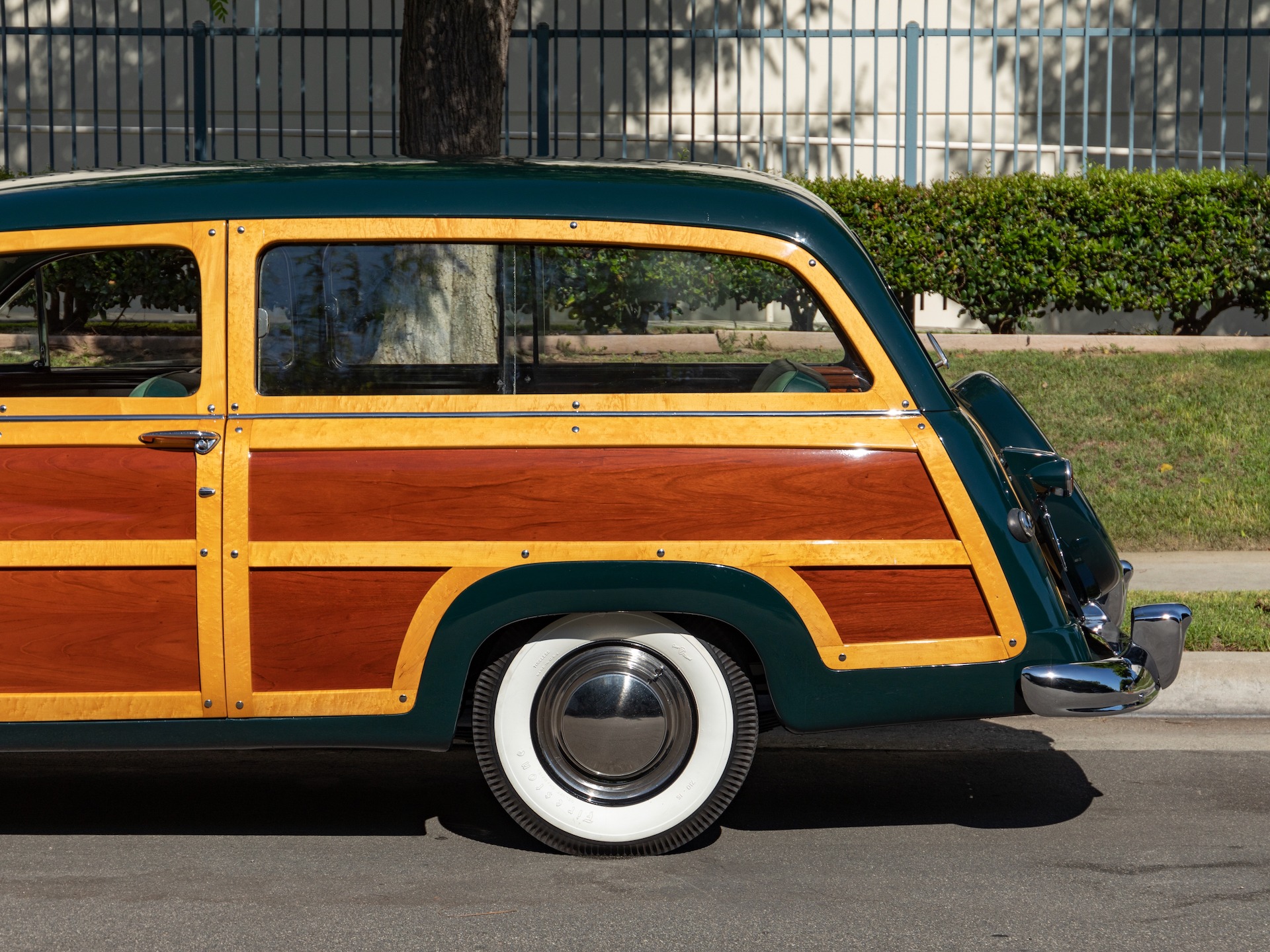 This 1950 Mercury is finished in the very striking 'Everglade Green' color with wood body moldings over a matching 'Light Green' interior. Power comes from a 255ci flathead V8 paired with a three-speed manual transmission, and additional equipment includes a wooden split tailgate, sliding rear side windows, as well as a push-button AM radio and a Merco-Therm ventilation and heating system. 15steel wheels with chrome hubcaps and trim rings are mounted with 225/75 Coker Classic wide-whitewall tires. A covered spare is mounted to the split tailgate, and braking is provided by four-wheel drums.