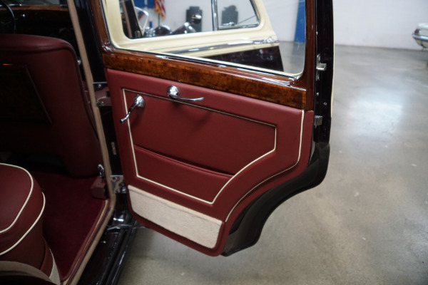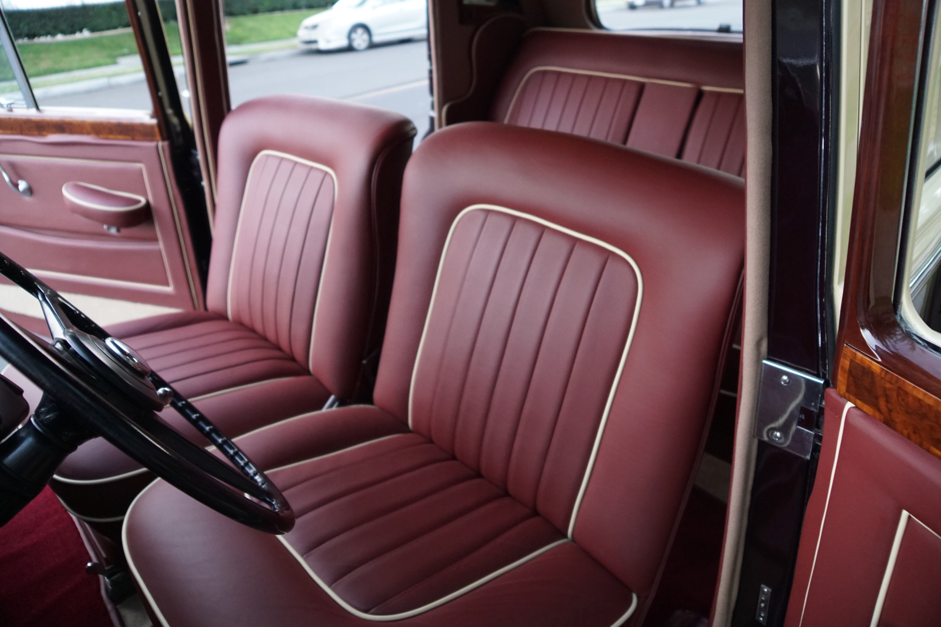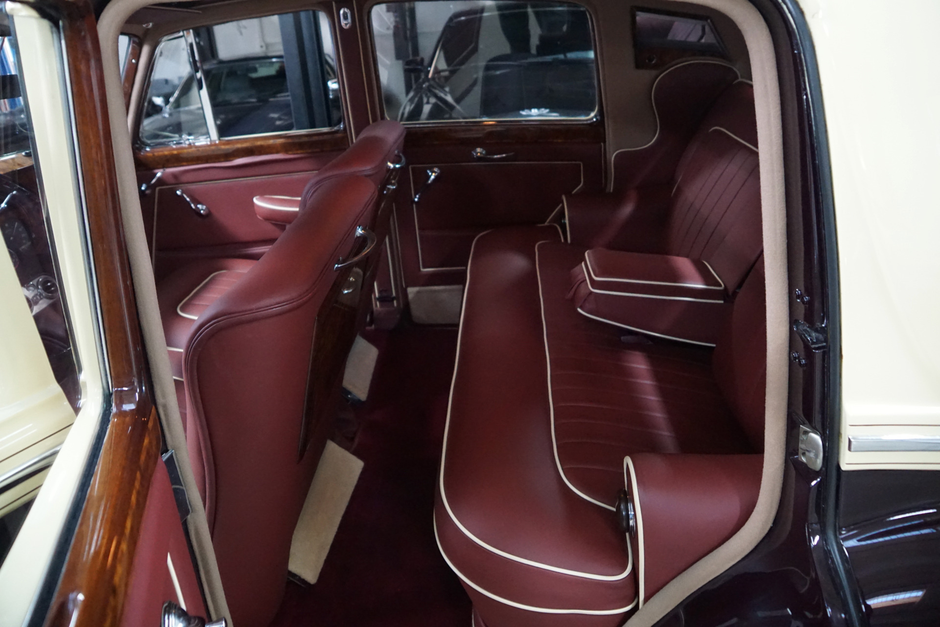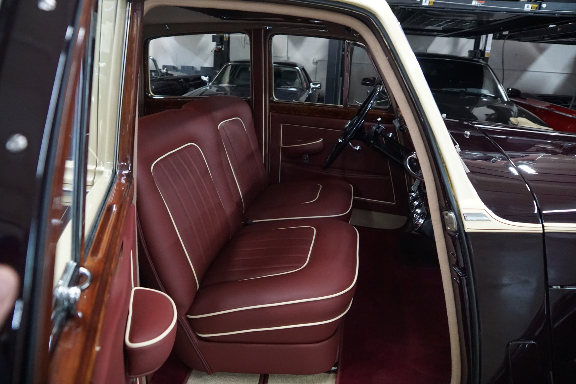 This particular example is strikingly finished in a 'Royal Garnet over Cream' two-tone color complete with hand painted pin stripes which is matched to a beautiful and also extraordinarily condition full 'Claret with White Piping' leather interior and carpeting. The car has an original Mohair headliner and it's original factory sliding sunroof. This car was frame up restored with no expense spared in recent years and has been stored in a climate controlled facility by it's southern California collector/owner since the restoration with the two-tone paint, the leather & wood interior, all the chrome work including the original and very rare Bentley grille and front and rear bumpers, all restored to obviously concours standards and this car is very likely one of the finest R-Type examples in existence anywhere today. The 5-digit odometer shows just over 22k miles and the car boasts working modern day air conditioning and the voltage has been upgraded to 12 volts.