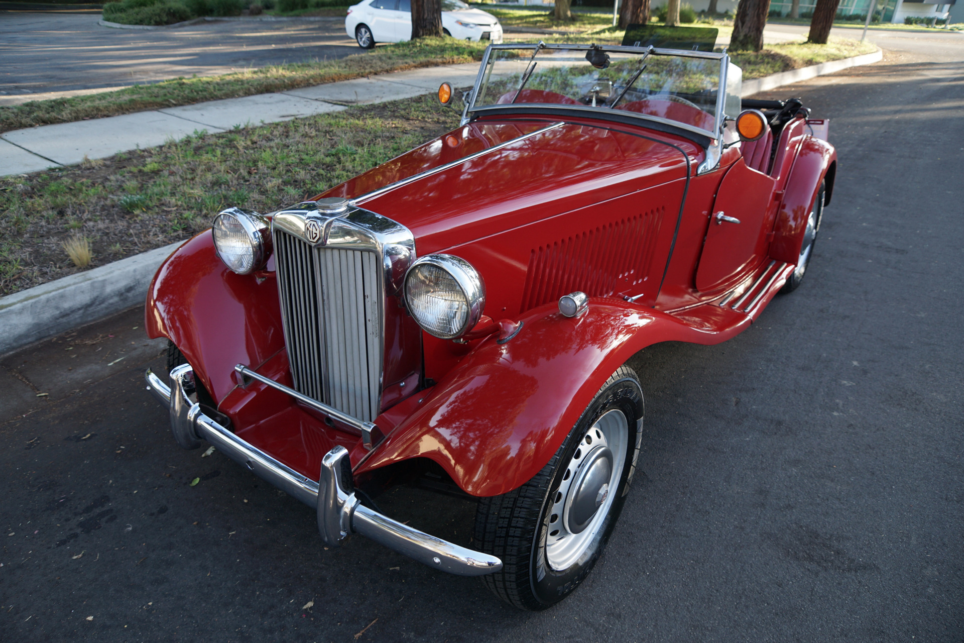 West Coast Classics are proud to present an absolutely exceptional example of this original southern California owner LHD 1953 MG TD Roadster with its original matching #'s 1250cc 4 cylinder engine and 4 speed transmission and presented in it's original 'Red' color paint with a matching 'Red' interior and a rare all stock example with one repaint and a new soft top and boasting original front and rear windows, original Banjo style celluloid steering wheel, factory heater, crank, owner's manual and spare wheel!
