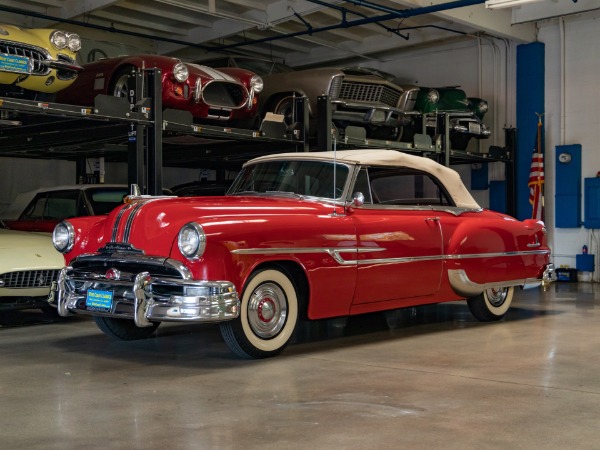West Coast Classics are proud to present an absolutely exceptional and completely rust free example of this recently both mechanically and cosmetically restored, and with only very few miles since being restored, of a mostly all original 1953 Pontiac Chieftan and very rare 268 8 cylinder 2 Door Deluxe Convertible in a beautiful and extraordinarily striking repaint in period correct 'Sant Fe Red' color and with an absolutely beautiful all new 'Red & Gray' interior and with a Tan power soft top!