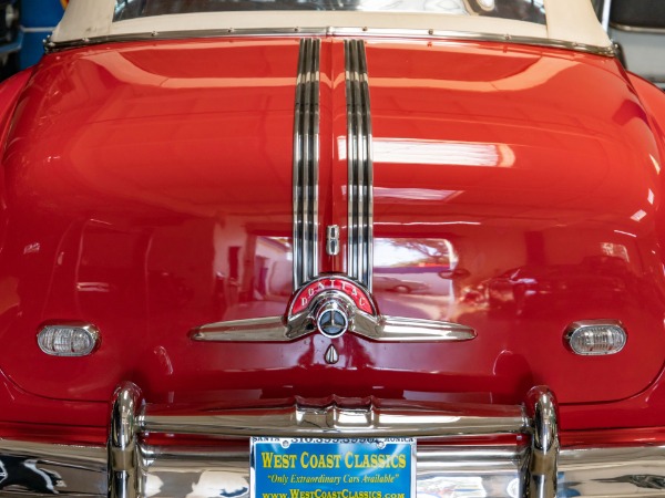 Recently purchased from the renown 'Rockhound collection', the car has very good gaps and flush fitting doors, the hood and trunk and the floor boards, rockers and all the typical rust-prone areas are original, solid and rust-free - obviously an always cherished 'Garage Queen' since new. All the original chrome is beautiful and the car boasts its original spare wheel in the trunk. A largely original car, this 2 Door Chieftain Deluxe Convertible has been repainted in authentic period correct 'Santa Fe Red', which harmonizes nicely with the reupholstered Red and Gray seats. The power-operated convertible top is light tan and comes with a matching boot cover for when it is in the down position. Equipped with the smooth and powerful 268 eight-cylinder engine that is backed by a Hydra-Matic automatic transmission. The engine and its compartment are clean and correctly detailed. Other benefits that add to one's driving pleasure are the original AM radio, defroster, and pull-to-initiate overdrive system which allows for highway speeds to be reached.