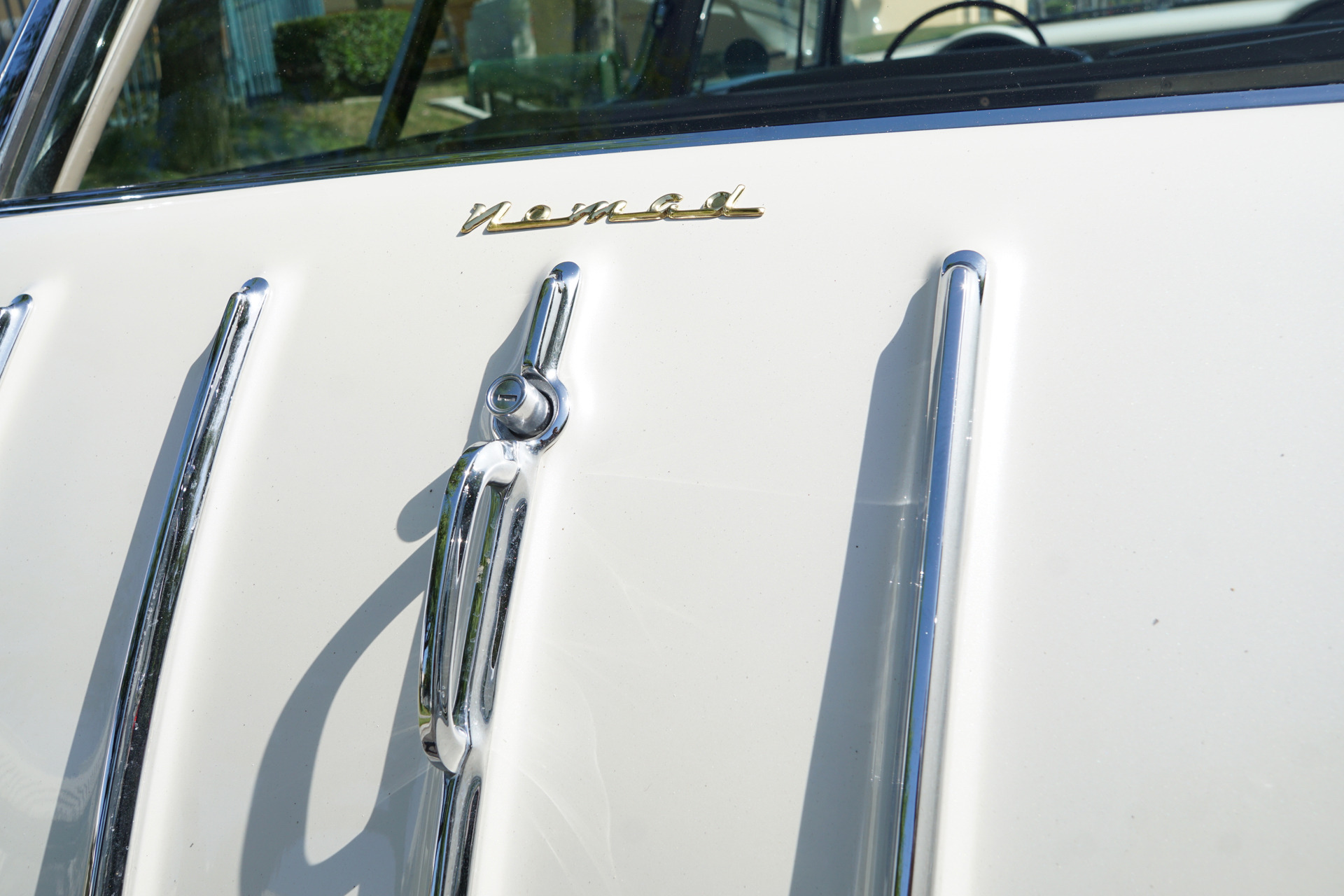The 1955 Chevrolet Nomad Station Wagon was at a list price of over $2,500; the most expensive car of the entire Chevrolet line up in 1955 apart from the Corvette and for good reason! The 1955-57 Nomad wagon is the most probably the most iconic wagon ever built and certainly a legend amongst surfing enthusiasts and fifties classic car collectors all over the world! The two door Nomad was one of Harley Earls 'Dream Cars' and more reminiscent of a two door hardtop than any other station wagon, with the roof design borrowed from a 1954 Motorama show car, opened up rear wheels wells and a striped tailgate in chrome! GM insisted the Nomad was affiliated with the top-of-the-line Bel-Air models in order to attract more attention to it, as if that was really necessary! GM also had Chevrolet share the body with Pontiac which marketed their car as the Pontiac Safari. Nomads therefore, like Bel Air's, came loaded with chrome, carpet and full wheel covers and a V8 engine option! The new 265 V8 with a modern overhead valve high compression engine was so good that it remained in production for decades to come. The stylish production run only lasted for three years with GM ending this iconic body style in 1957, primarily due to the vehicles exorbitantly high prices and consequently low sales and introduced a new body-style in 1958, ending the production of what has been commonly referred to as the "Prettiest wagon ever!" Only 8,530 Nomads were built in 1955; 8,103 Nomads were built in 1956 and 6,534 in 1957; their rarity and strong demand ensures continued appreciation over the years ahead.