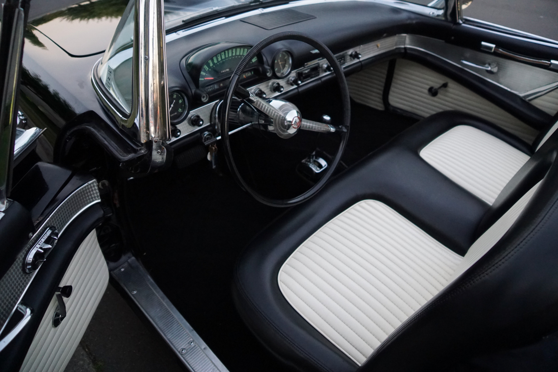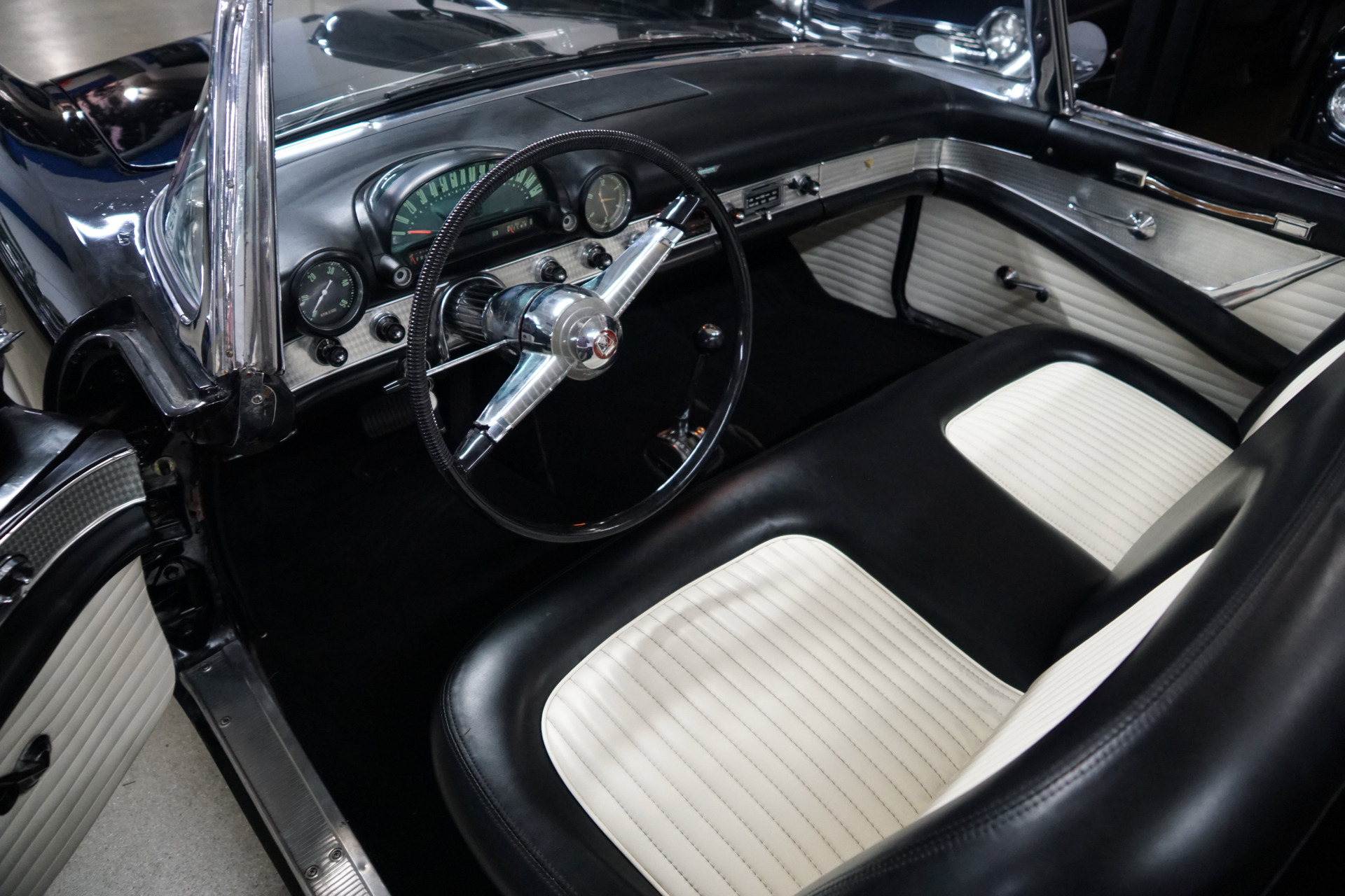 This is a great opportunity to own a great daily driving 1955 Thunderbird with the 292 4BBL V8 engine and loaded with power front disc brakes, power steering, power seat, AM radio, skirts, heater & defroster and two tops in the most striking and desirable of original factory color combinations!