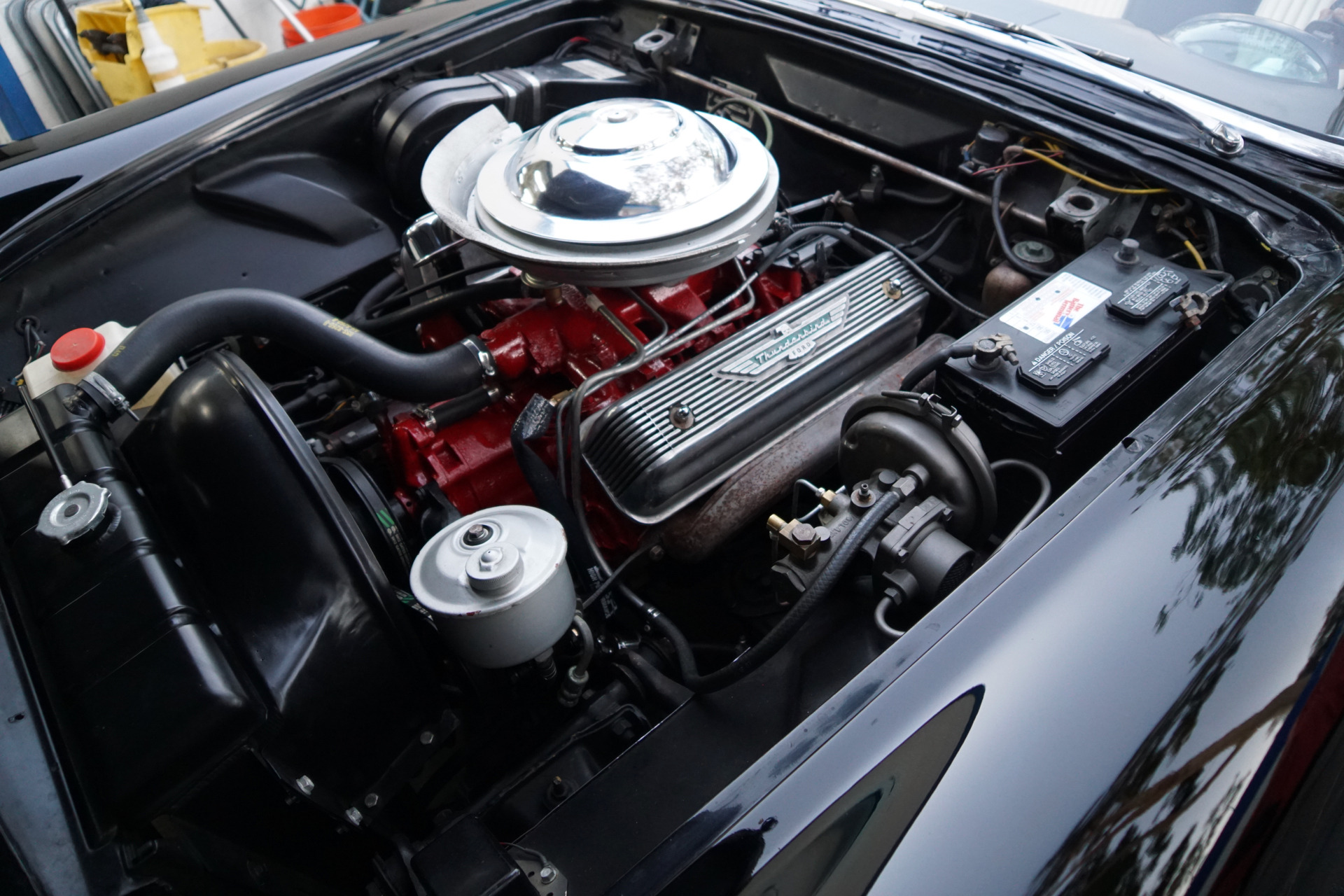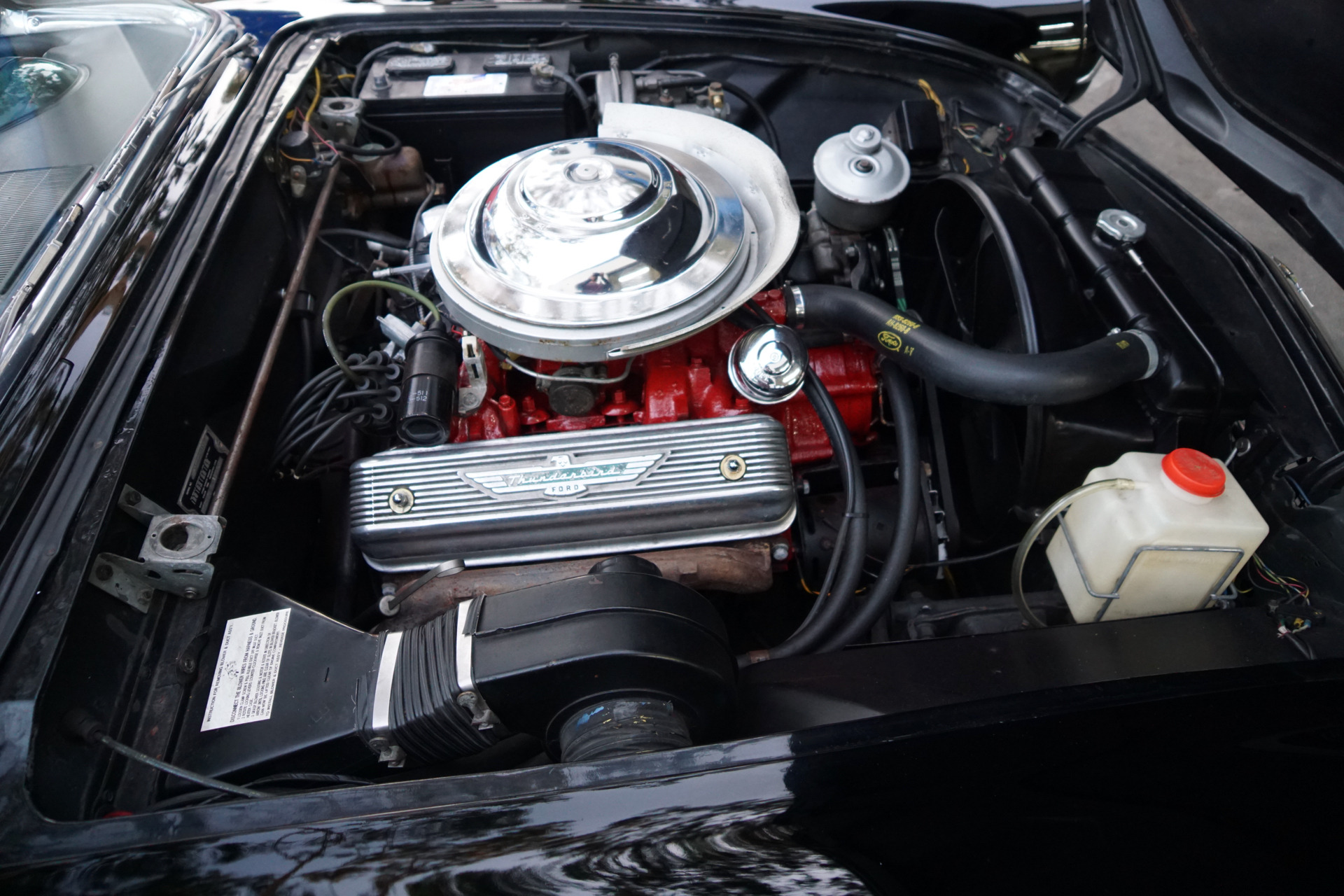 This particular example was recently restored by its previous owner in it's original factory 'Raven Black' (color code A) color paint with matching original 'Black & White' (trim code A) interior and new chrome with the floor boards, trunk and all the typical rust-prone areas solid and rust-free and the car has it's original factory matching color hard top and 292 4V V8 engine which has been reportedly rebuilt and which is obviously therefore extremely strong and powerful and sounds magnificent!