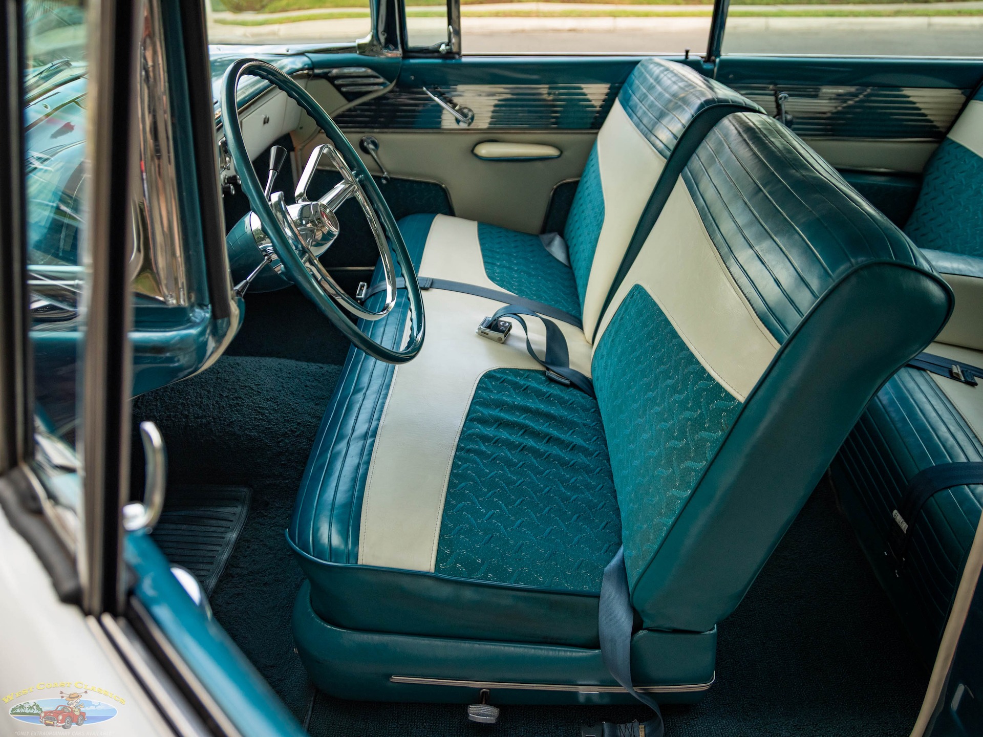 The Mercury Montclair was to supersede the Monterey as the top-of-the-line Mercury model and was first introduced in 1954 and would continue being a stand out amongst early '50's cars for their exceptional styling and sound engineering. They offered a lot of new features and upgrades which were introduced to distinguish the new '56 models such as a 12 volt electrical system and an array of new options that could now be supported by the the higher voltage. New styling features included Mercury's best trim and a revised bumper and grille with the vertical bars of the lower section appearing to show above the center bar, as well as a newly designed front bumper with a blunt end, as opposed to the bullet style point on the '55 Mercury. The Mercury name in block letters was moved from the hood to the center bumper bar and on the hood a large 'M' emblem was used as part of the 'Big M' marketing theme most notably with the introduction of the larger V8's with more power. Hooded headlights and and a jet style hood ornament continued. Body side trim was changed to a full length lightning bolt style piece on all but the wagons.