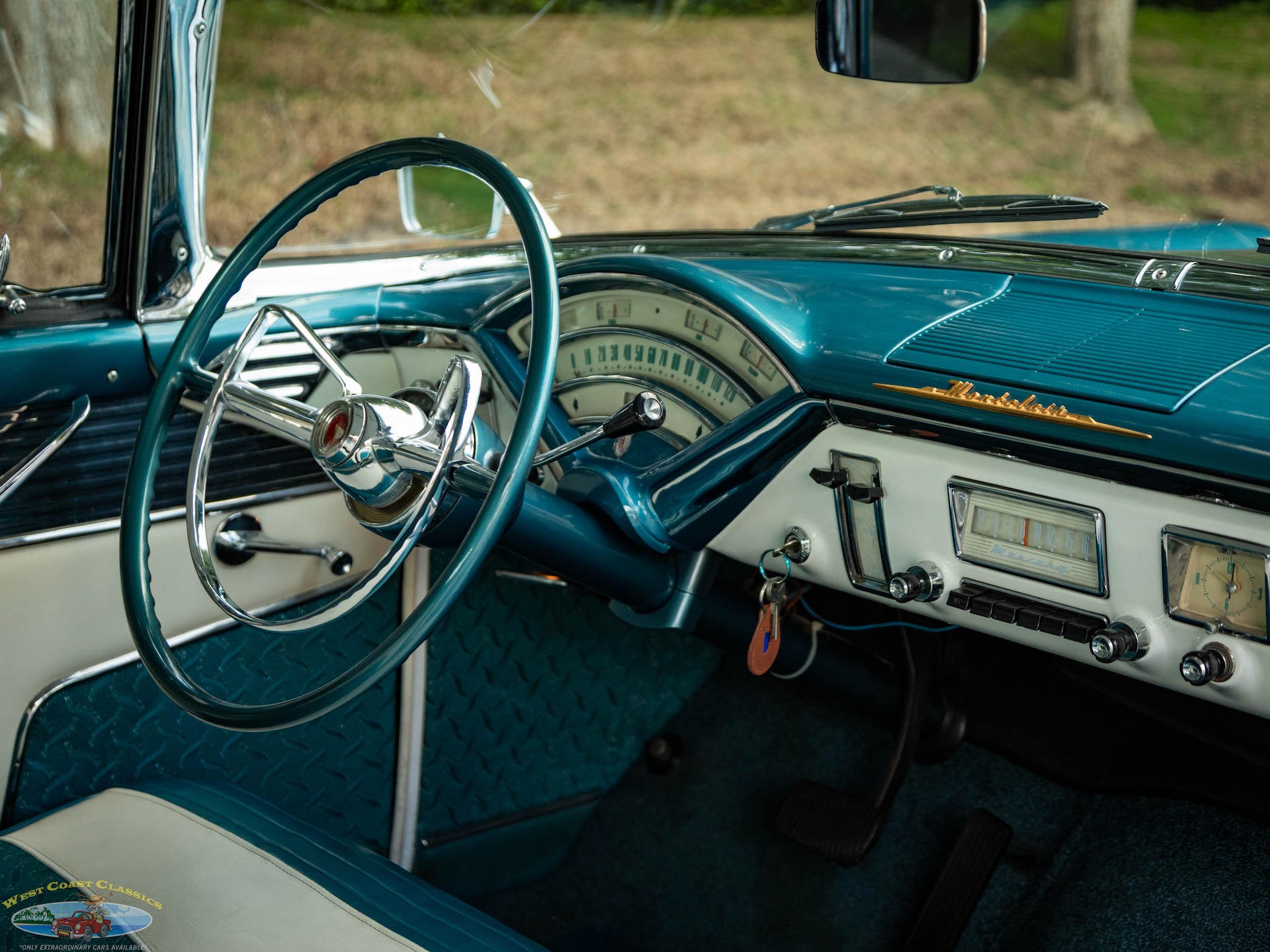 This particular example is firstly very original and honest with beautifully razor straight sheet metal with no signs or history of any accidents or rust ever and with a solid undercoated and rust free undercarriage. The car has a beautiful and obviously very professionally restored in its striking two-tone Blue color paint scheme and has a beautiful matching two tone vinyl correctly restored with correct original material interior including piping etc interior and with all its original factory instrumentation intact including the original Mercury 'AM' signal seeking radio, all of which are is in quite exceptional and original specification condition throughout. All the chrome has been re-chromed and the car's original Power Pack upgraded version of the 292 V8 engine and the transmission was reportedly rebuilt at the time of the restoration.