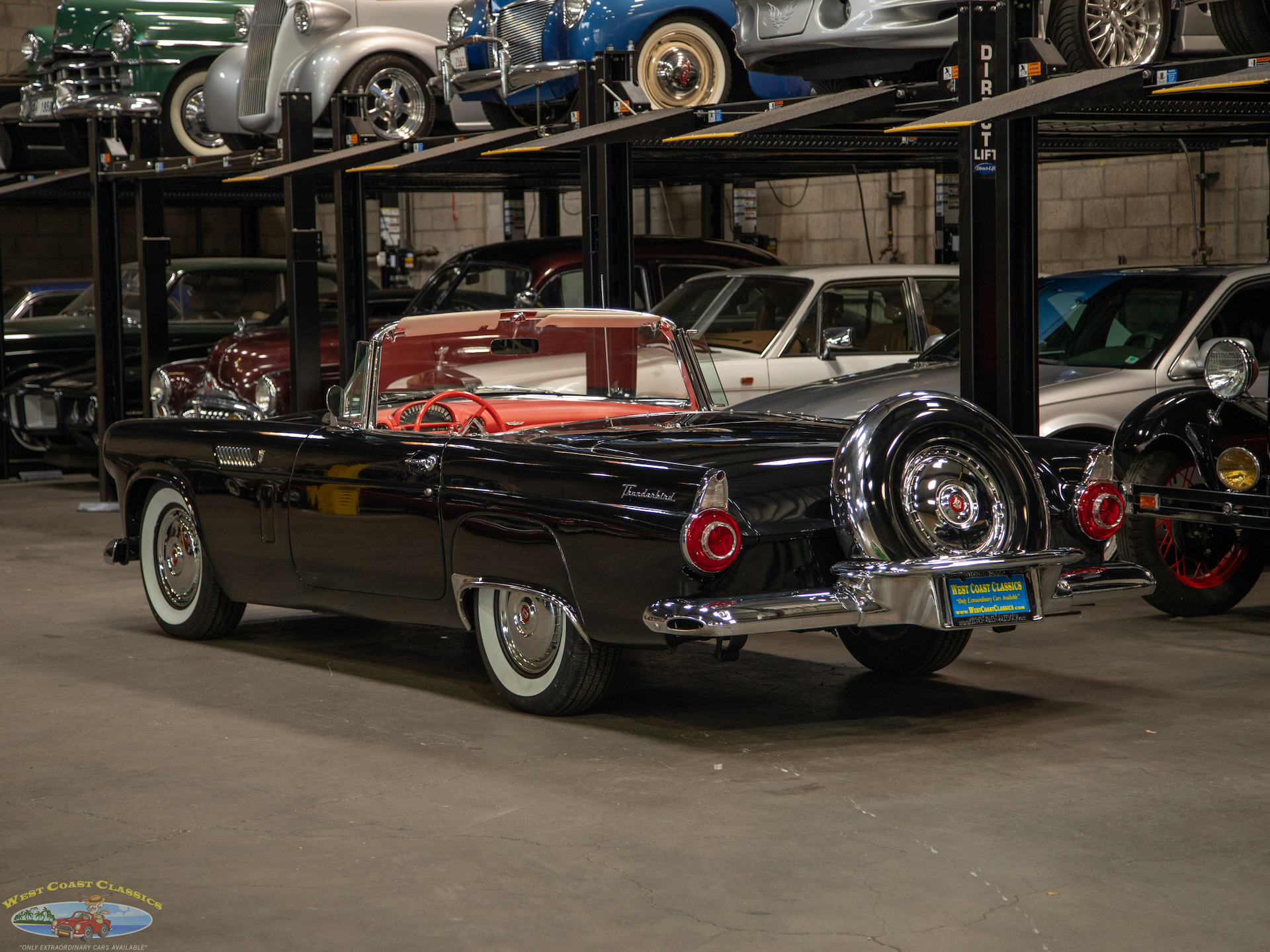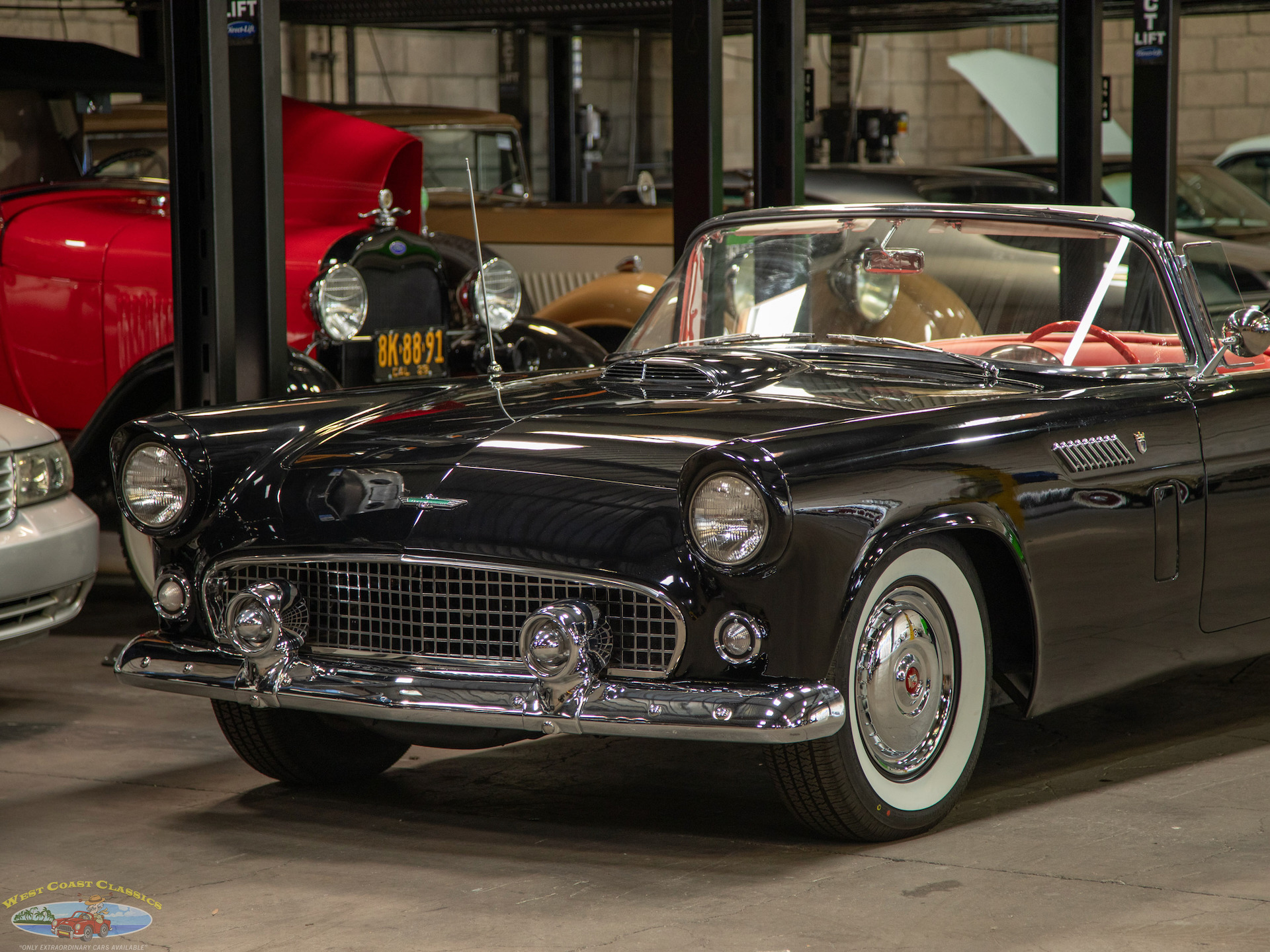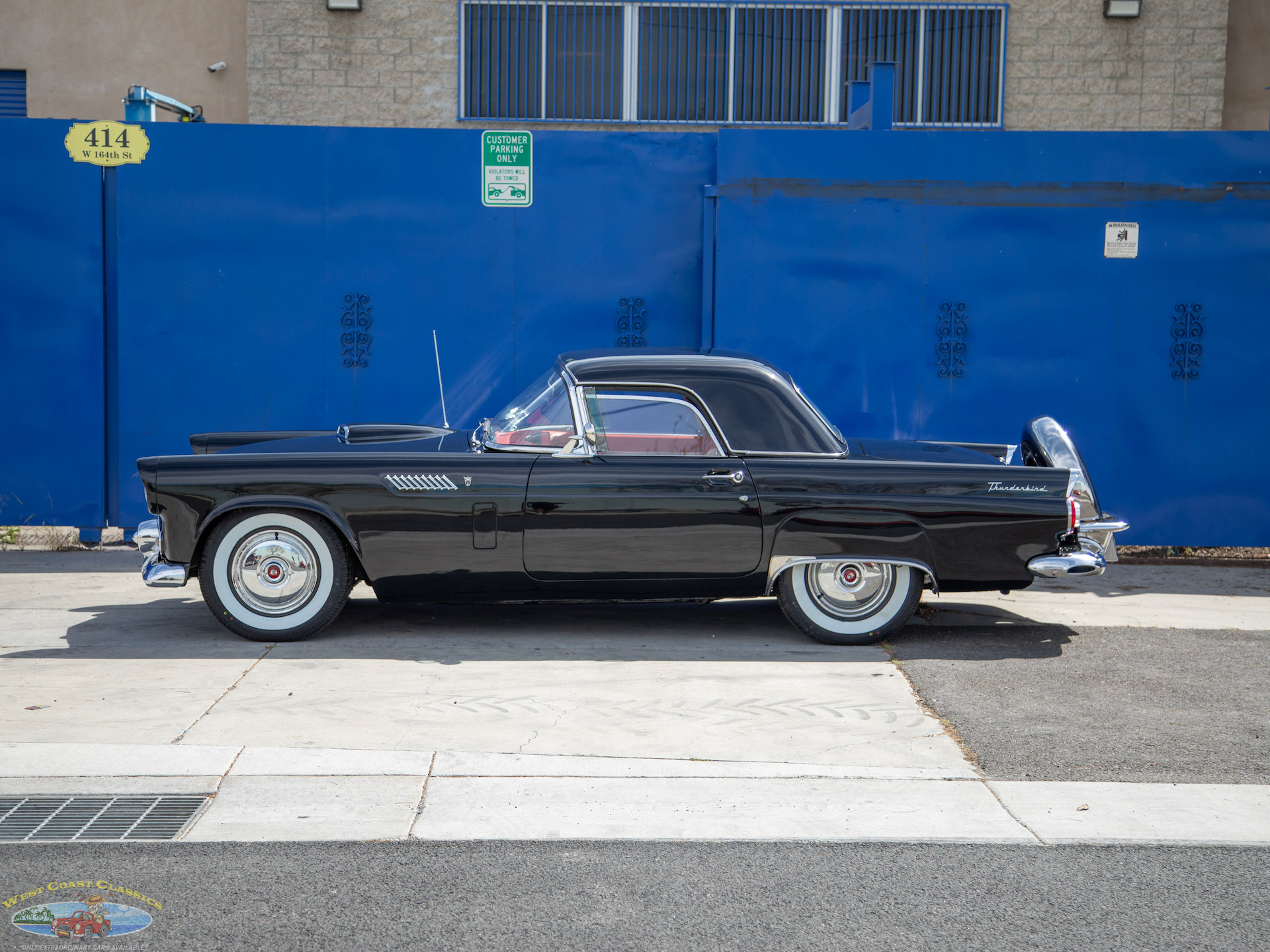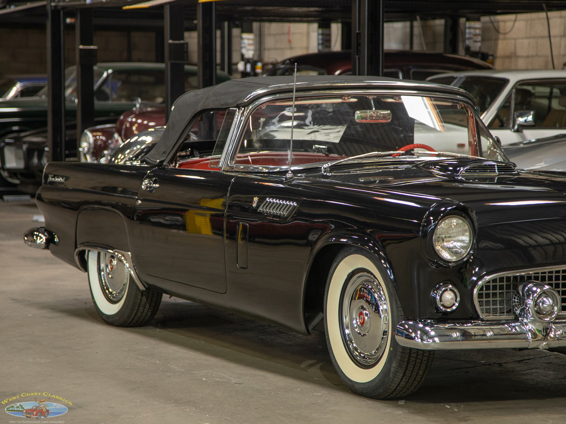 West Coast Classics are proud to present a great daily driving and beautifully restored and rust free example of this 1956 Ford Thunderbird with its original upgraded 'P' code 312/225HP 4 BBL V8 engine matched to a Ford-o-Matic transmission in its original 'Raven Black' (color code A) factory color paint with a matching soft top and factory hardtop and with a restored two-tone 'Red & White' interior and boasting air conditioning!