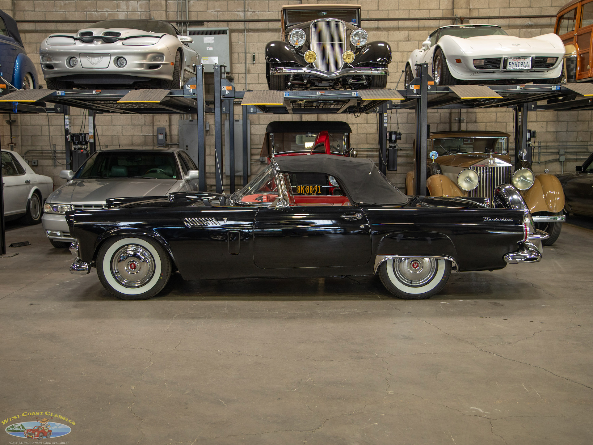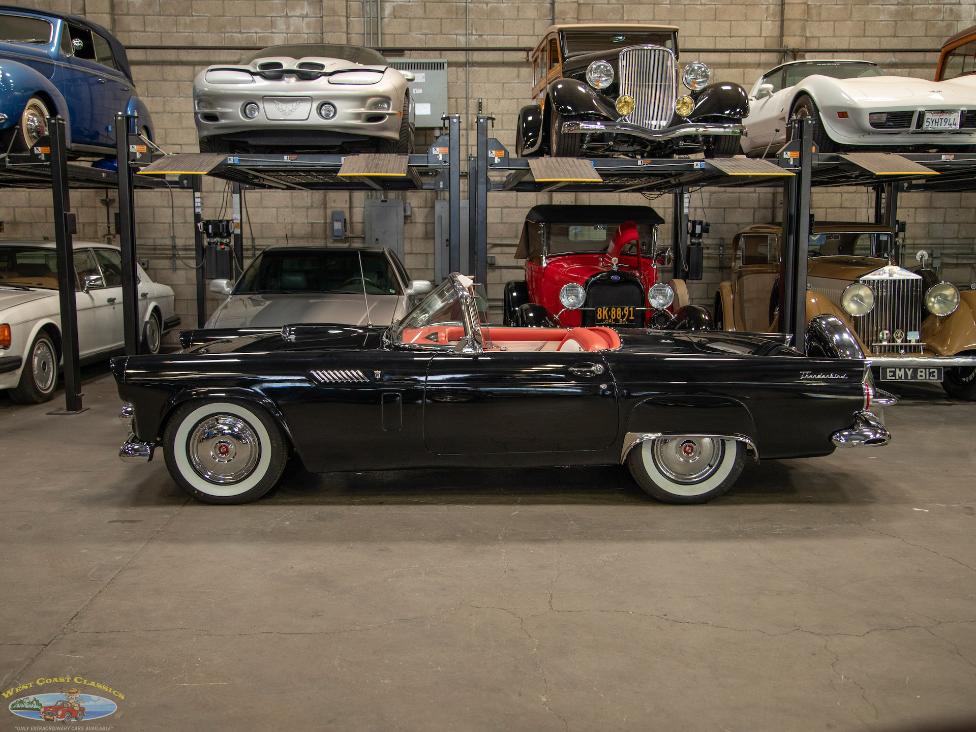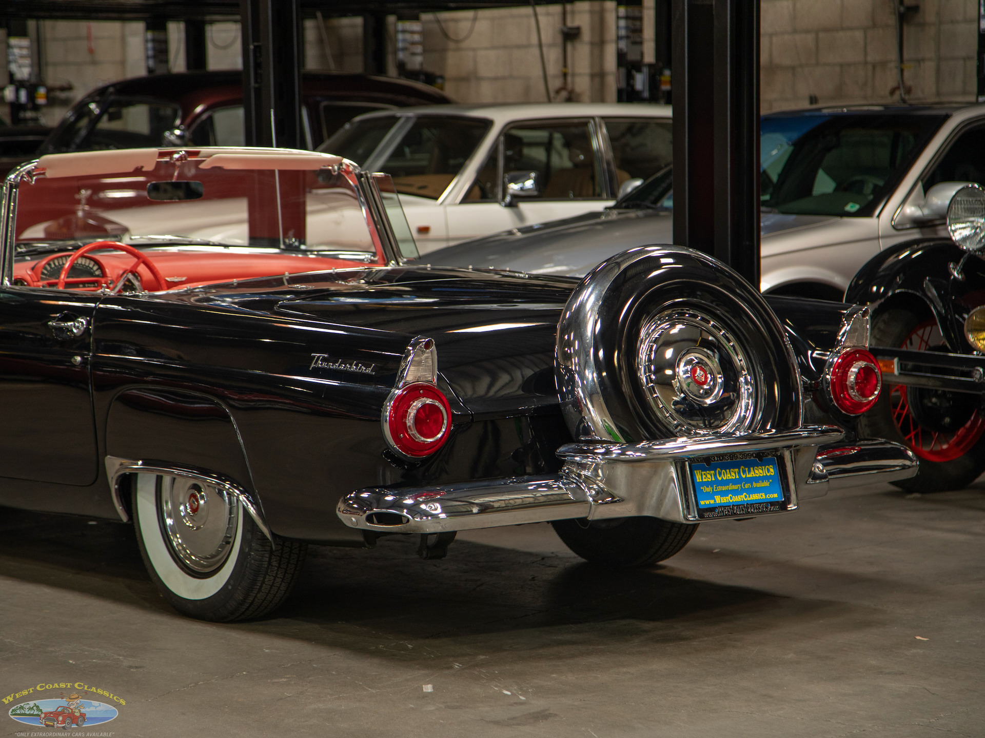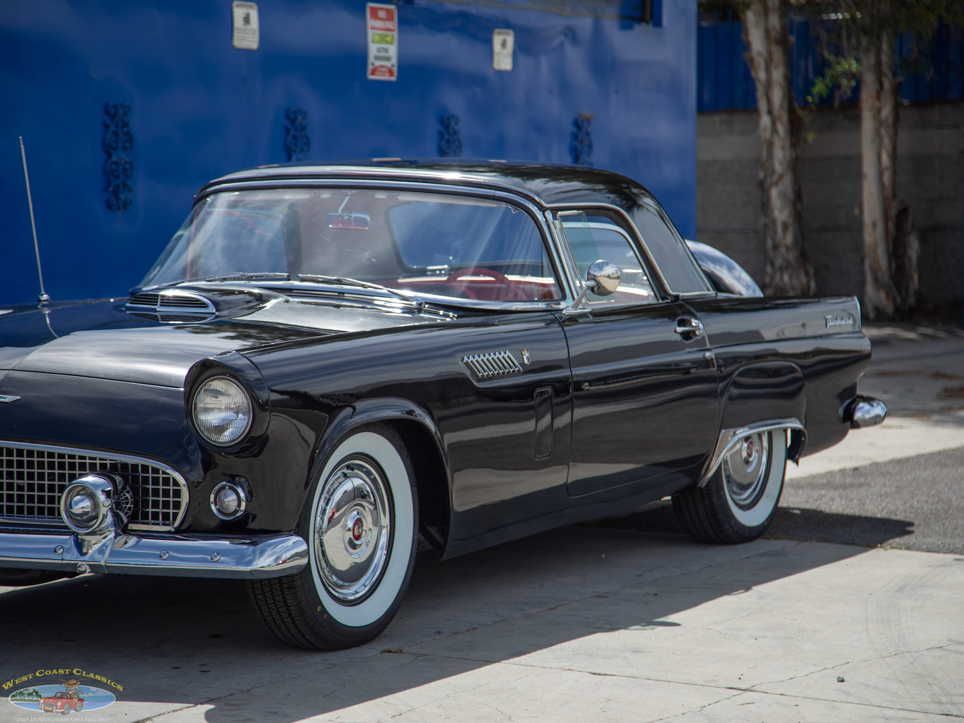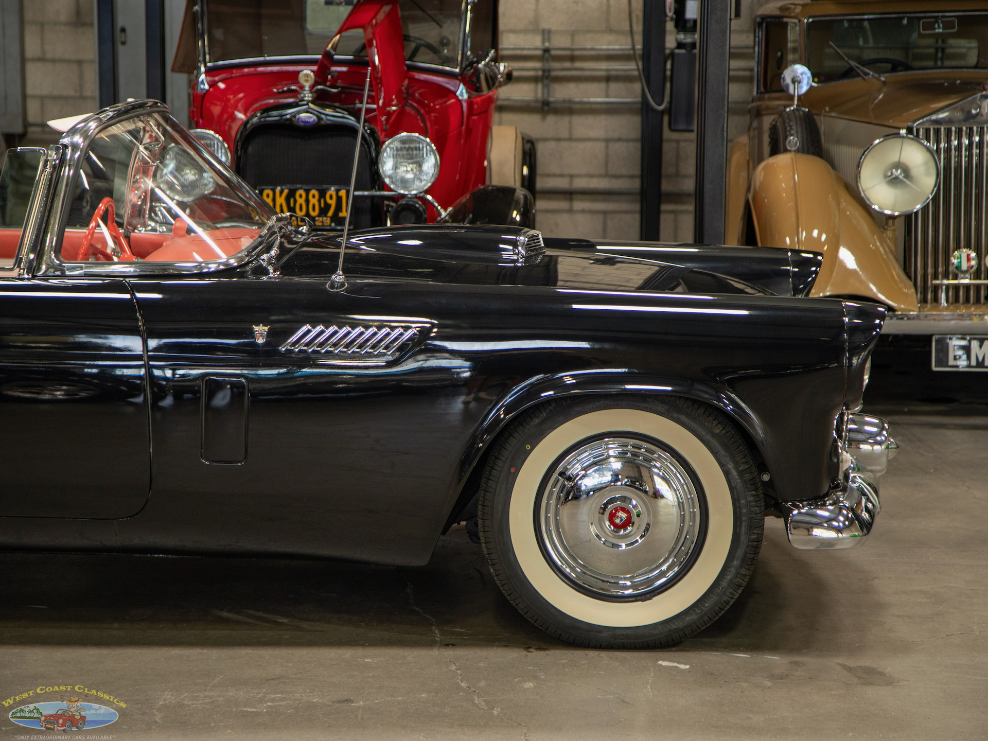 West Coast Classics are proud to present a great daily driving and beautifully restored and rust free example of this 1956 Ford Thunderbird with its original upgraded 'P' code 312/225HP 4 BBL V8 engine matched to a Ford-o-Matic transmission in its original 'Raven Black' (color code A) factory color paint with a matching soft top and factory hardtop and with a restored two-tone 'Red & White' interior and boasting air conditioning!