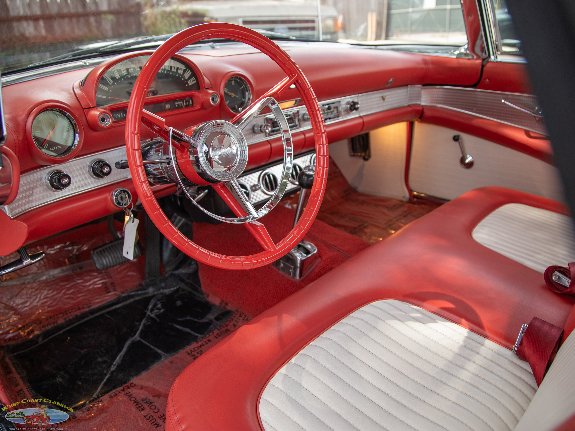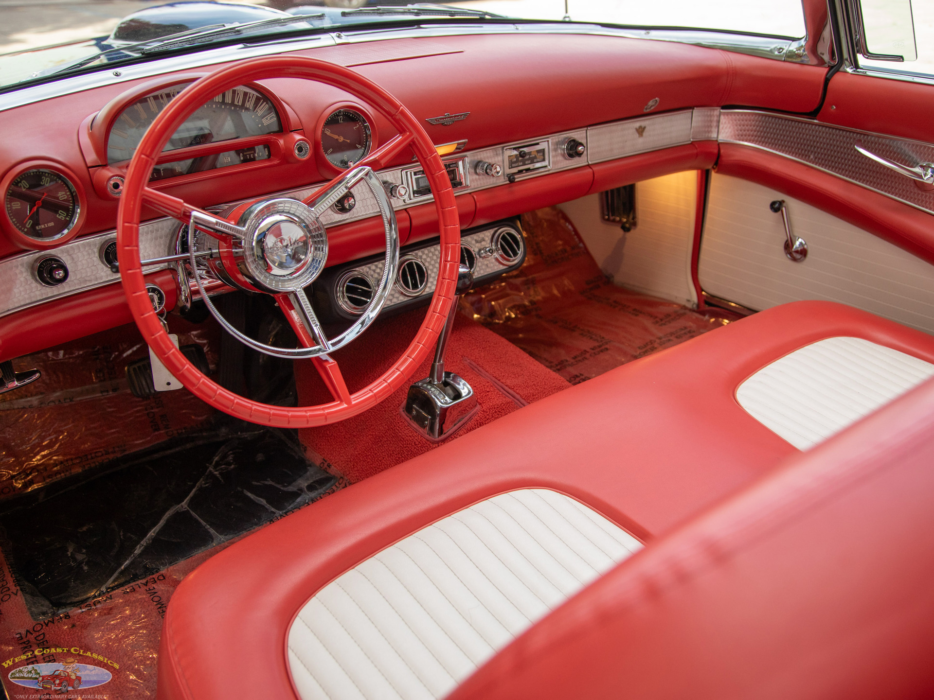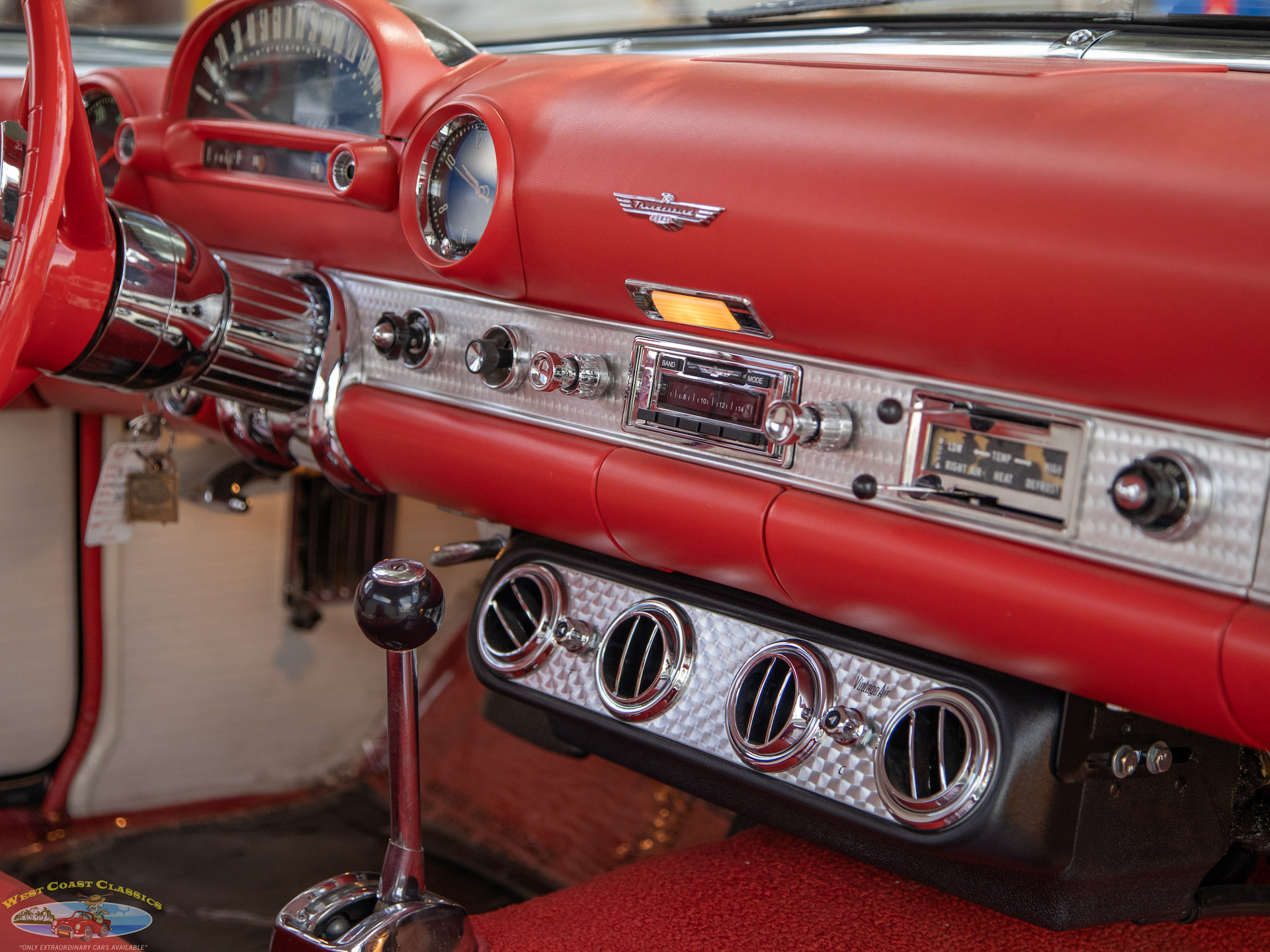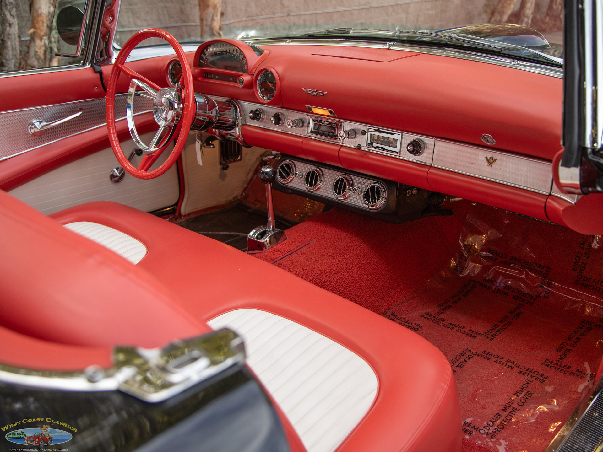 West Coast Classics are proud to present a great daily driving and beautifully restored and rust free example of this 1956 Ford Thunderbird with its original upgraded 'P' code 312/225HP 4 BBL V8 engine matched to a Ford-o-Matic transmission in its original 'Raven Black' (color code A) factory color paint with a matching soft top and factory hardtop and with a restored two-tone 'Red & White' interior and boasting air conditioning!