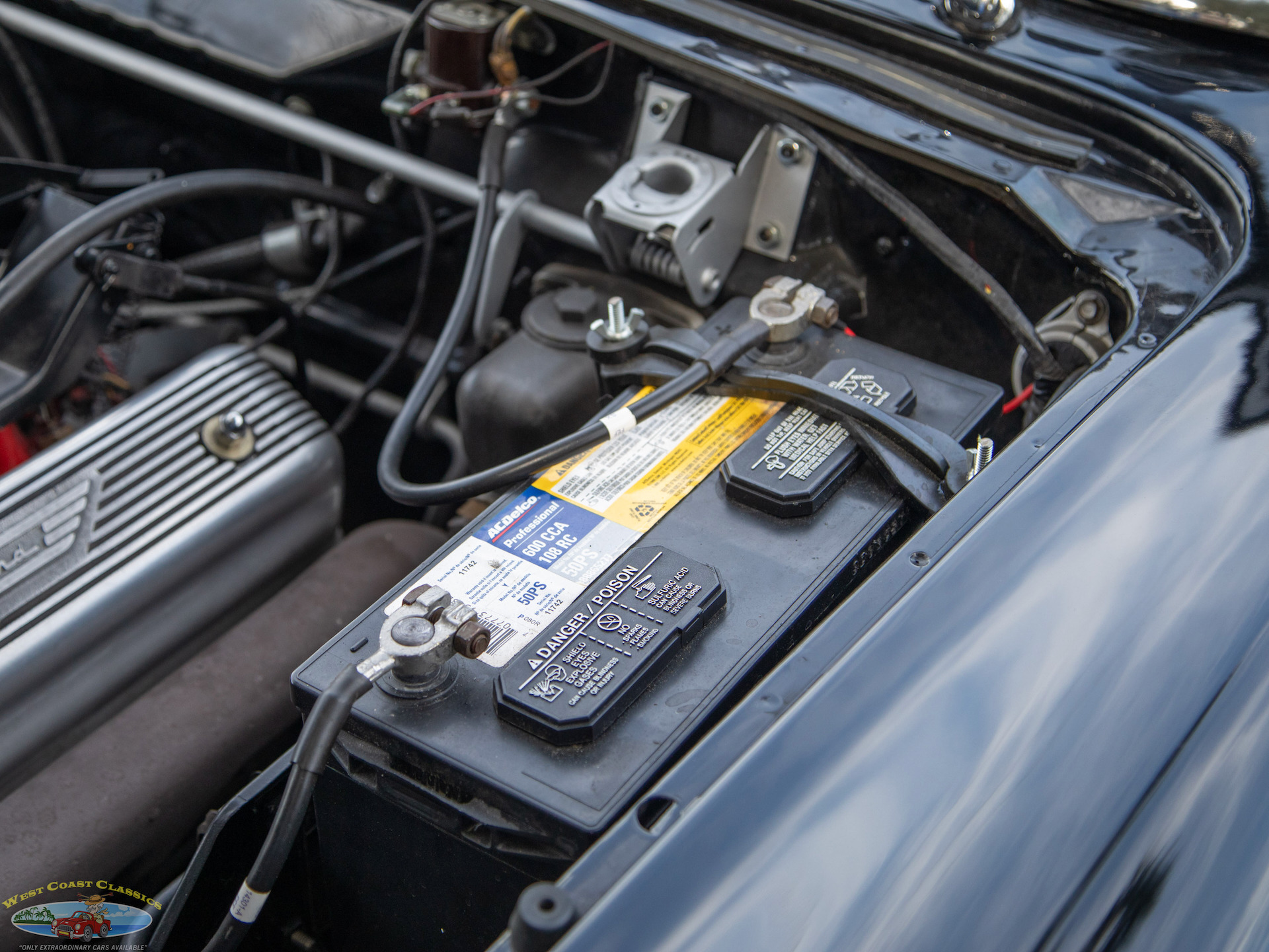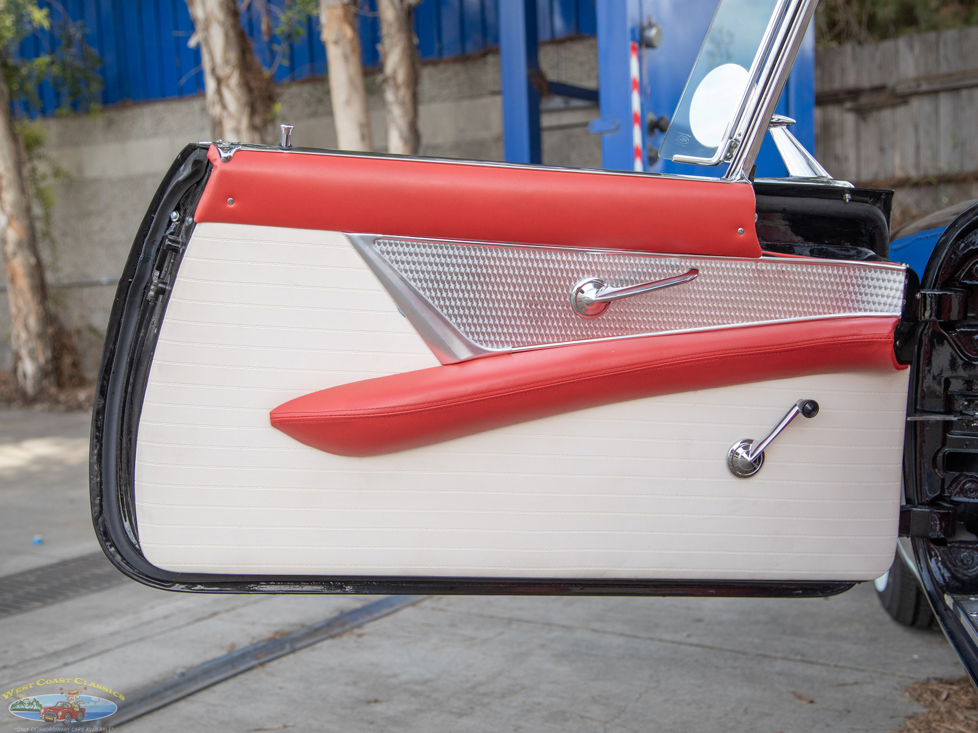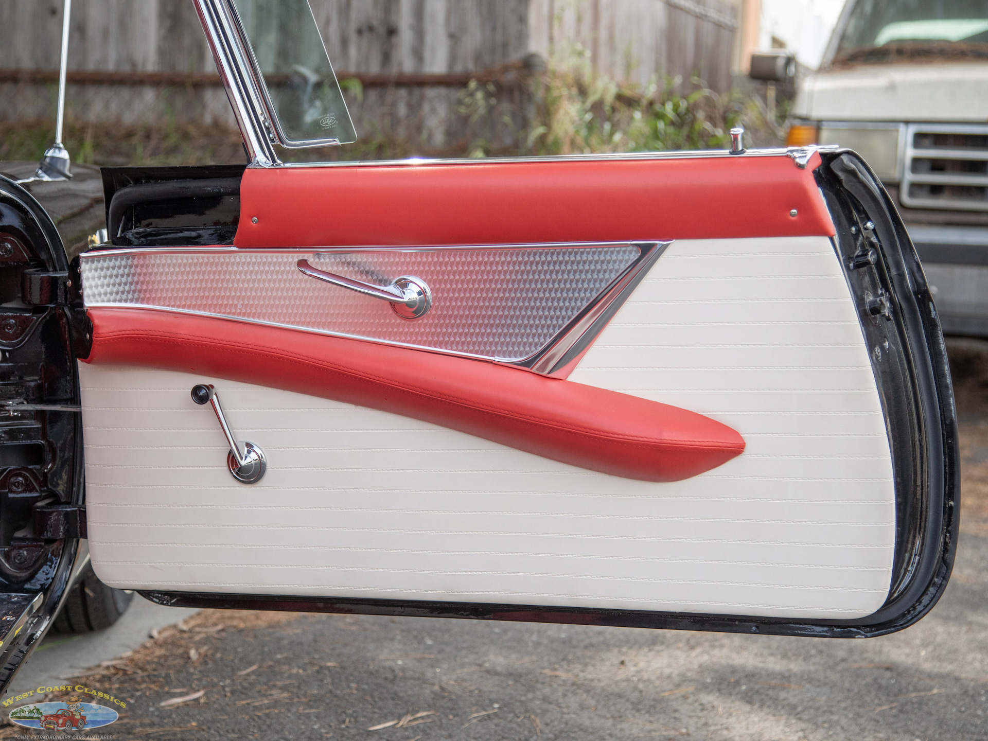 The car has been repainted some years ago in it's original 'Raven Black' factory color (A) and has a restored two-tone pleated 'Red & White' vinyl interior. It has all its original factory glass and and original spare wheel Continental Kit and both Soft Top & Hard Top.