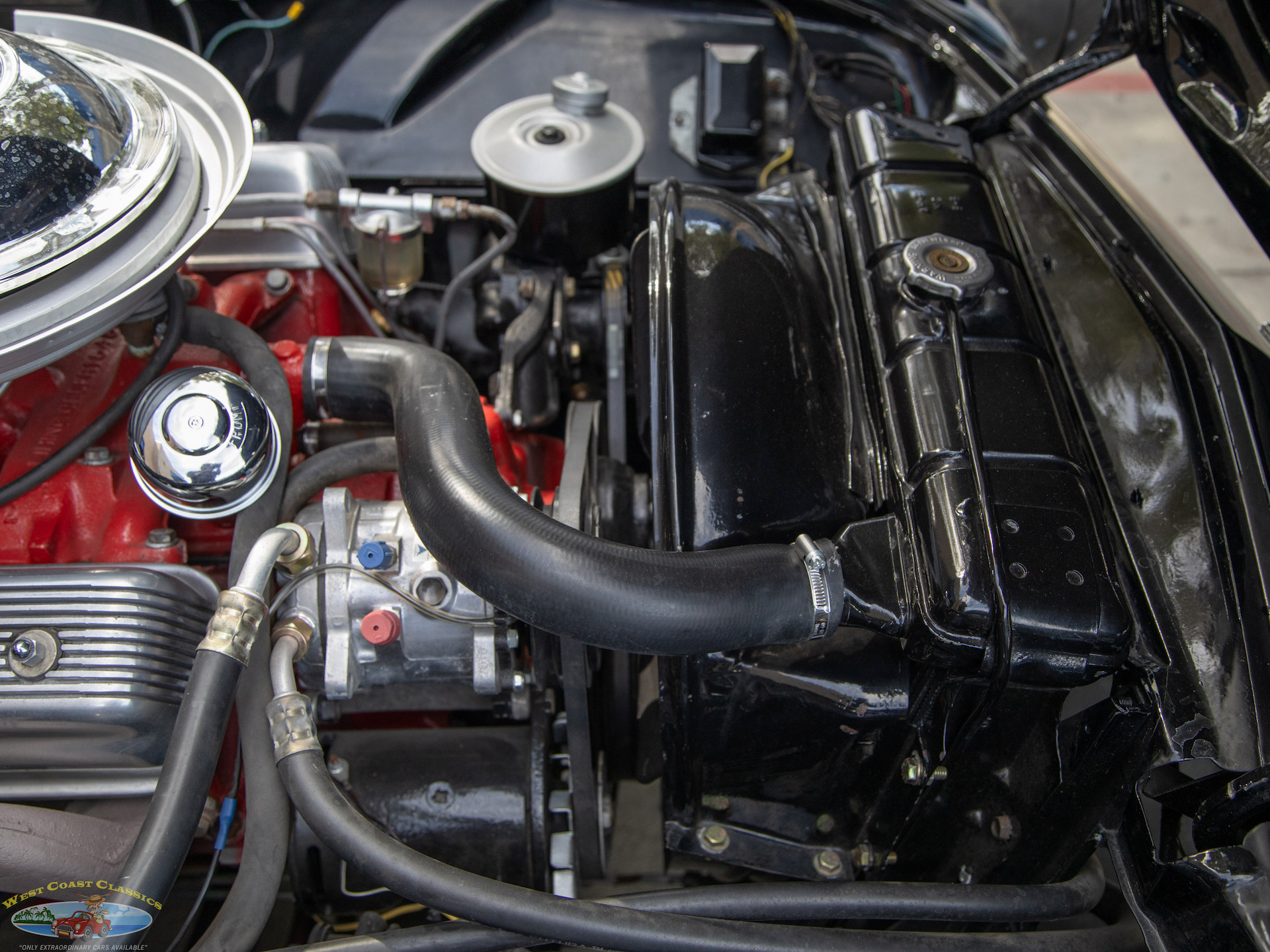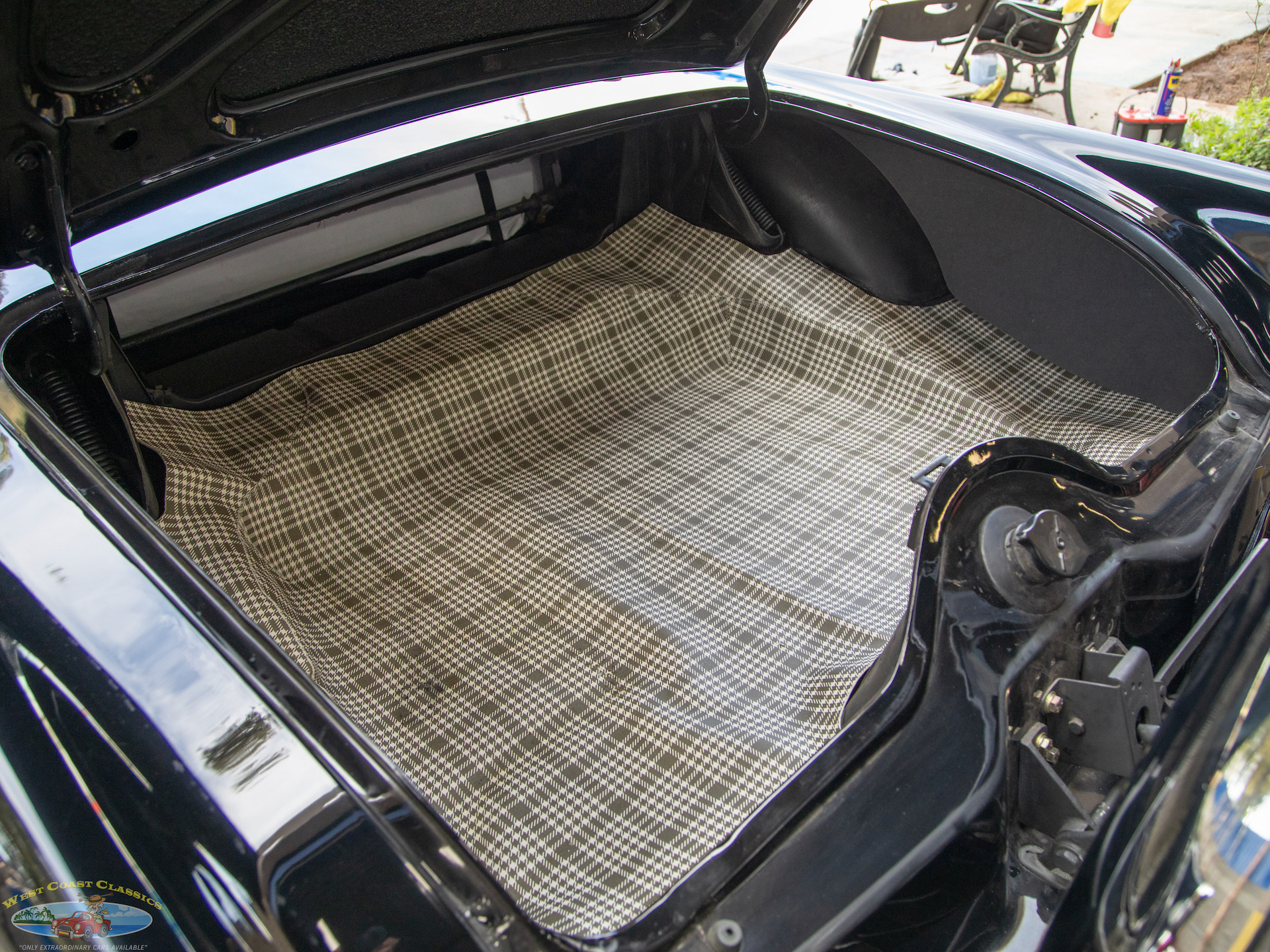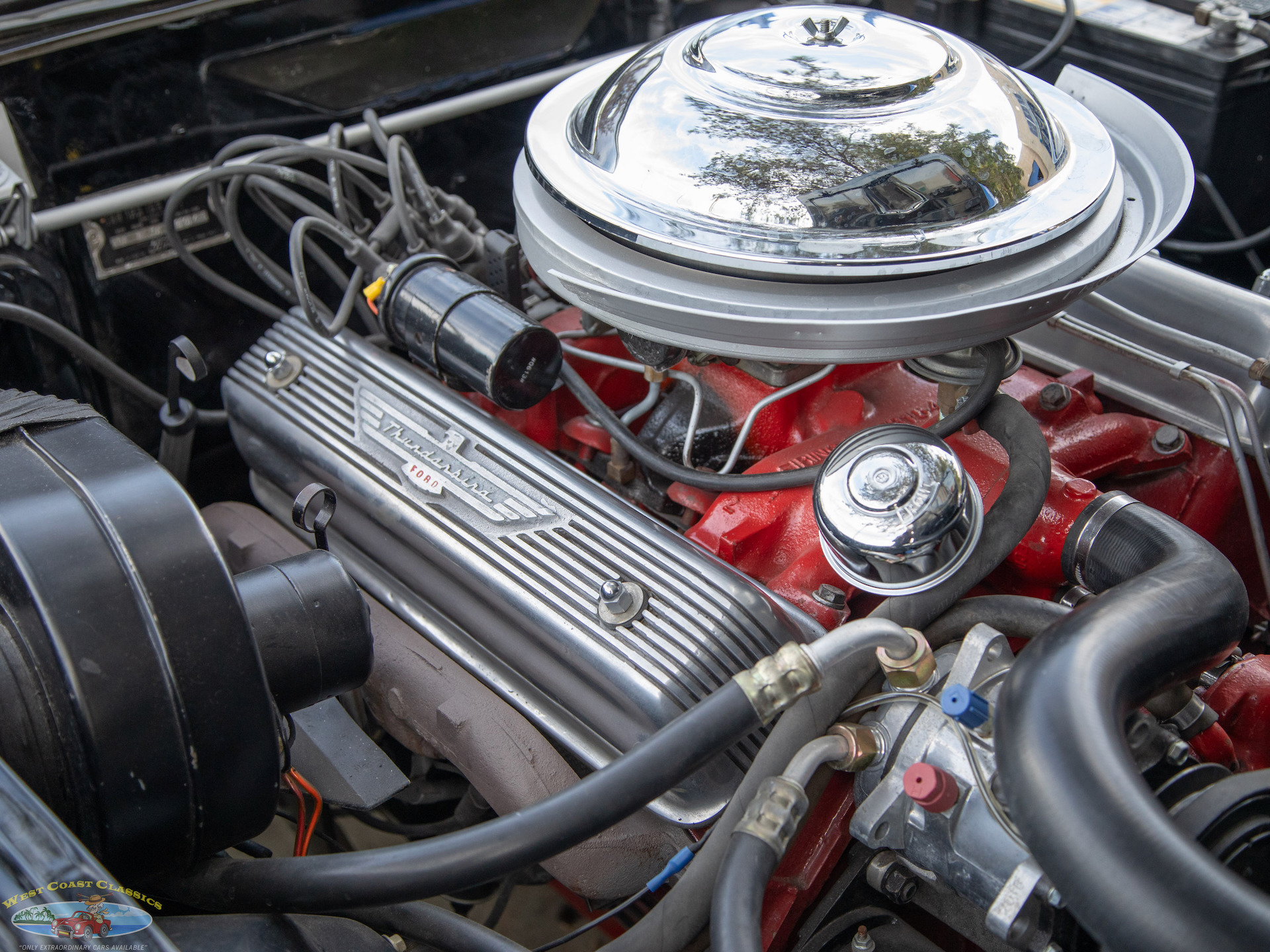 The car has been repainted some years ago in it's original 'Raven Black' factory color (A) and has a restored two-tone pleated 'Red & White' vinyl interior. It has all its original factory glass and and original spare wheel Continental Kit and both Soft Top & Hard Top.