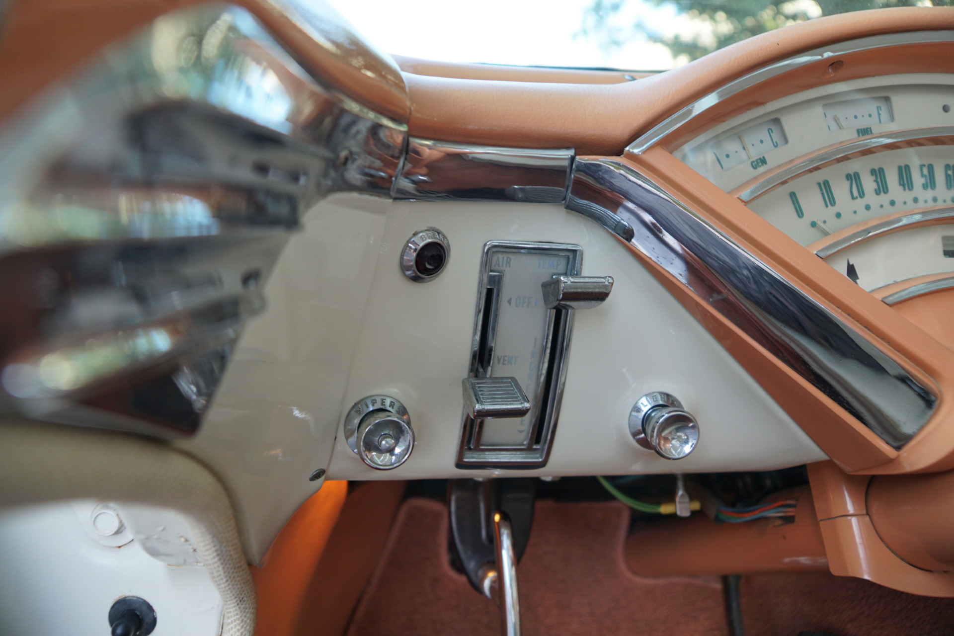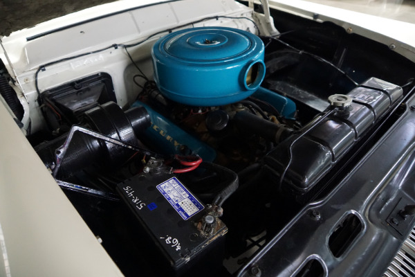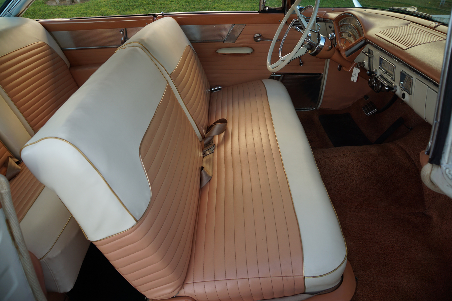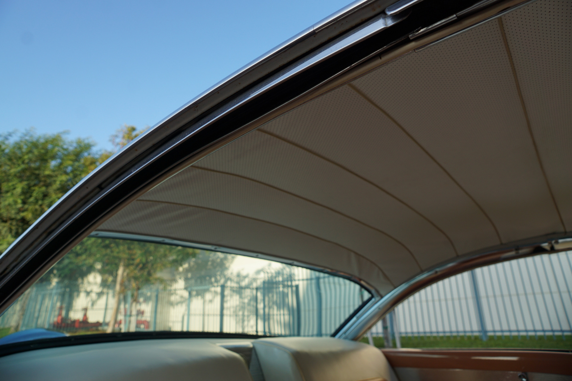 This particular example is firstly very original and honest with beautifully razor straight sheet metal with no signs or history of any accidents or rust ever and with a solid undercoated and rust free undercarriage. The car has a beautiful and obviously very professional repaint in a striking two-tone color paint scheme and has a beautiful matching two tone vinyl correctly restored with correct original material interior including piping etc and with all its original factory instrumentation intact including the original 'AM' signal seeking radio, all of which are is in quite exceptional and original specification condition throughout. All the chrome has been re-chromed and the car's original 312 V8 engine and the transmission was reportedly rebuilt at the time of the restoration.