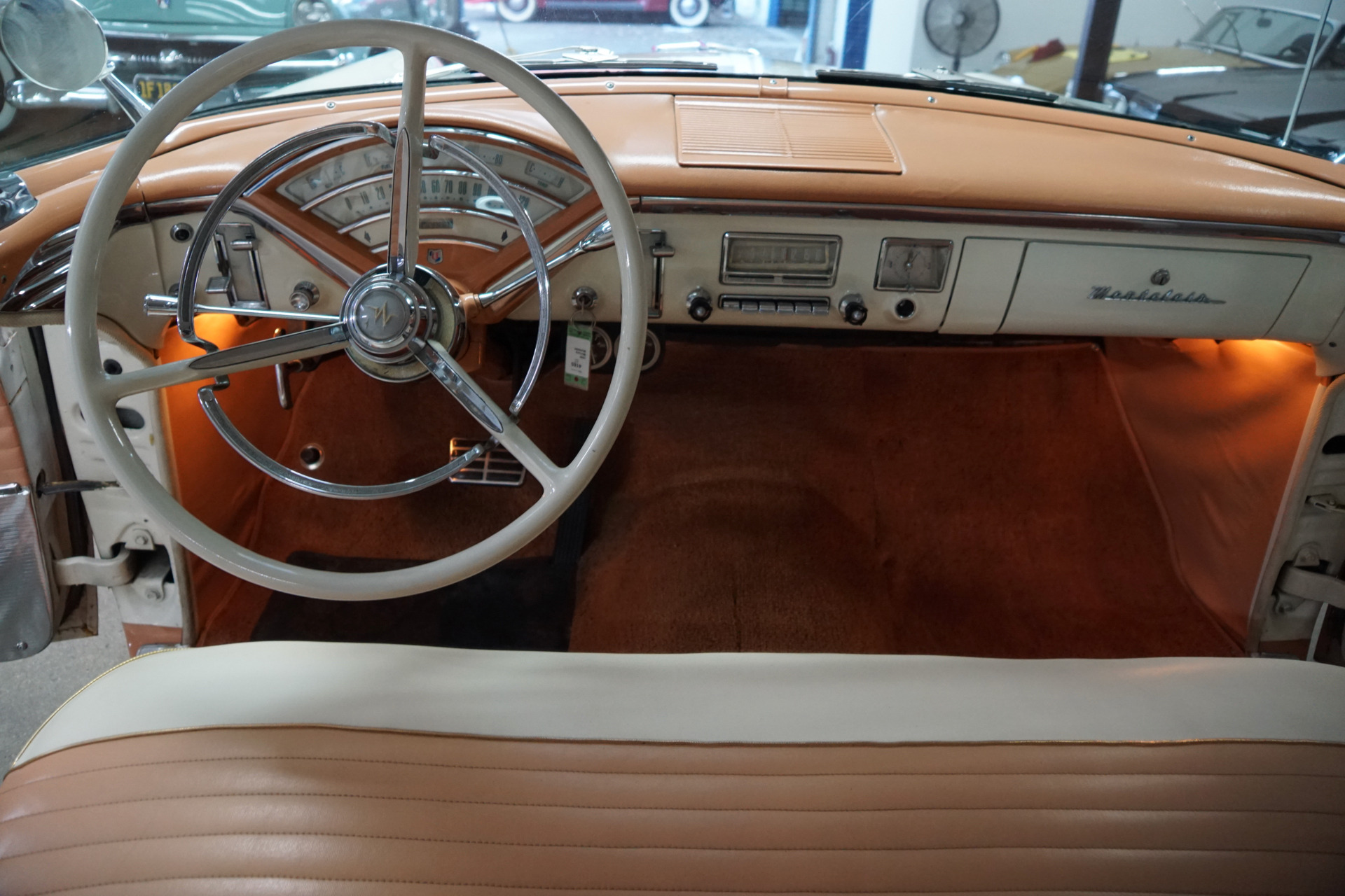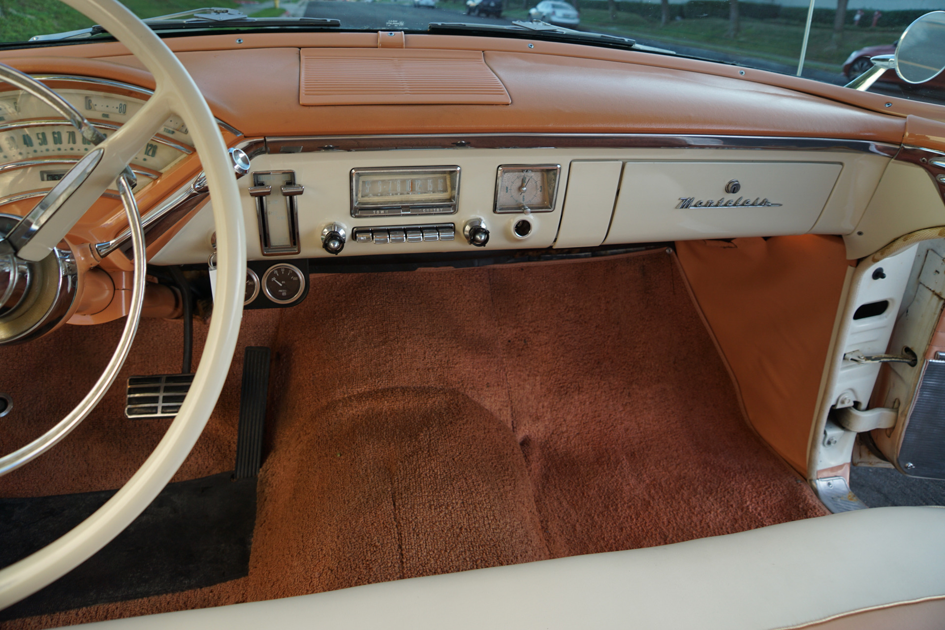 West Coast Classics are proud to present an absolutely exceptional and completely rust free 1956 Mercury Montclair 2 Door Hardtop - an older restored example with great attention to detail and still very presentable example of this 1956 Mercury Montclair 2 Door Hardtop with its 312 CI 225HP V8 engine in beautiful and striking 'Flo-Tone' two-tone color combination of 'Classic White over Persimmon' with a gorgeous matching interior. The car had factory options including the 312 V8 engine, a Merc-O-Matic automatic transmission, vinyl upholstery, electric clock, horn ring, chrome window surround moldings, full length body side stainless trim, rear fender skirts, rocker panel moldings, heater & defroster, signal seeking AM 'Town & Country' radio, power steering, tinted glass, padded instrument panel & seat belts, dual side-view mirrors, road lamps, rear bumper guards, hubcaps, whitewall tires & Continental kit!
