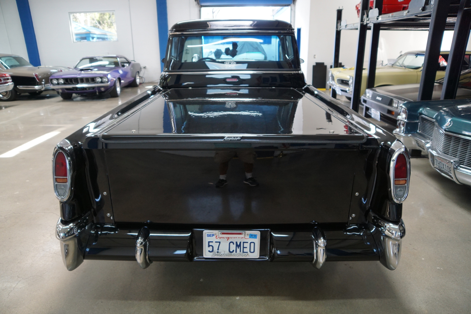 By the year 1955 Chevrolet was at the pinnacle of designs for all American pick ups. Their models had beautiful sculpted fenders and door panels with low hoods and stylish egg crate grilles. They also boasted wraparound windshields and were loved for being both practical and stylish at the same time. The '55 Cameo set a new level of glamour and was designed to attract attention whilst still being a practical and rugged pick up. The Chevrolet Cameo carrier and it's cousin the GMC Suburban carrier were built from 1955-59. The unique styling came from flat fiberglass panels and this sleek look is still a pattern for today's pickups. The Cameo had a sculpted fender and a front end that was similar to the Chevy cars built at that time. To many the 1957 models represent the pinnacle of the Cameo design before the introduction of the quad headlamp model in 1958. Only 2,240 Cameos were produced in 1957 and by '57 Chevy now offered the combination of the widest color selection (in 1955 they were only available in 'Bombay Ivory' with a commercial Red stripe). These rare '57 Cameos are now some of the most sought after and collected of all 1950's pick ups.