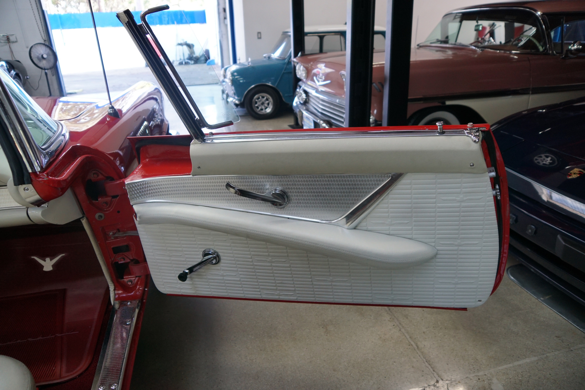 This is a rare opportunity to own a beautifully restored and superbly striking original 'Flame Red' Dearborn, MI built (as is true of all Thunderbirds!) late in 1957 and delivered to the Los Angeles area were it was originally sold and spent its entire life. It is a great daily driving example of an original southern California 1957 Thunderbird in very fine original condition throughout with it's original highly desirable 312 V8 'D code' engine and loaded with factory options including Power steering, Power brakes, its original Port Hole hard top & soft top, heater and defroster and electric clock!