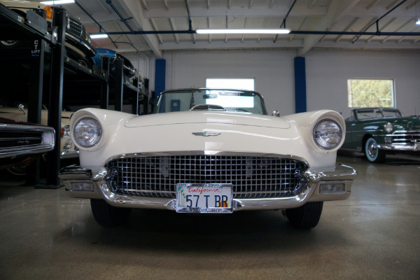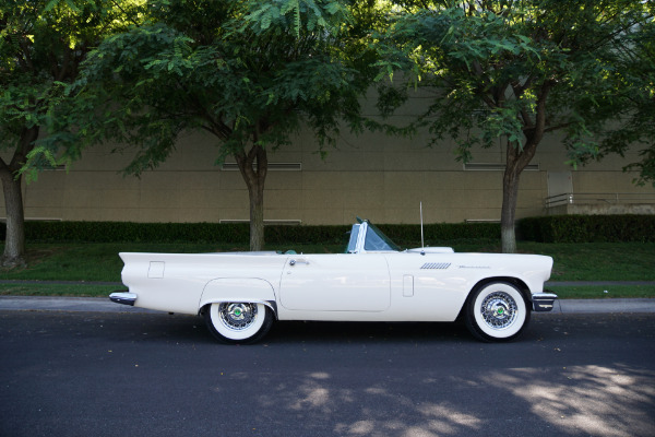 West Coast Classics are proud to present an absolutely beautifully concours restored and therefore 'Concours d'Elegance' show ready example of this 1957 Ford Thunderbird 312 V8 Convertible in it's original 'Colonial White' factory color paint (code E), original 'Pleated Willow Vinyl' (trim code XM) color interior and factory ordered with the hard top and soft top and loaded with desirable factory specifications and options including;