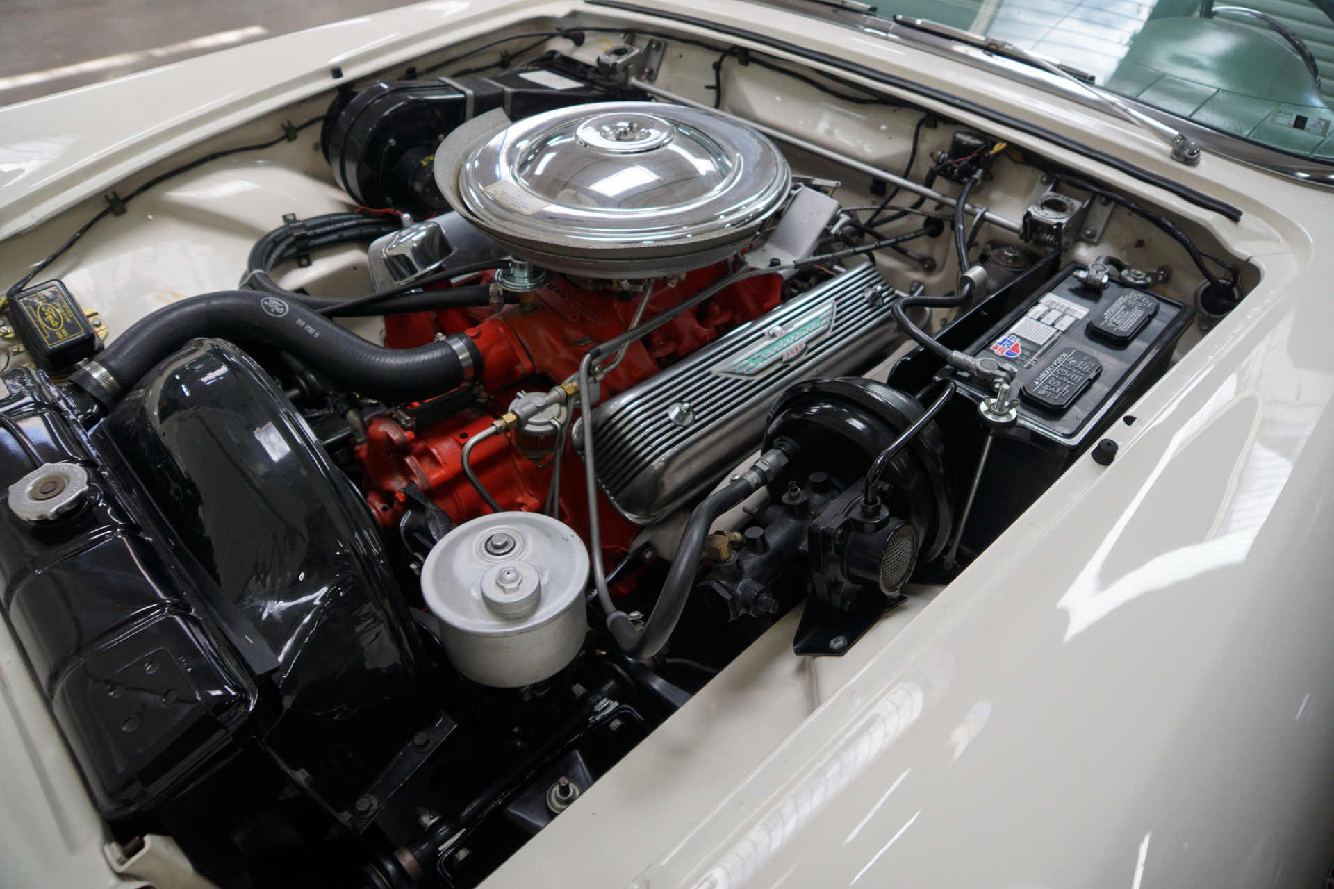 The car's original 'D' Code 312 V8 engine is extremely strong and powerful and sounds absolutely magnificent. The transmission shifts smoothly though the gears and the power steering and power brakes make the car an absolute pleasure to drive. Four new whitewall radial tires have just been installed on brand new chrome wire wheels with matching center caps. All the chrome was removed and re-chromed.