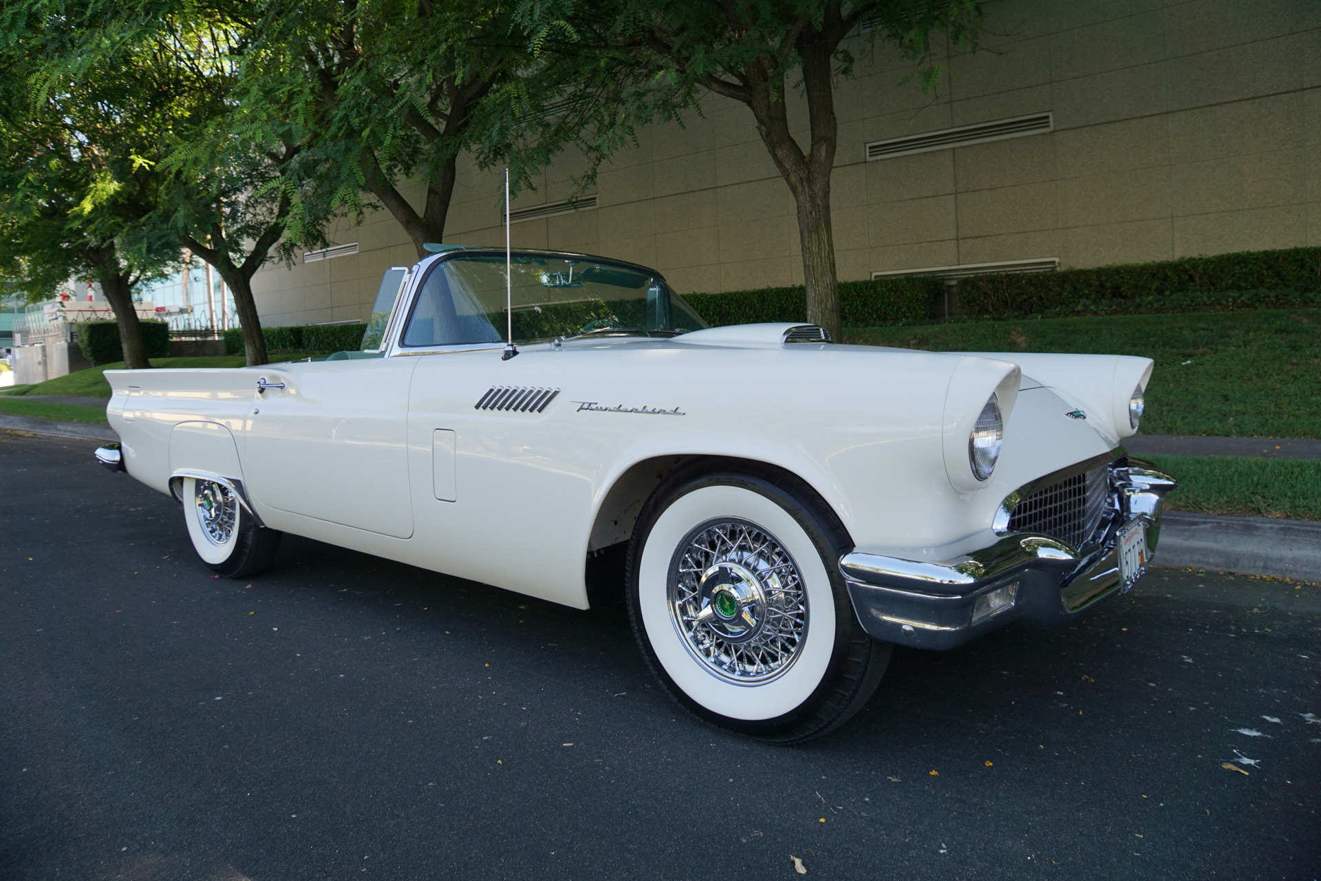 This is a rare opportunity to own an absolutely beautifully restored and superb and truly striking original Dearborn, MI built (as is true of all Thunderbirds!) car. It is also a great daily driving example of an original 1957 Thunderbird with it's original highly desirable 312 V8 'D code' engine and loaded with factory options including Power steering, Power brakes, Power windows, its original Port Hole hard top, new Canvas soft top, original 'Town & Country' radio, heater and defroster and electric clock!