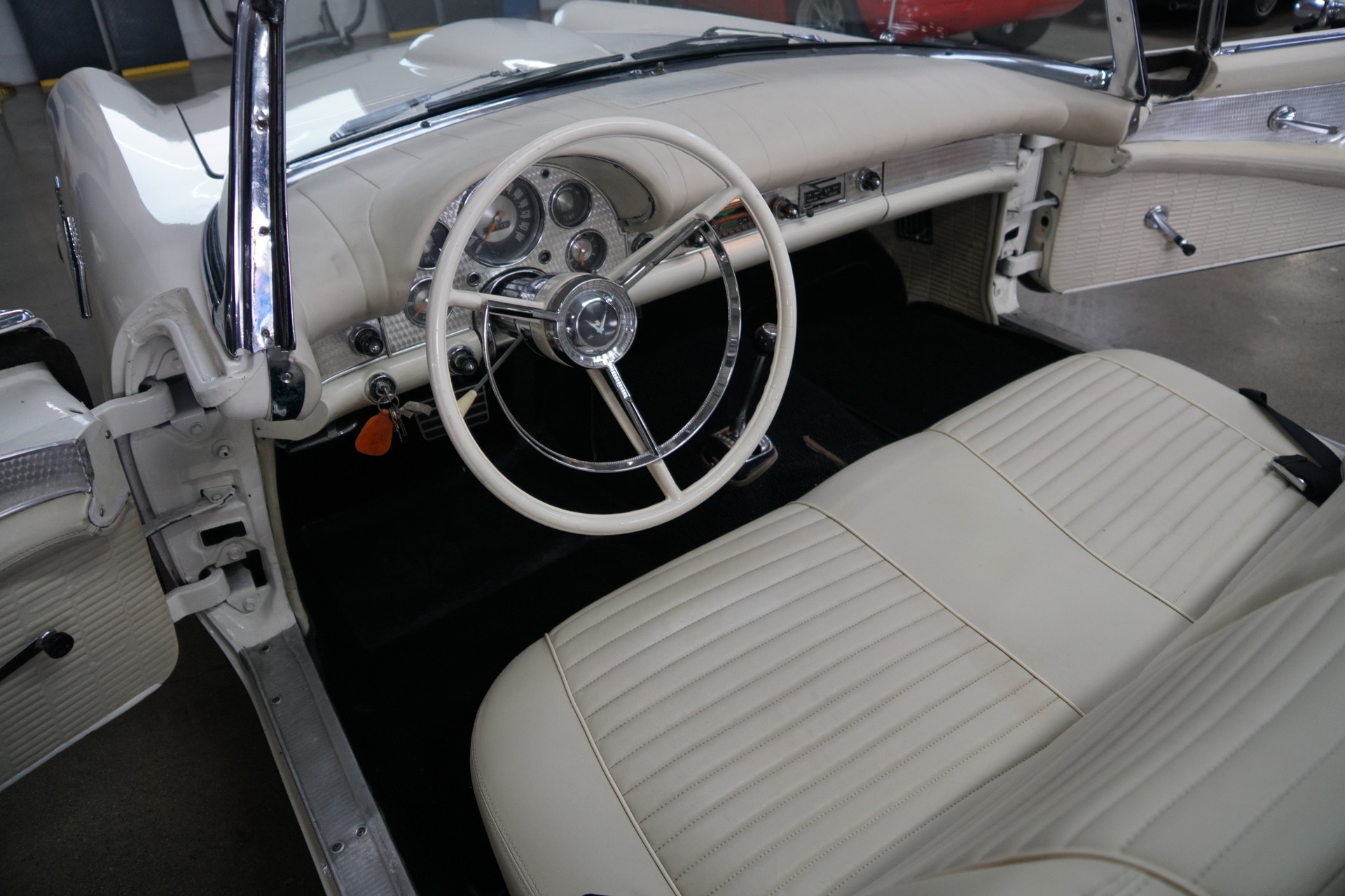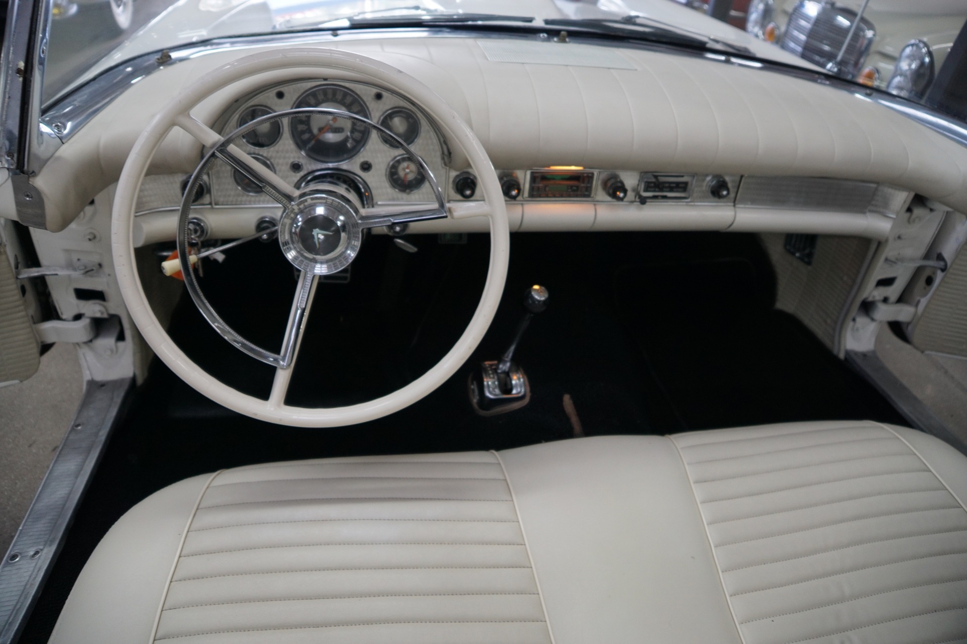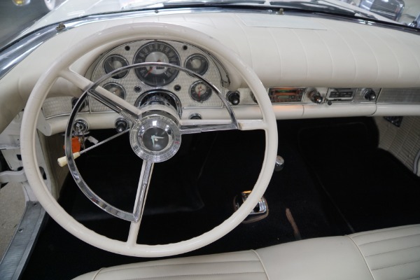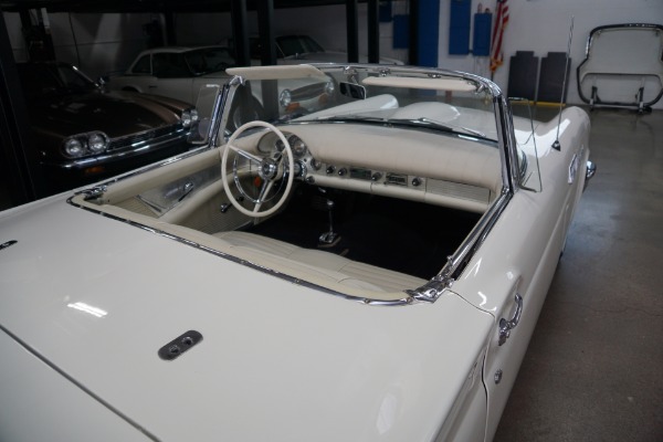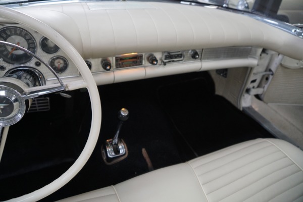 The car will be sold with a file of service records going back to the 1970's and the car's floor boards, trunk and all the typical rust-prone areas are completely solid and rust-free and the car has no signs of any accidents. The car has a very striking appearance in 'Colonial White' matched to a very stunning 'White' color vinyl interior with a bench seat, automatic interior courtesy lighting, rayon loop carpeting, half-circle steering wheel horn ring, winged 'Thunderbird' front end emblem, stainless steel window surround moldings, dual horns, dual exhaust and a removable fiberglass hardtop!